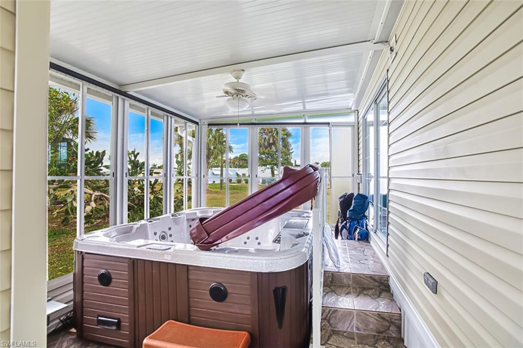 2006-built 3-bedroom, 2-bath home with vaulted ceilings and a private hot tub, truly unlike anything else in the community. Real wood bamboo floors. You own the land, enjoy very low monthly fees that include cable, pool and Bocce parties all the time— this home is high, dry, and has never flooded. Ideally located with great neighbors in a safe, well-kept area. Features include a huge tiled carport/porch with sun shade, a true workshop with storage, and a brand-new top-of-the-line metal roof. Meticulously maintained with homeowners insurance around $2, 200 annually. This property is more like a home so may be financed.
