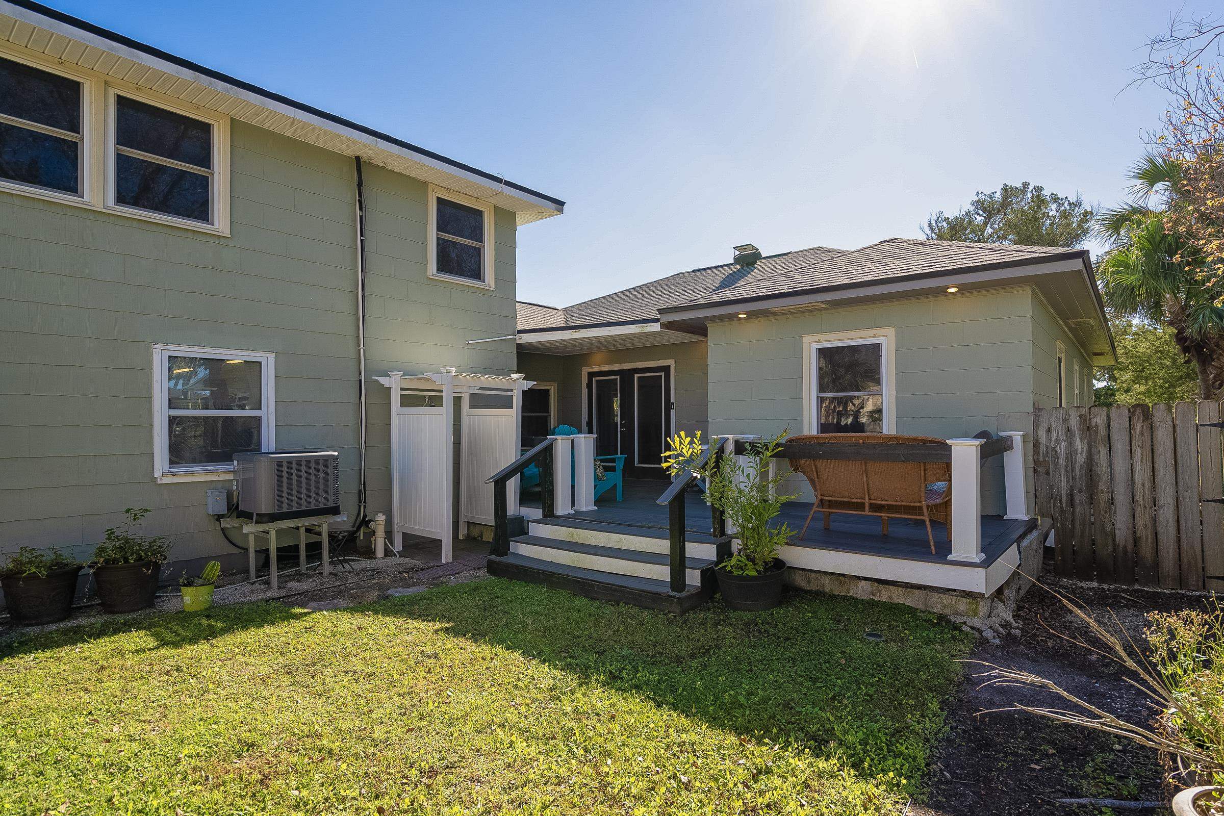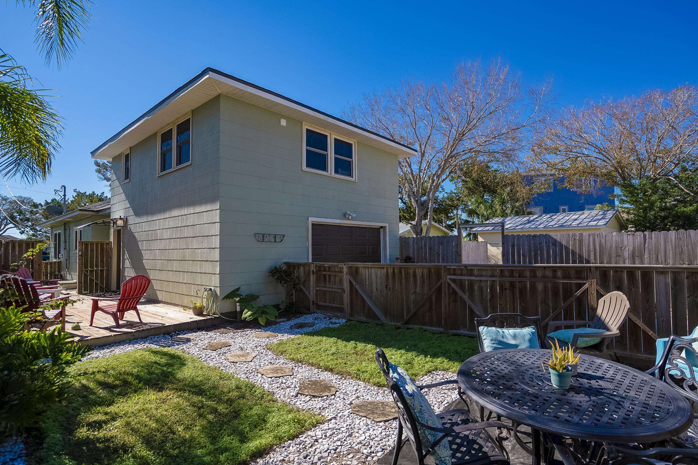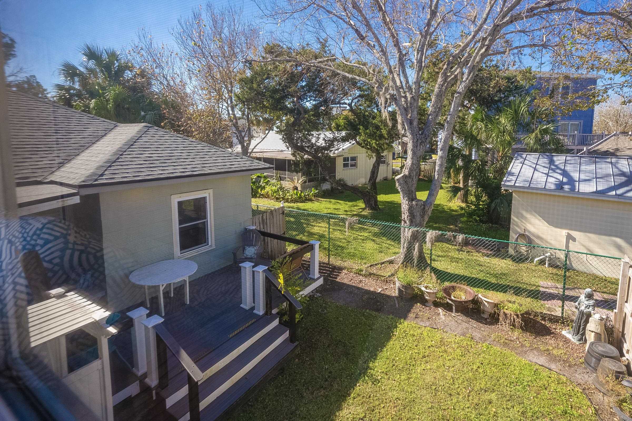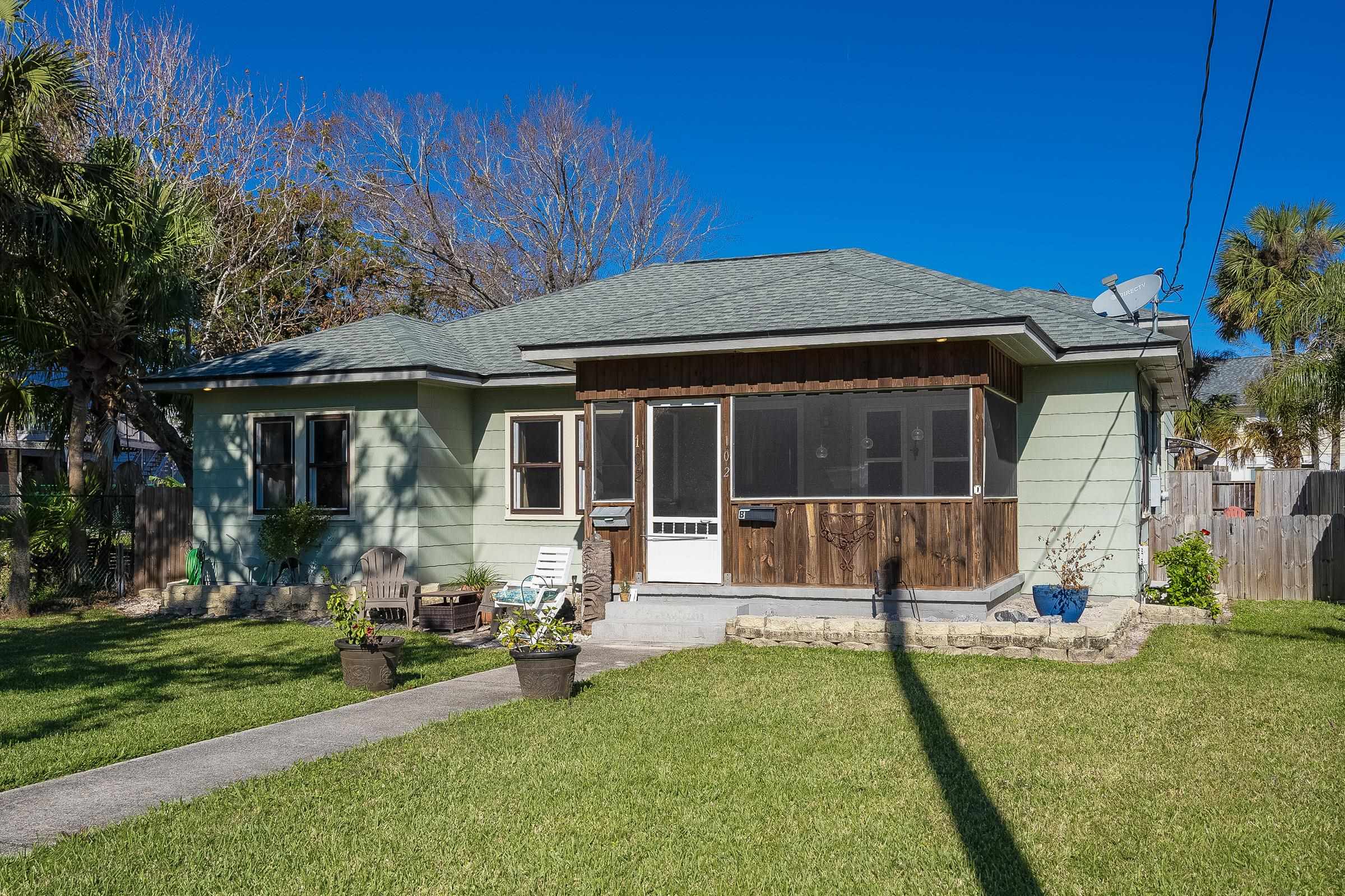 Rare Davis Shores Home ~ With In-Law Suite! Feel welcomed when you enter the front screened porch at This charming 1948 bungalow with a total of 3 bedrooms 2. 5 baths. Starting with the Main House offering 2 bedrooms & 1. 5 baths and next The In-Law Suite w/full bath over the garage. This is where charm meets function if you are looking for a multi-generational home or need some privacy from other family members. . . . Or simply rent it out. The main house has an oversized kitchen with bar seating & open floor plan to living and dining area, plus private deck with outside shower. Don't miss the separate Suite with private entrance thru garage but attached above garage on 2nd floor with full bath & mini kitchen, spacious. . . lives like an in-law-suite w/private side entry patio & yard. Beautiful Yard with plenty of outside patios for entertaining. Walk to downtown St Augustine, or Bike to St Augustine Beach at the State Park in just minutes. **Ask about Owner Financing** This is a great opportunity for Multi-Generational living. Separate Garage Apartment with Open Studio feel, kitchen and private bathroom. It's private entry is thru side garage door & up the stairs.
