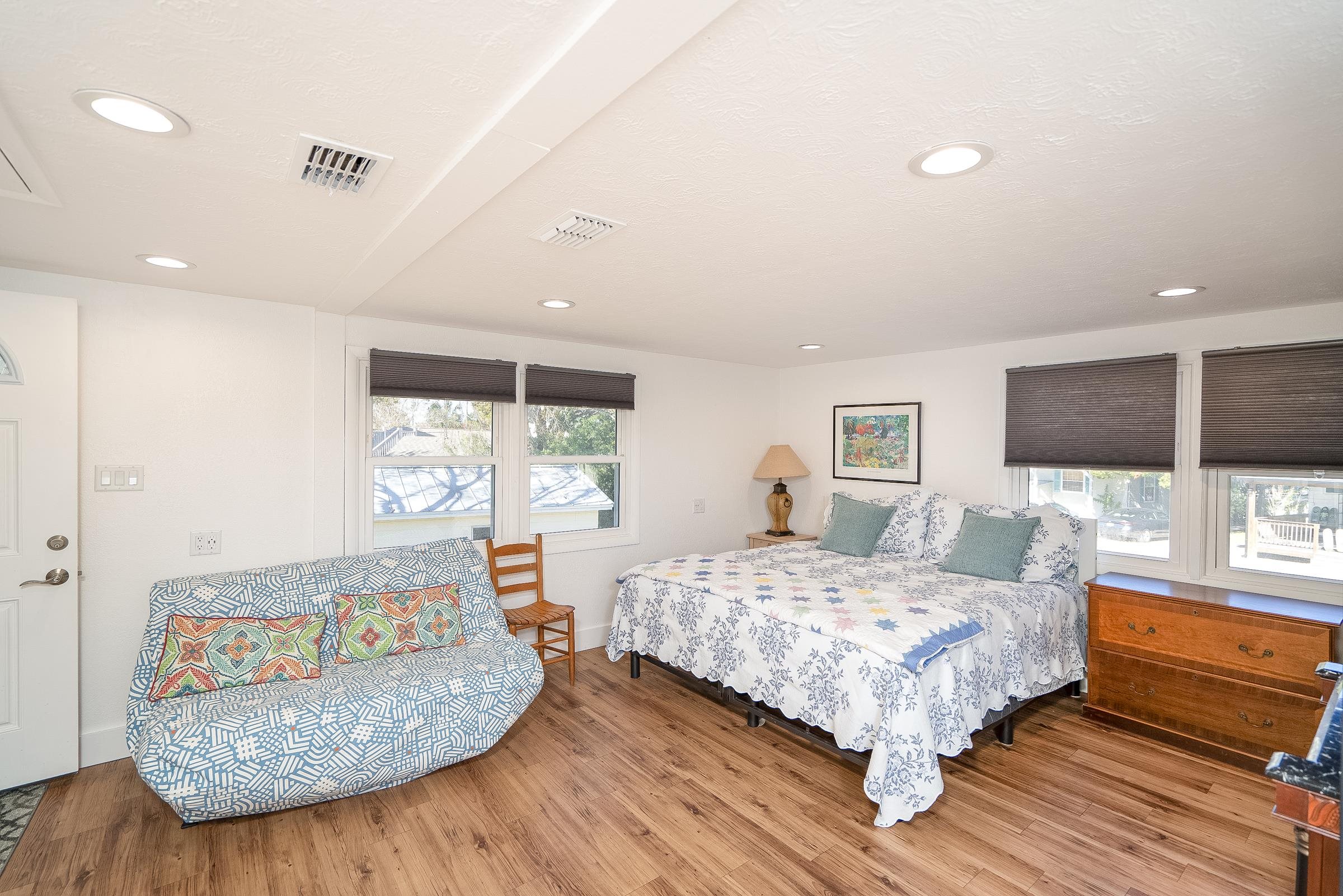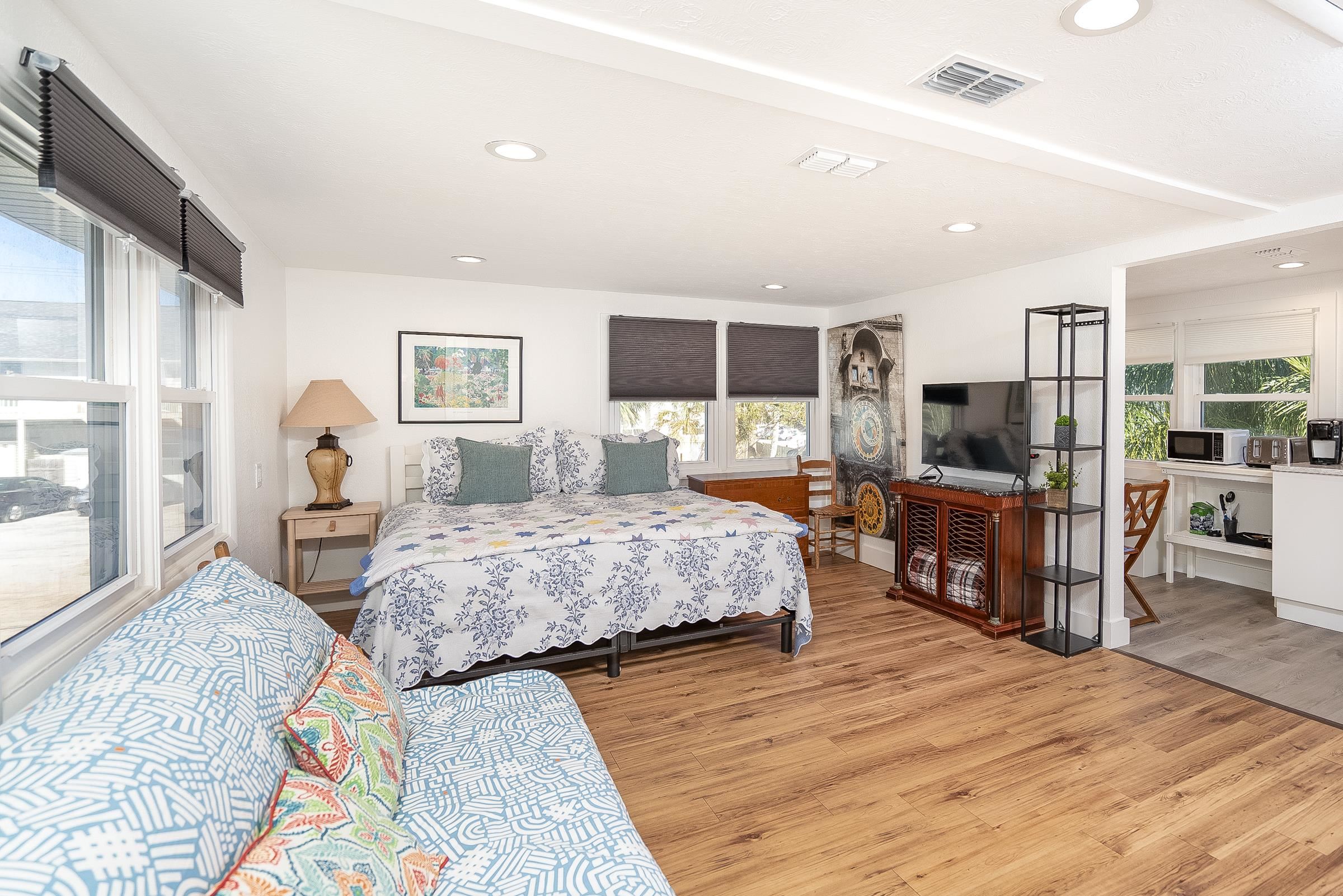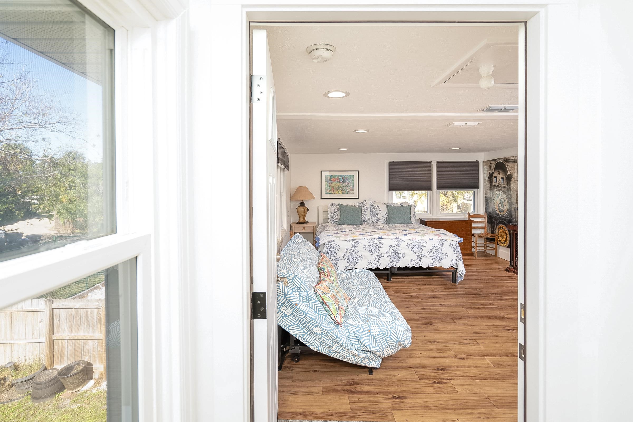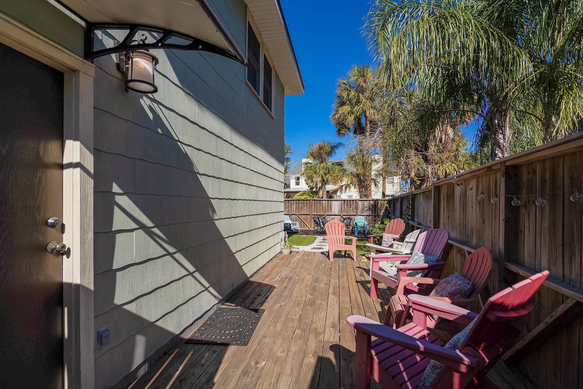 Rare Davis Shores Home ~ With In-Law Suite! Feel welcomed when you enter the front screened porch at This charming 1948 bungalow with a total of 3 bedrooms 2. 5 baths. Starting with the Main House offering 2 bedrooms & 1. 5 baths and next The In-Law Suite w/full bath over the garage. This is where charm meets function if you are looking for a multi-generational home or need some privacy from other family members. . . . Or simply rent it out. The main house has an oversized kitchen with bar seating & open floor plan to living and dining area, plus private deck with outside shower. Don't miss the separate Suite with private entrance thru garage but attached above garage on 2nd floor with full bath & mini kitchen, spacious. . . lives like an in-law-suite w/private side entry patio & yard. Beautiful Yard with plenty of outside patios for entertaining. Walk to downtown St Augustine, or Bike to St Augustine Beach at the State Park in just minutes. **Ask about Owner Financing** This is a great opportunity for Multi-Generational living. Separate Garage Apartment with Open Studio feel, kitchen and private bathroom. It's private entry is thru side garage door & up the stairs.