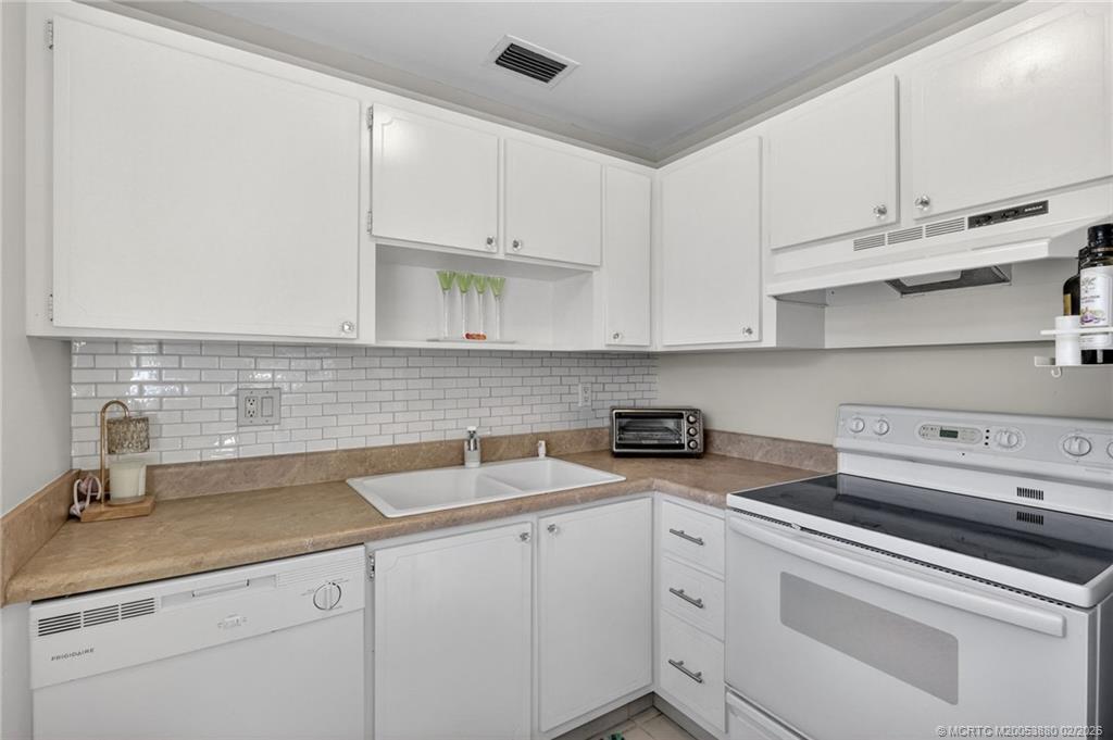 A meticulously maintained corner home filled with natural light at the desirable, socially active Vista Pines community. Located in the favorite Seaside Town of Stuart. With a modern all white kitchen, tile and wood look flooring enhance this second floor one bedroom with en suite bathroom. There is an additional half bath for your guests. The shaded and screened balcony has a convenient storage closet and plenty of seating space overlooking stately mature trees and flowering gardenia bushes. A prime location with abundant options just minutes drive to beaches, golf, essential and boutique shopping, dining, live music and theater. An idyllic place to relax and enjoy life. Vista Pines is one of the most active club houses in the area. Always hosting events, celebrations, trips craft and woodworking shops, bocce, shuffle, karaoke, fitness room, come join in!!