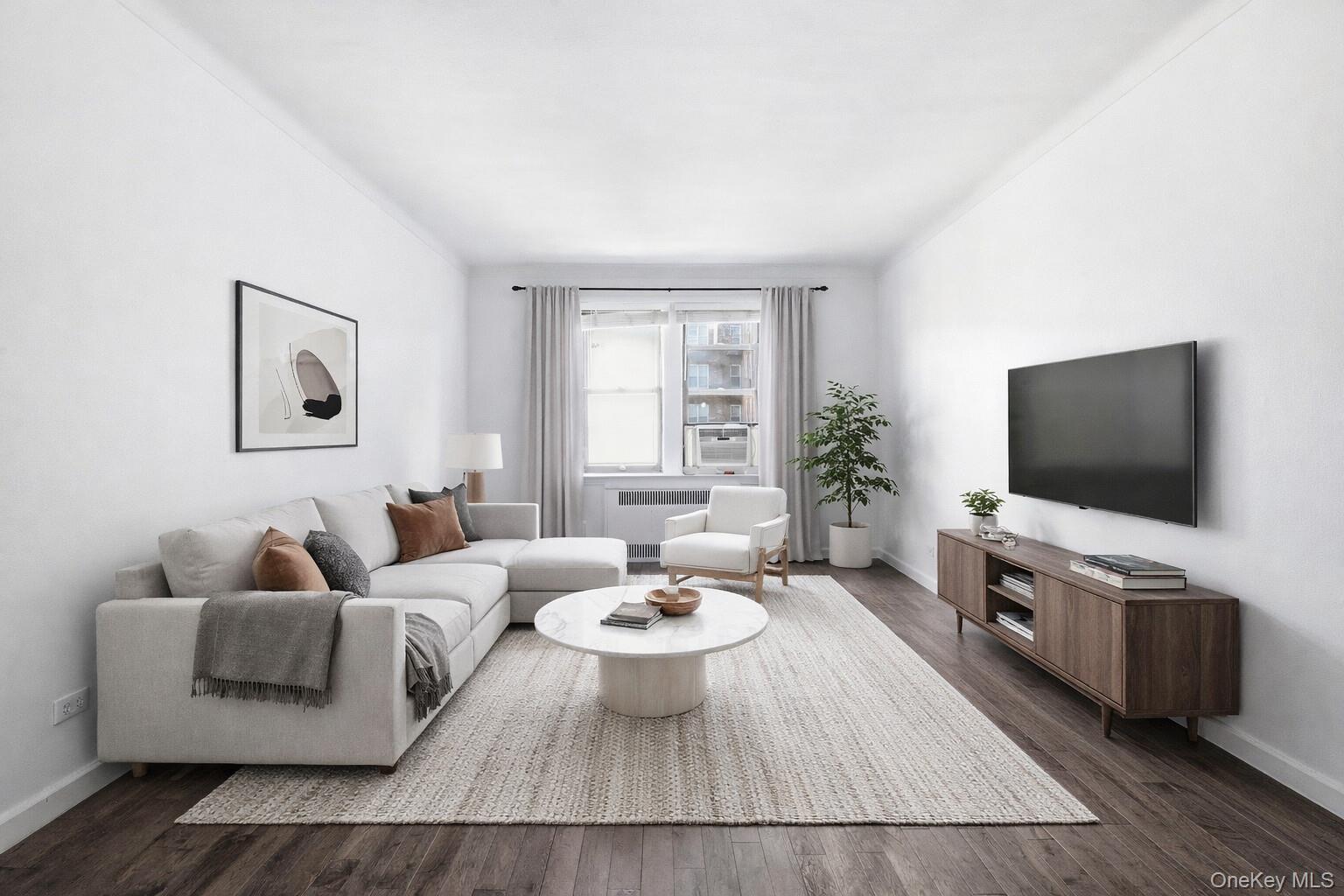 Prewar 2 Bedroom 1 Bath CONDO rental situated in the heart of Forest Hills! - full condo application fees apply. The entryway hallway with 2 closets leads to a foyer which works perfectly as a work from home space with a charming built in bookcase. An renovated eat-in kitchen is situated to the left with walnut cabinets, quartz countertops and stainless steel appliances. The expansive living room is extremely large and two spacious bedroom is situated away from Queens Blvd for added peace and quiet. Charming details of arch doorways, high 10ft ceilings, plenty of closets, and solid new hardwood floors throughout. Enjoy the freedom and convenience of condo living just around the corner from Starbucks and trains with an easy commute to Manhattan. Russel Sage Park is just 2 short blocks away.