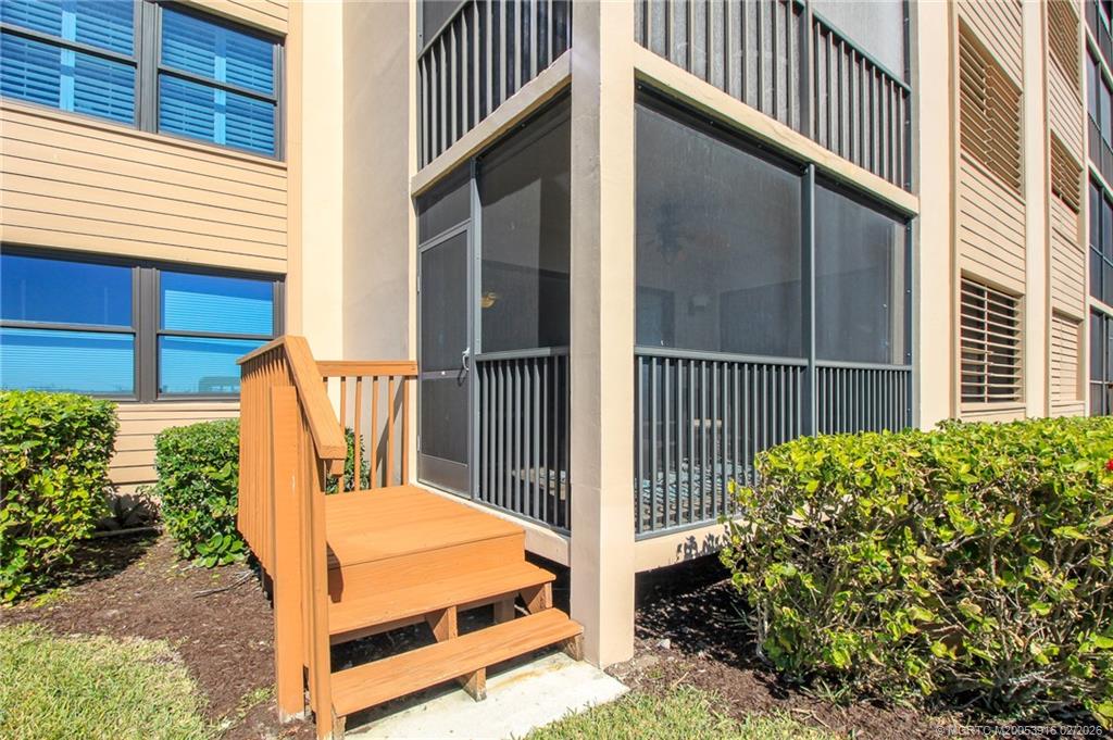 Don't miss out on one of Sandpebble's best wide water views from this ground floor gem on the Indian River Lagoon. The smart open plan features tile and laminate floors, split bedrooms for added privacy, an efficient kitchen layout and a spacious living/dining area that opens onto the screened, covered balcony. Step out from the private deck to take in breathtaking sunsets from the docks or entertain at one of 3 riverside pools while grilling your favorite meal. Private beach access with two additional pools, kayak storage, tennis/pickle ball and boat slips for rent (subject to availability) at $1. 50 per linear foot per month plus a $500 annual fee. Units are rentable right away with a 60-day minimum, up to four times annually. Owners are permitted one pet under 20 pounds. This is the perfect opportunity to enjoy mild Florida winters or year-long relaxation in our charming seaside small town!