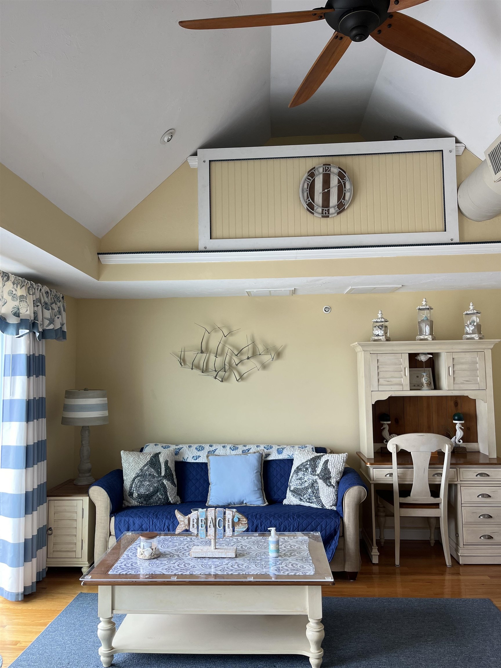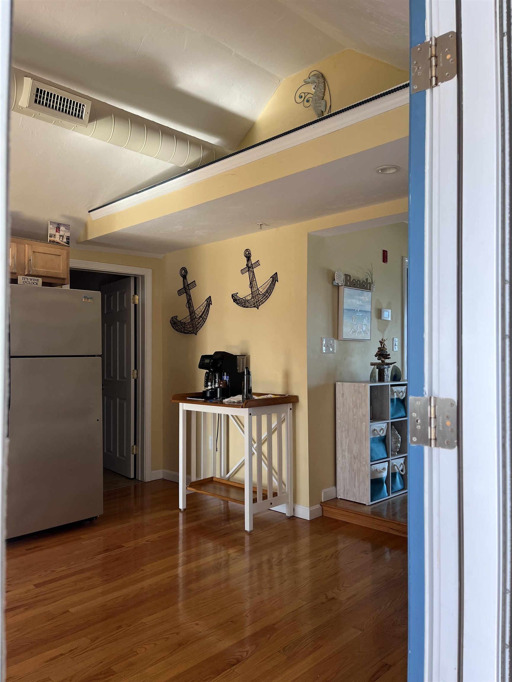 Located directly on the ocean, this property will soothe your soul. Listen to the sounds of the waves from every room day and night and you’ll inevitably find ease. Follow a spiral staircase directly to the sand to relax or take a leisurely walk on the beach. Its location is just a short 5 min walk to downtown for family entertainment, Sea Glass & Capri restaurant’s, Blue Ocean Music Hall, Surf Side outdoor music facility, and beach pizza! With 2 reserved parking spaces this property allows you to forget about the traffic and simply relax and unwind. Rest your head in comfort in one of the 2 bedrooms this property offers. The ocean front bedroom sleeps 2 in a twin captain’s bed with a twin trundle. Mother nature’s spectacular sunrise views will not disappoint if you choose this room! The second bedroom offers a restful night to the sounds of the ocean waves in a full bed with 2 nightstands.