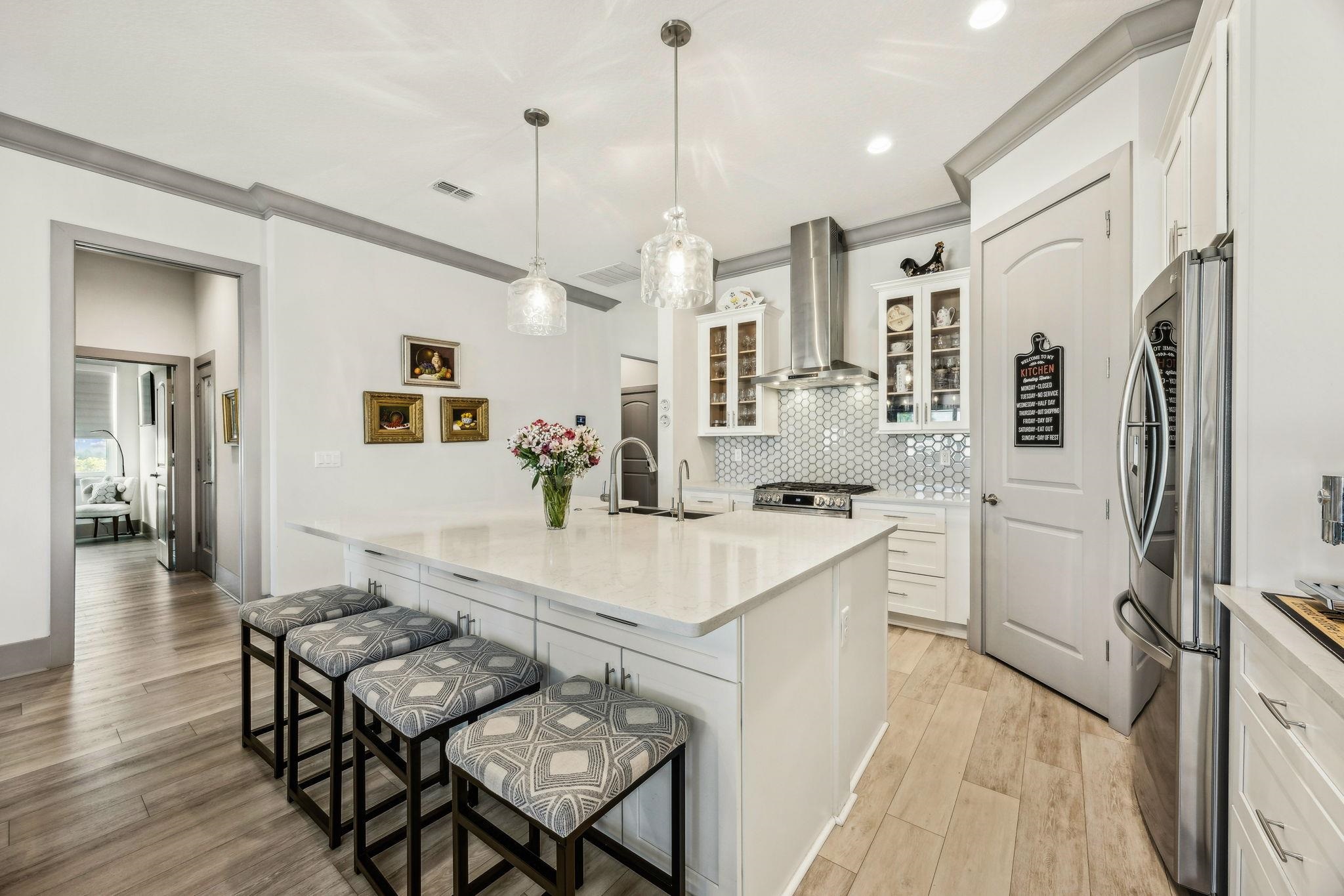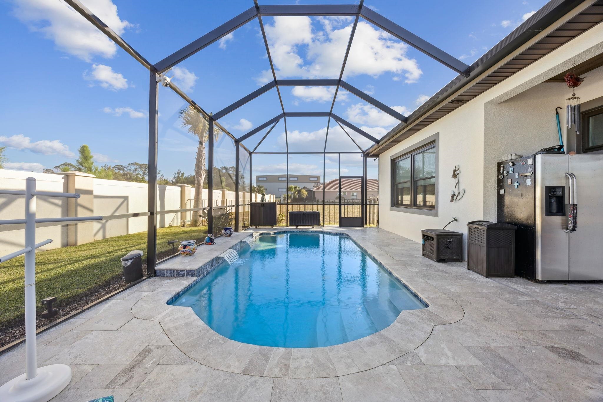 Calling all boaters! Welcome to coastal living at its finest in this beautifully appointed 3-bedroom, 3. 5-bath concrete block home built in 2024 by Hulbert Homes and offering 2, 354 sq. ft. of thoughtfully designed living space and loaded with upgrades. Featuring an open floor plan, this home is perfect for both everyday living and entertaining. The kitchen overlooks the dining and living areas and offers LG appliances, upgraded lighting and plumbing fixtures, and walk in pantry. The living room has trey ceilings and access to the covered lanai. Enjoy Florida living year-round on the screened lanai with saltwater heated pool, complete with a convenient half bath accessible from the pool area. Additional highlights include a tile roof, oversized 2 car garage with additional parking for a golf cart plus workshop space, water softener with reverse osmosis, a Florida attic with foam insulation, a dedicated office, spacious laundry with lots of cabinetry and storage, and a wine cellar closet. Refer to upgrade list for all the home details! Located in an exceptional boating community, this property is truly a boater’s dream with wet and dry boat slips. Take advantage of concierge boat service—simply call ahead and your boat will be fueled, ready to go, and waiting for you. When you return, the staff handles cleaning and storage. In addition to the marina, Marina Del Palma offers a community pool, clubhouse with fitness center, dog walking area, is gated and is a gas community. A rare opportunity to enjoy luxury, convenience, and an unmatched waterfront lifestyle.