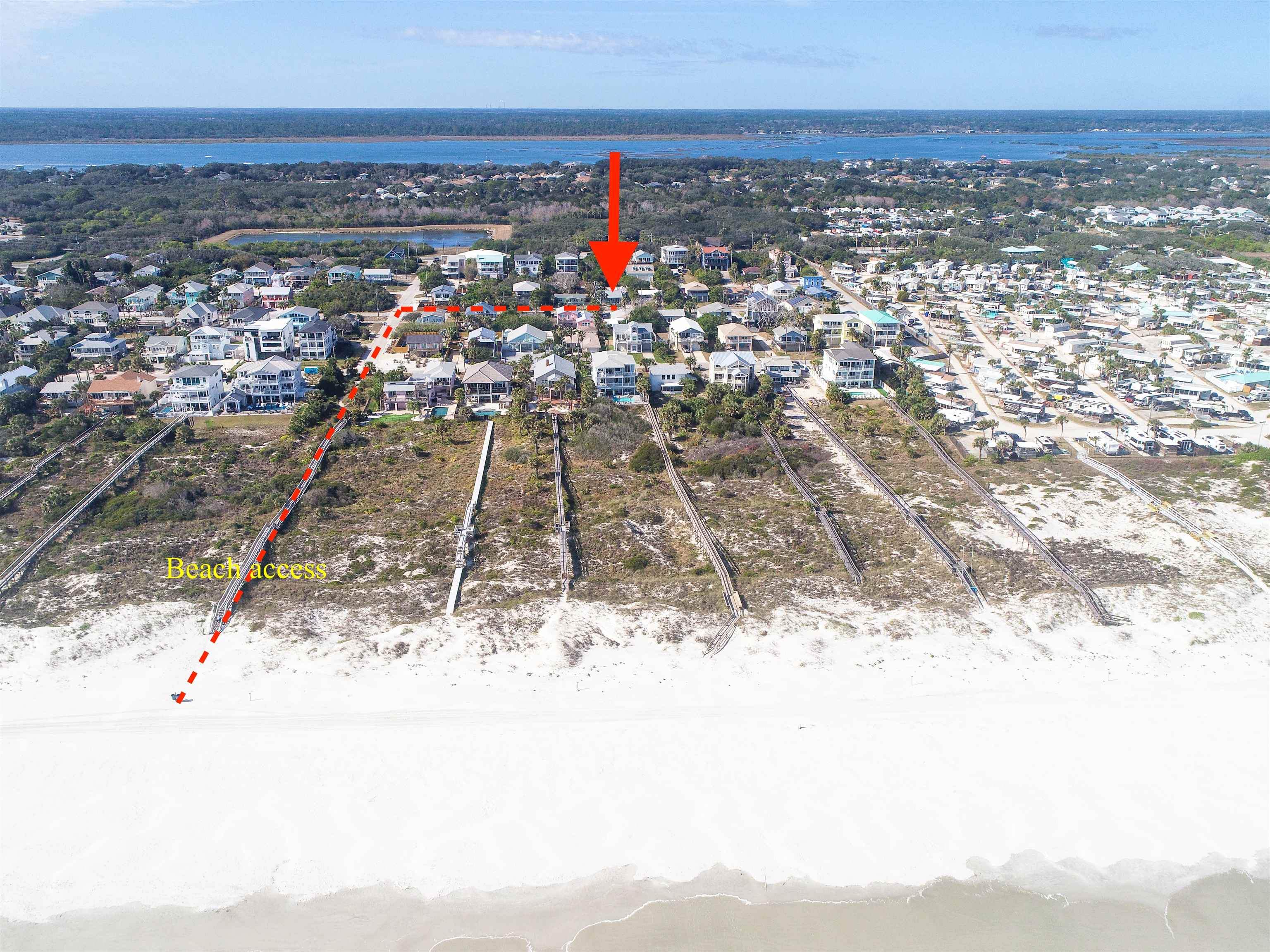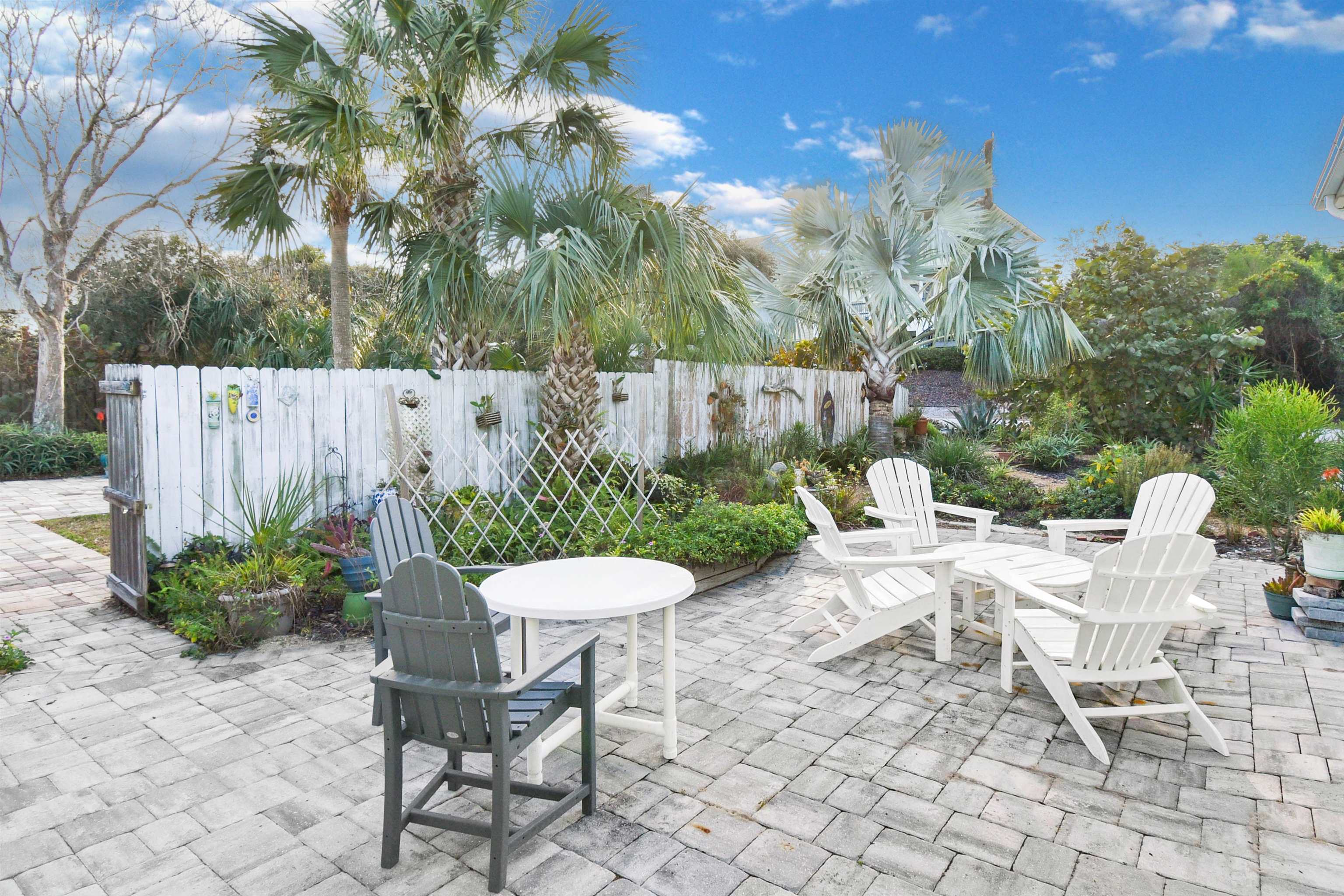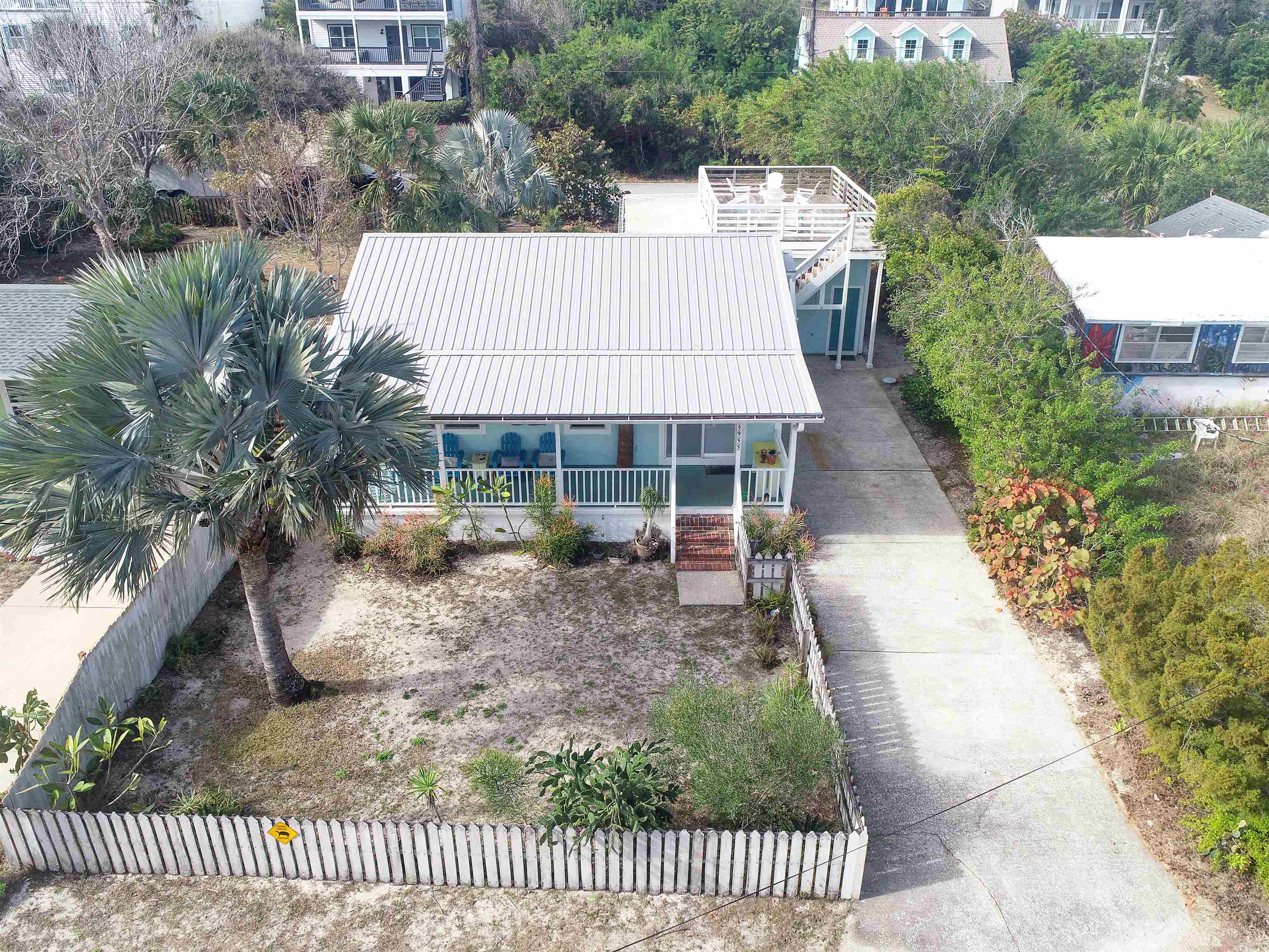 Welcome to the Mermaid, located a three-minute walk from Crescent/Butler Beach. This beautiful open-concept beach cottage has three bedrooms and two full baths, including a separate guest suite with bath. Enjoy the sound of the ocean from the covered front porch or rooftop deck, while the generous backyard and patio offer ample outdoor living space. The owners have meticulously maintained and improved this home. Fully turnkey and sold furnished, it features a newer roof, A/C, updated kitchen and baths, and excellent storm resilience thanks to its elevated setting. A one-car garage provides ample storage, and the oversized lot offers abundant onsite parking. Ideally suited as a year-round beach getaway with a strong rental history, the home would also serve as a comfortable primary residence. Purchase the property next door (4969 Medoras Avenue) and create a family compound! This home is located in the county not in the city of St Augustine Beach. Very close to the beach access. Plenty of room to add a guest home on the back, plenty of possibilities.