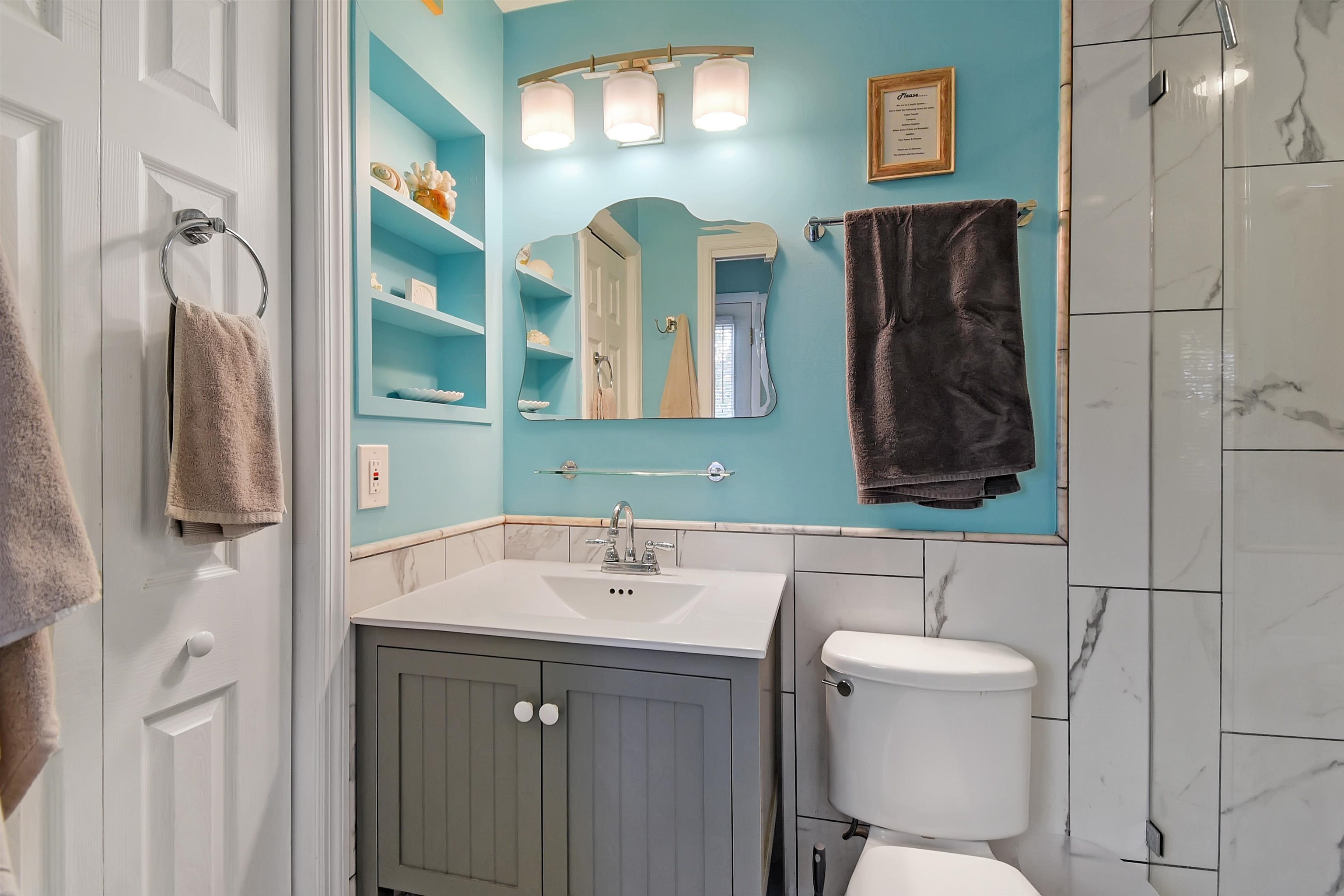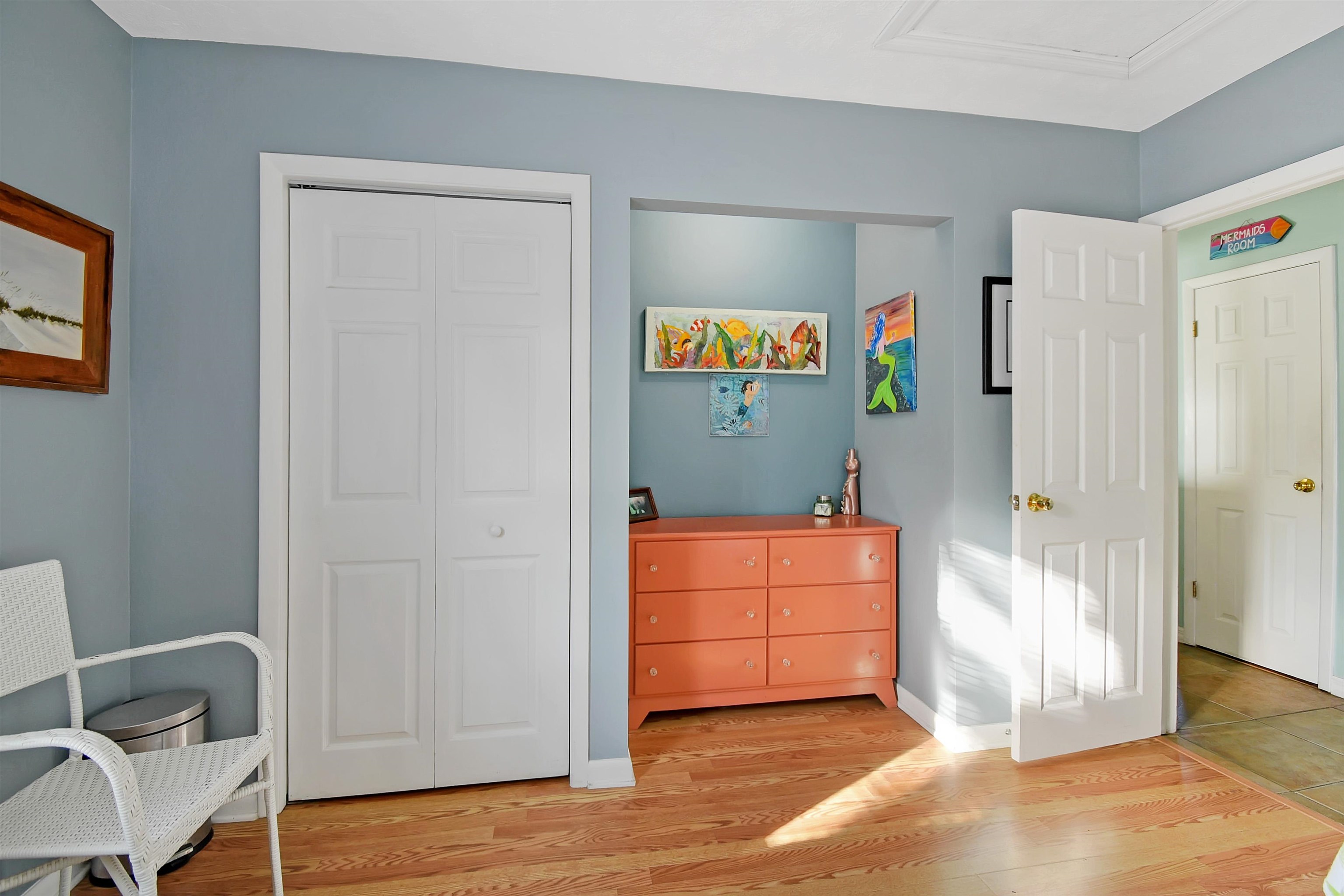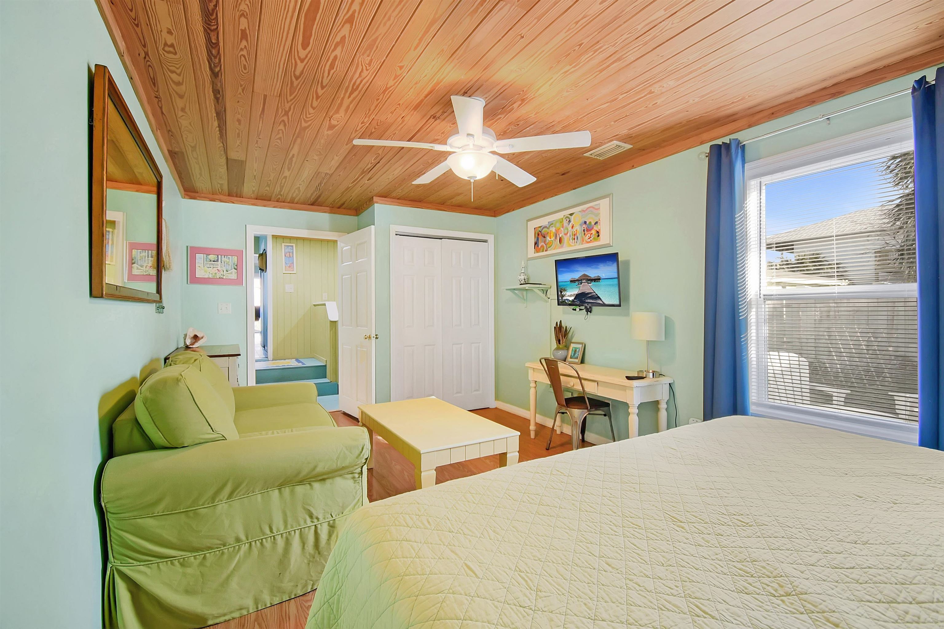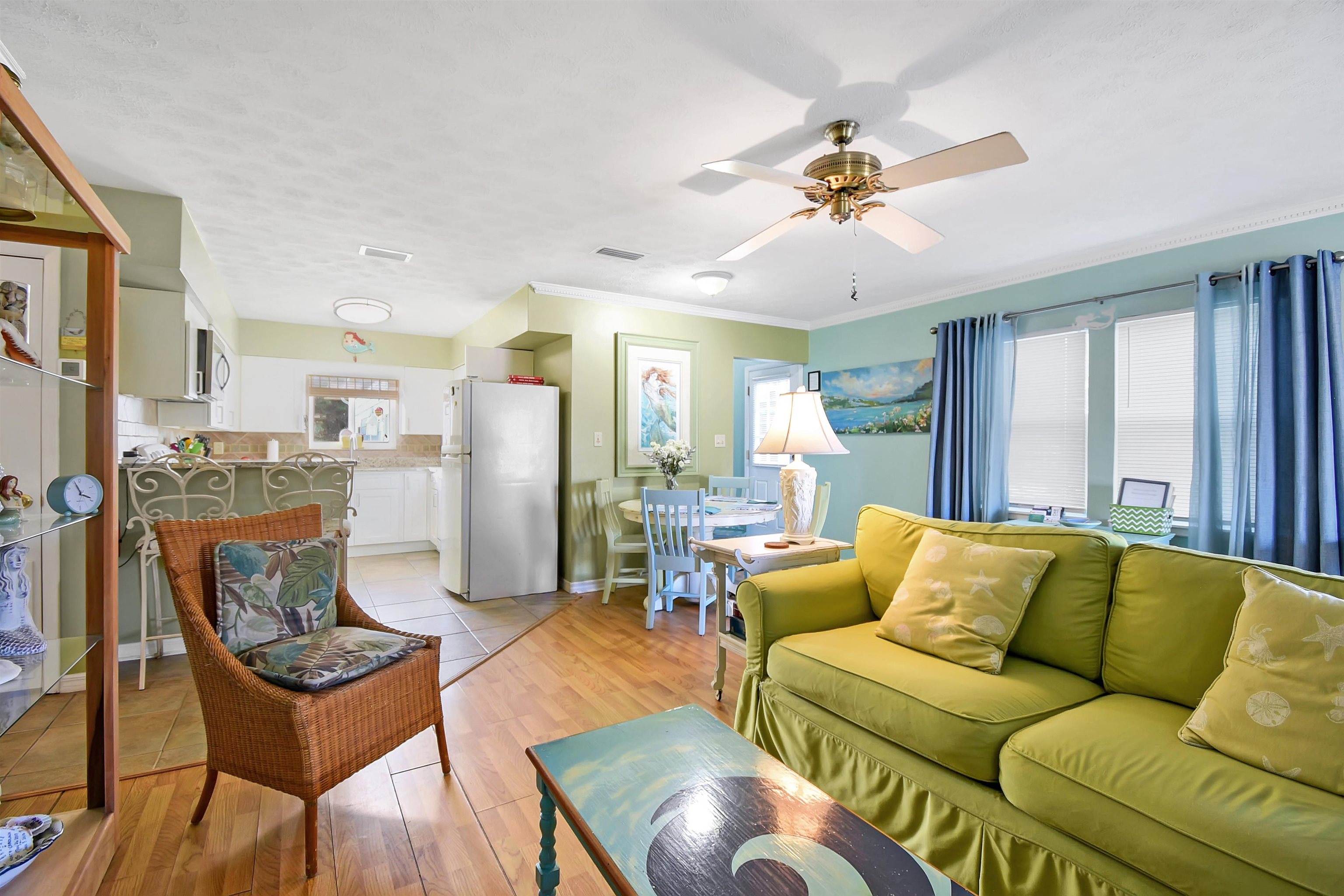 Welcome to the Mermaid, located a three-minute walk from Crescent/Butler Beach. This beautiful open-concept beach cottage has three bedrooms and two full baths, including a separate guest suite with bath. Enjoy the sound of the ocean from the covered front porch or rooftop deck, while the generous backyard and patio offer ample outdoor living space. The owners have meticulously maintained and improved this home. Fully turnkey and sold furnished, it features a newer roof, A/C, updated kitchen and baths, and excellent storm resilience thanks to its elevated setting. A one-car garage provides ample storage, and the oversized lot offers abundant onsite parking. Ideally suited as a year-round beach getaway with a strong rental history, the home would also serve as a comfortable primary residence. Purchase the property next door (4969 Medoras Avenue) and create a family compound! This home is located in the county not in the city of St Augustine Beach. Very close to the beach access. Plenty of room to add a guest home on the back, plenty of possibilities.