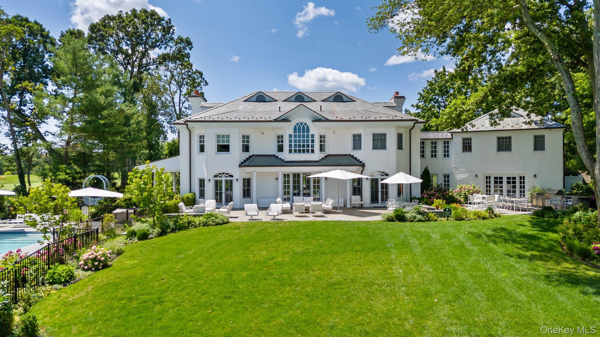 This classic white brick Georgian Colonial is the epitome of timeless elegance and modern luxury. It is more than a home—it’s an invitation to experience life at its finest. Commandingly situated at the end of a private lane and cul-de-sac in Rye, New York, this custom-built estate spans over two acres of meticulously landscaped grounds, offering breathtaking views of not one, but two golf courses—the 10th holes of both The Apawamis Club and Harrison Meadows—and the magnificent Westchester Country Club clubhouse in the distance. From the moment you arrive, you’ll feel the sense of exclusivity and tranquility that defines this extraordinary residence and retreat. A true sanctuary of sophistication, this home seamlessly blends comfort, grandeur, and an entertainer’s dream setting. Every detail of this home has been curated to perfection, with custom designer finishes that set a new standard for refinement. The light-filled living room, which is anchored by the fireplace and double French doors, opens gracefully to a covered porch overlooking the beautiful gunite pool with quartz light blue finish added in 2021—a perfect retreat for lounging or hosting unforgettable gatherings. The kitchen is designed for both culinary artistry and family connection. It features two center islands, top-of-the-line appliances, custom built-ins, an adjacent family room with a fireplace and a bright eat-in area surrounded by French doors, and all crowned by magnificent terrace and golf course views. The formal dining room, also with French doors, extends the entertaining space to the blue stone terrace with a built-in kitchen, making it ideal for al fresco dining against a backdrop of breathtaking panoramic views—the ideal spot for al fresco dining or watching July 4th fireworks light up the sky. Your guests will not believe how amazing the fireworks show is from the comfort of your home on the terrace or poolside. The richly paneled library, complete with a wet bar, offers the perfect sanctuary for work or relaxation. Upstairs the five bedrooms are ensuite, offering privacy and luxury at every turn. There are several possibilities for a sixth or seventh bedroom if needed. The newly reimagined primary suite is a true showstopper, a sanctuary unto itself featuring dual walk-in closets, a sitting area, coffee bar and a marble primary bath with radiant heated floors, a spa-like retreat that redefines indulgence. A separate wing offers two spacious ensuite bedrooms with a lounge and a convenient back staircase leading from the first floor media/game room ensuring ample space for family or guests. A third floor adds even more flexibility for your unique needs. Beyond the interiors, the property invites endless possibilities for recreation and relaxation. The third bay of the three-car attached garage is used as a gym and you are just minutes from your tee time. All this is a short walk to downtown Rye and just a 38-minute train ride to NYC—complete this extraordinary offering. This home isn’t just a residence; it’s a lifestyle. From the luxurious finishes to the idyllic setting, every element has been designed to create an unparalleled living experience designed for pure enjoyment. It must be seen to be truly appreciated. There is an additional one acre property (16 Boxwood Lane) adjacent to this 2. 14 acre property available for purchase for $1, 995, 000 which affords you even more privacy.