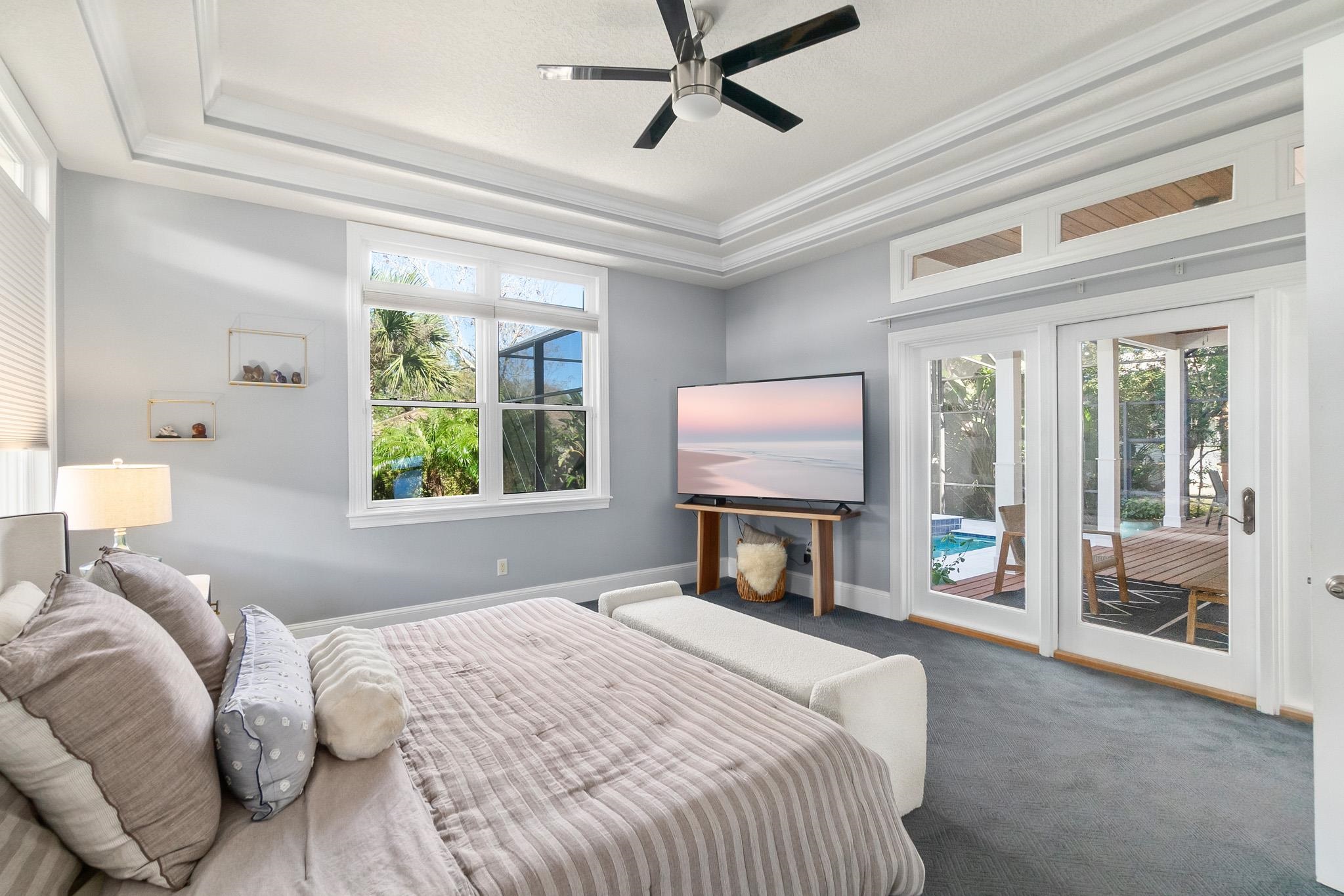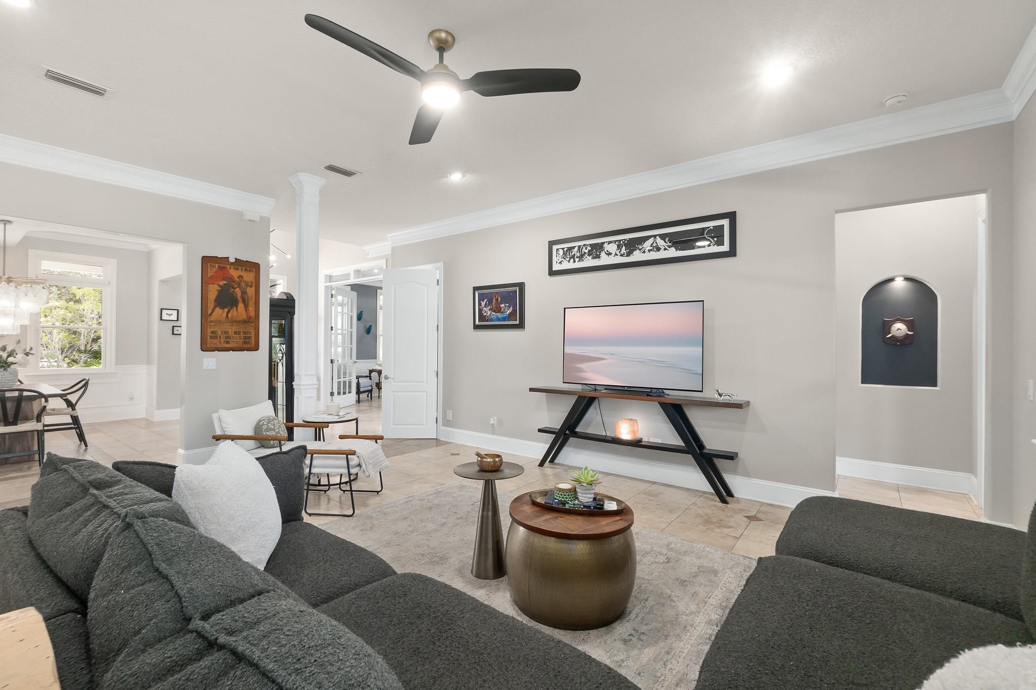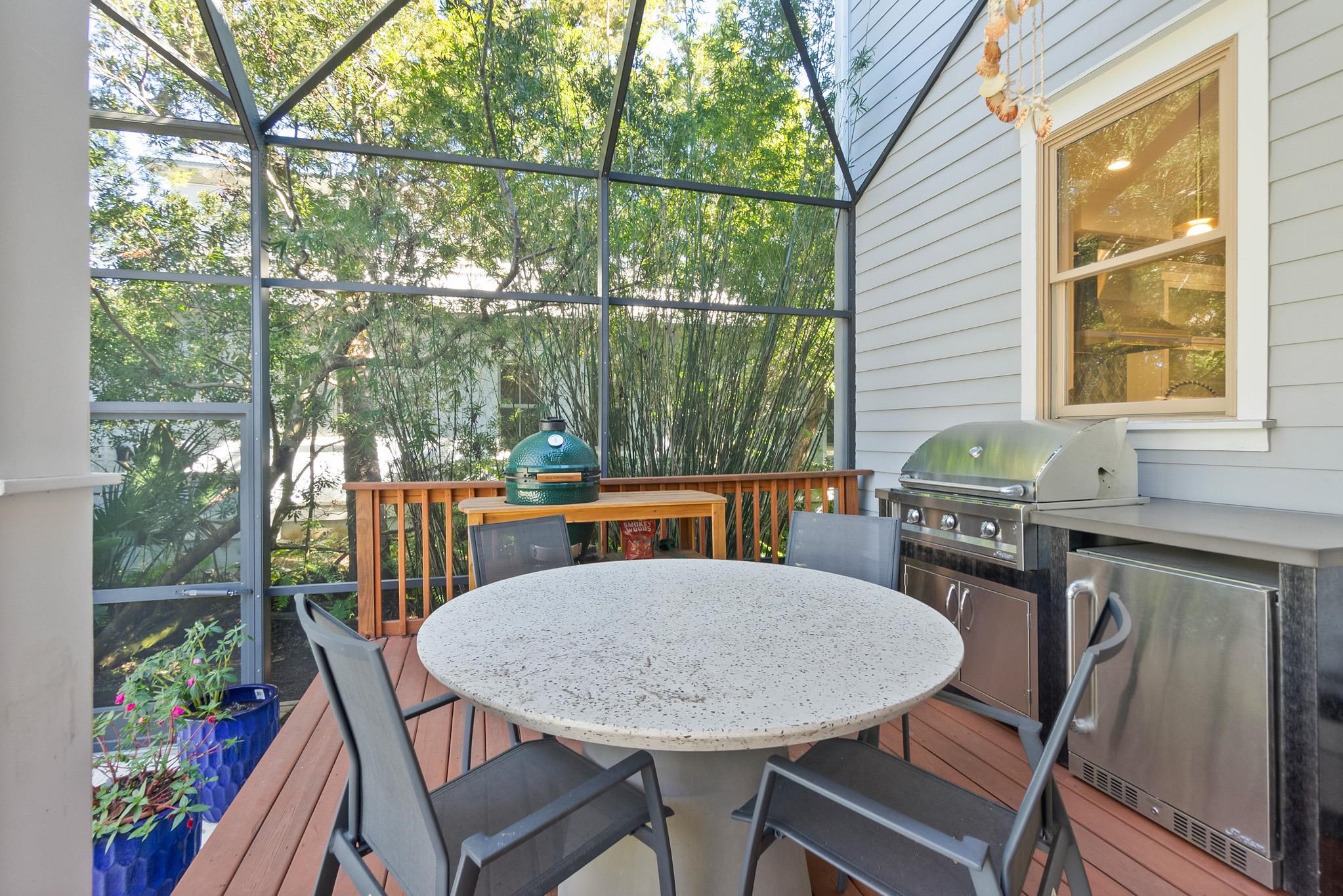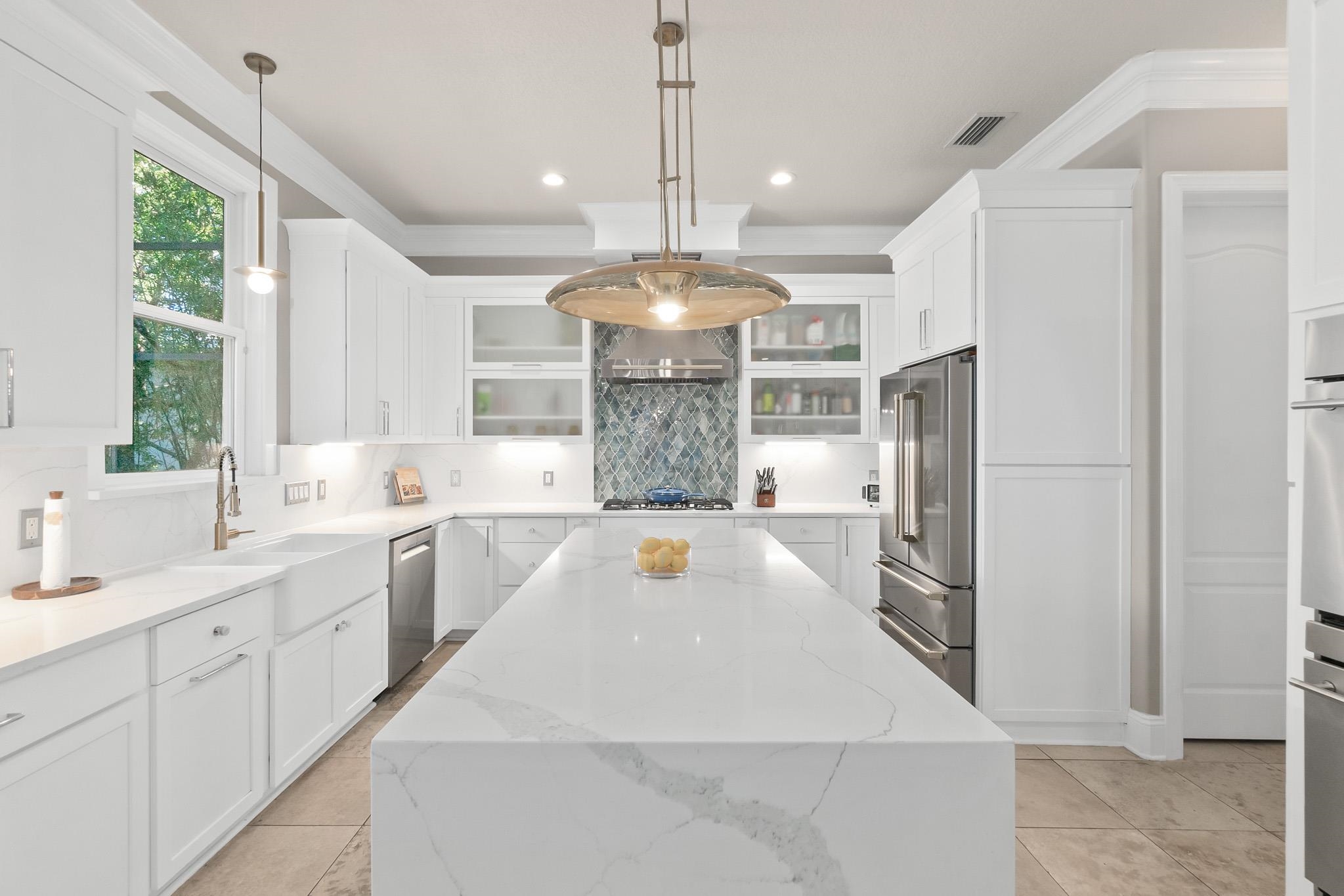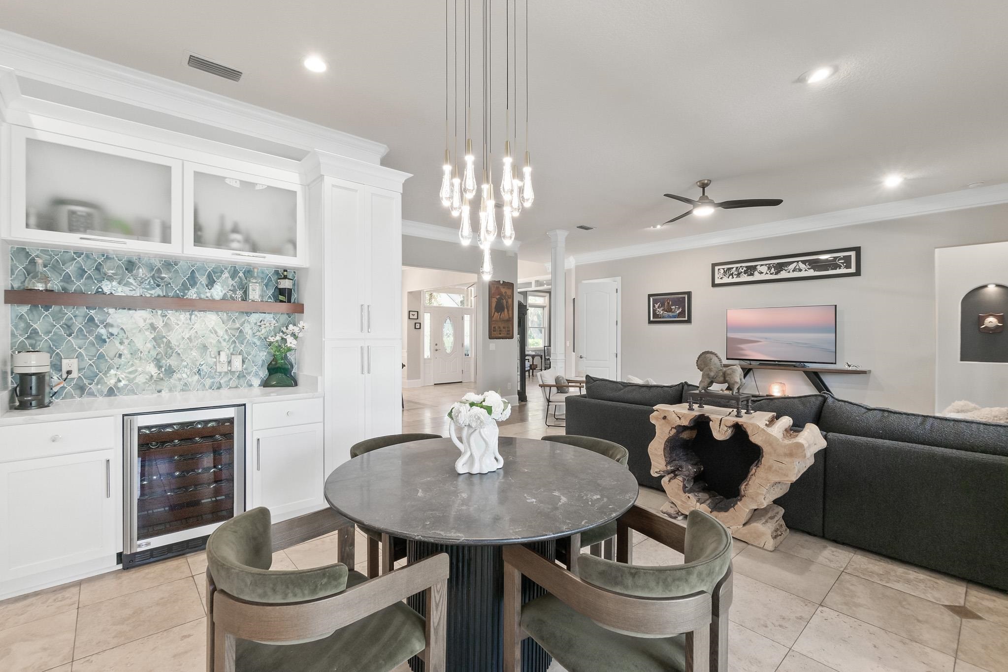 Set in the heart of St. Augustine Beach, this Anastasia Dunes pool home offers beach access and exceptional indoor-outdoor living. Two expansive front porches shaded by a majestic Live Oak draped in Spanish moss create a warm and inviting arrival. Inside, a grand two-story foyer with travertine tile floors opens to a thoughtfully designed layout ideal for entertaining, featuring a formal dining room, spacious living area, expansive chef’s kitchen, flex space, powder room, and a luxurious owner’s suite. The home has been extensively updated with over $200, 000 in high-end improvements, including a reimagined kitchen with a waterfall quartz island, real sea glass backsplash, repainted cabinetry, farm sink, ZLINE refrigerator with matching hood, Bosch gas cooktop with propane service, and new dishwasher. Outdoor living is a standout feature with a heated, enclosed saltwater pool and spa, new travertine pool decking, multiple pool-area decks, a front porch deck, and a second-level front deck, along with a fully equipped outdoor kitchen overlooking a private, lush backyard of over one-third of an acre. Major upgrades include a new roof, upstairs HVAC system, all-new pool equipment, irrigation pump and sprinkler heads, EV charger, refreshed exterior trim, and restained decks. Located within the Anastasia Dunes community, known for its winding streets, mature trees, community pool, and private beach access, and zoned for RB Hunt Elementary, this home offers an exceptional coastal lifestyle in St. Augustine Beach.