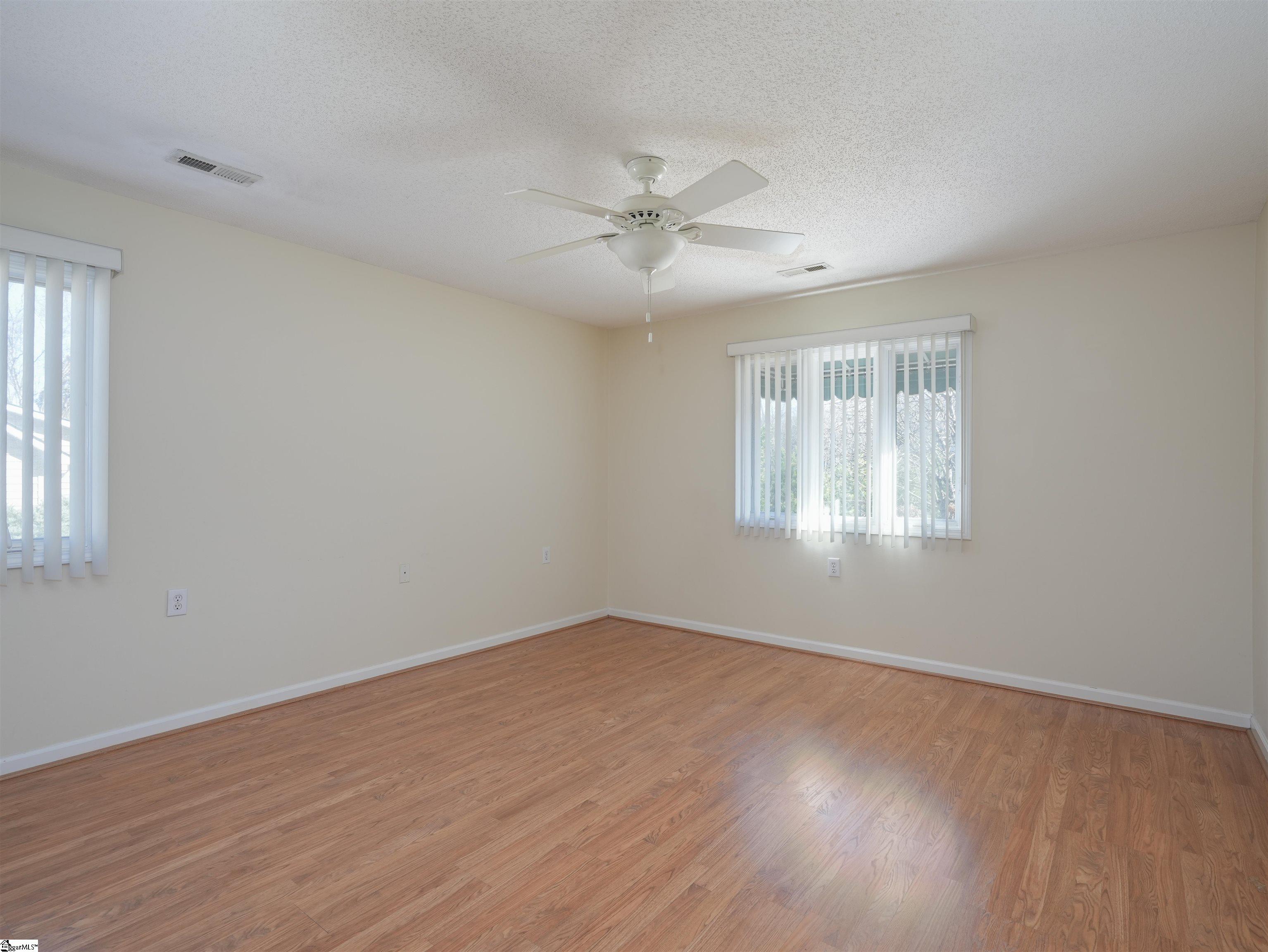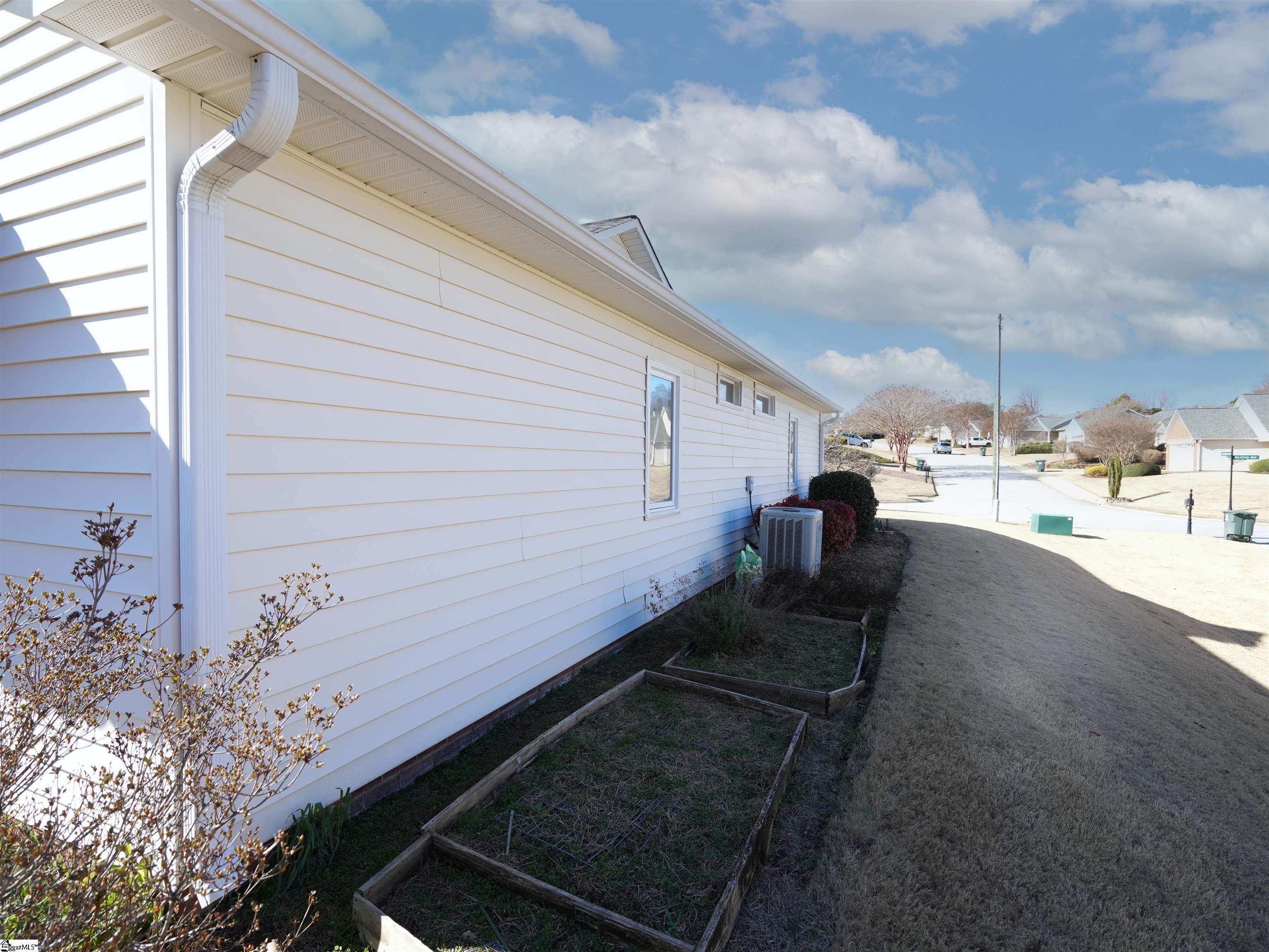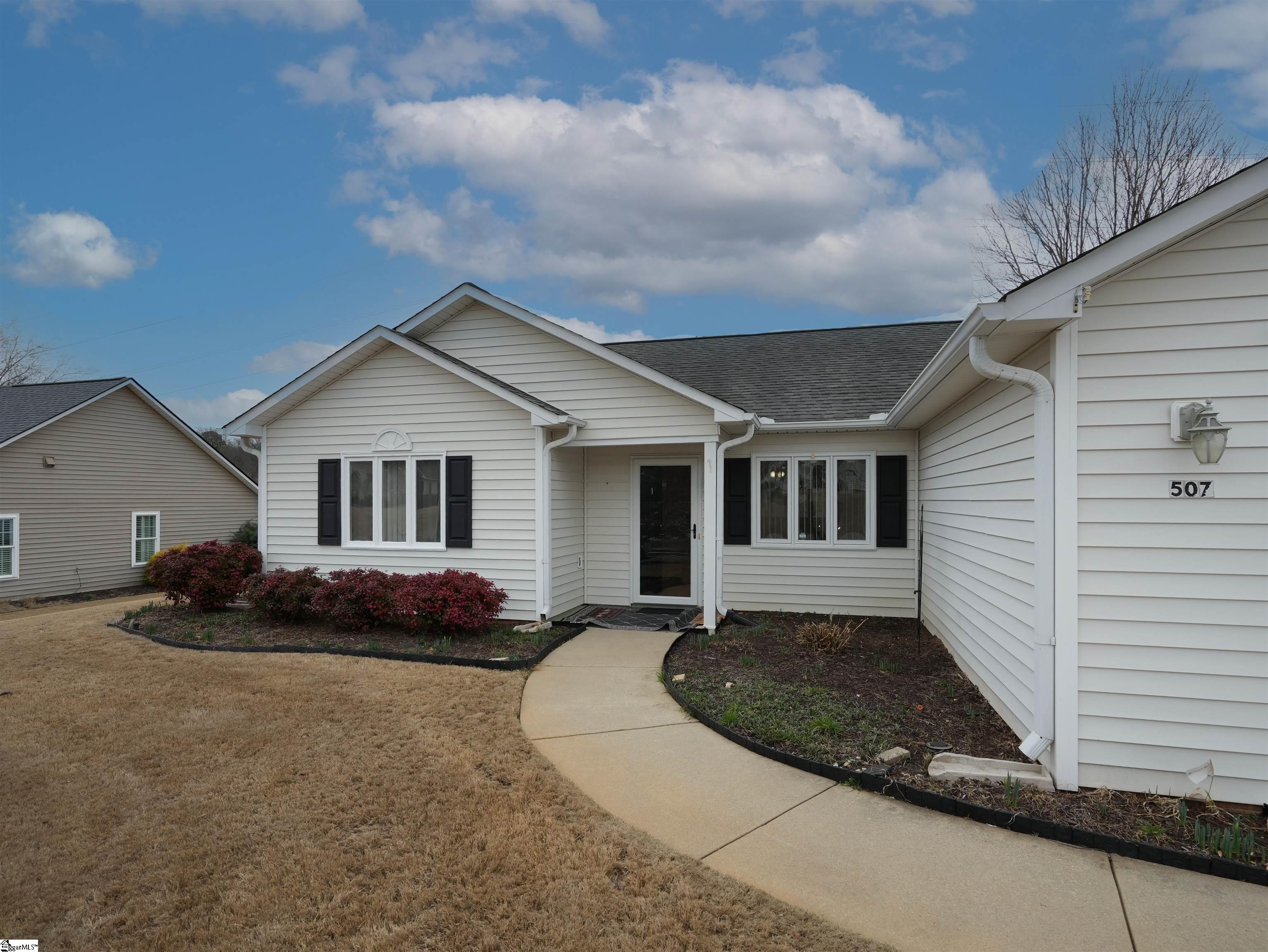 This is patio home living at its finest. Rolling Green Village is a 55+ retirement community with a continuum of care services (assisted living, skilled nursing, rehabilitation, memory care). This well-maintained house is a detached, single family residence with a two-car garage on a quiet street/cul de sac. The house features a nice kitchen with granite countertops and updated appliances. It opens to a covered porch and "paver" patio overlooking a wonderful green space. The open living room and dining room have gleaming hardwood floors. The welcoming sun room can be used as a flex space for a den or office. The primary bathroom has a walk in shower. A spacious guestroom and a guest bathroom has a tub shower combination. The double garage has a pull down ladder to attic space. The Summerside HOA fee of $328/month covers exterior maintenance of the roof and vinyl siding, garbage pickup, and termite contract. The Rolling Green Village regime fee of $662/month for the first person and $416/month for the second person. Fees provide maintenance of the main facilities and offers "lifeline" medical alert services, security on site, some transportation services to shopping and medical appointments, discounted meal plans, discounted housekeeping/maintenance services, a health and wellness center with saltwater pool and workout/gym area, library, and woodworking shop, and some transportation service. There is a onetime RGV membership entry fee ($12, 000 for the first person and $6, 000 for the second person). All buyers must be approved for membership by RGV marketing. The RGV community is conveniently located near the Greenville-Spartanburg International Airport, downtown Greenville, and shopping off Woodruff and Pelham Roads with a variety of restaurants, grocery stores, world class healthcare facilities, and entertainment venues. Downtown Greenville, voted one of the nation's best main streets and places to retire, is a short drive away. Come experience all that Rolling Green has to offer. Features include new hardwoods in main areas, granite counter tops, molding and new hardware on cabinets, washer and dryer included, new high end garage door, workbench area with dedicated circuitry, new hardware and framed mirrors in bathrooms, new comfort level toilets in bathrooms, custom paver stone patio, excellent yard drainage, new ceiling fans. AS OF JANUARY 1, 2026 THERE IS A ONE-TIME SUMMERSIDE ENTRY FEE OF $2, 000.