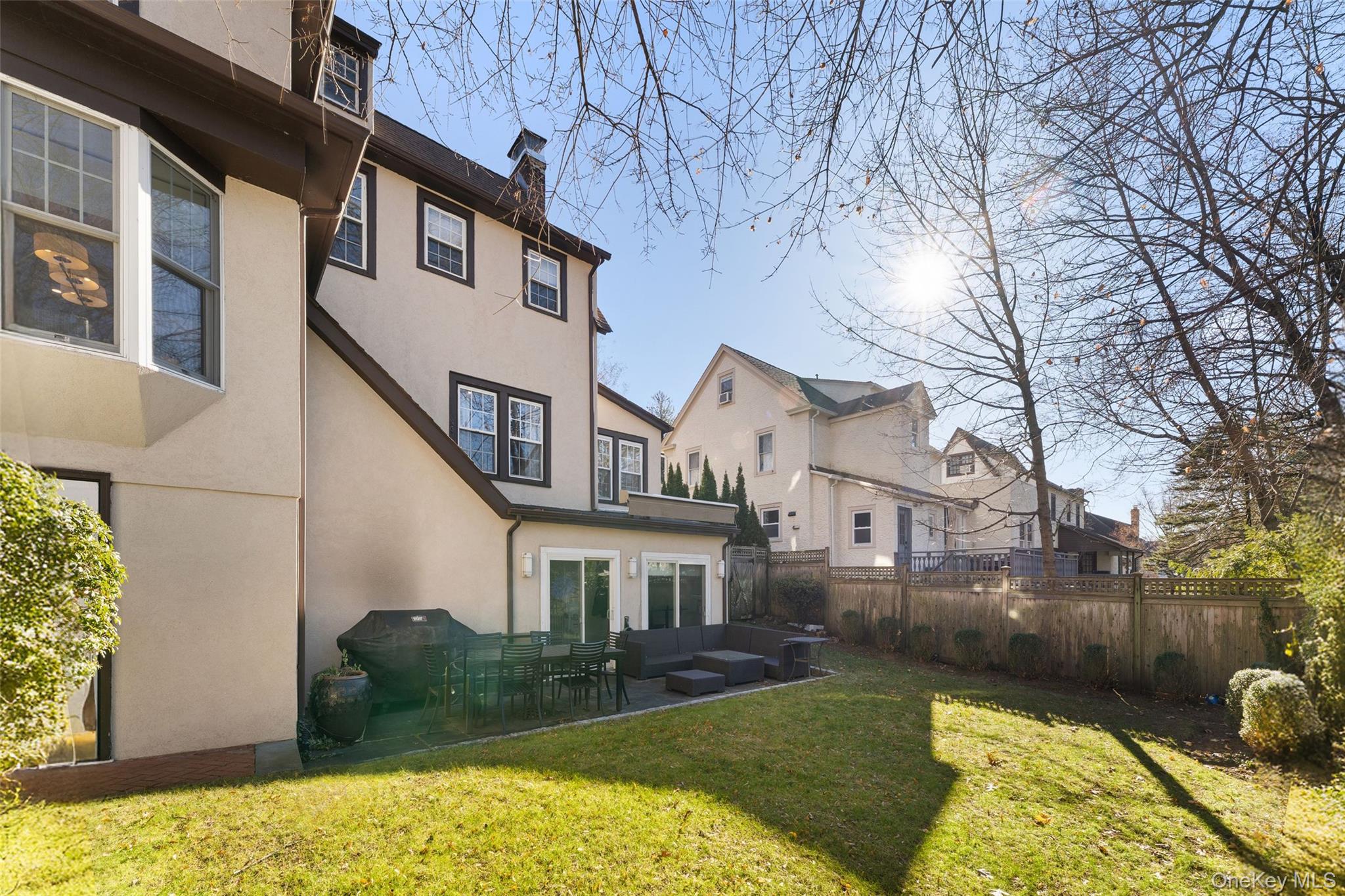 Timeless Tudor, thoughtfully reimagined for modern living, ideally situated in Scarsdale’s coveted Greenacres neighborhood—just moments from the train, shops, and elementary school. Completely renovated in 2015, this exceptional home seamlessly blends classic architectural charm with sophisticated contemporary design and convenience. The inviting living room, anchored by a striking linear gas fireplace, flows effortlessly into the show-stopping kitchen featuring an oversized center island, marble countertops, custom cabinetry, and a suite of high-end appliances. The eat-in kitchen is both stylish and functional, perfectly suited for everyday living as well as intimate or formal entertaining. A chic powder room and a sun-drenched sunroom/home office complete the main level. Upstairs, the serene primary suite offers custom-outfitted closets and a spa-like en suite bath. Two additional bedrooms, a well-appointed hall bath, and a secondary office with custom built-in cabinetry complete the second floor. The third level provides an additional en suite bedroom and bath, along with an impressive walk-in closet/dressing room. The walk-out lower level opens directly to a patio, creating seamless indoor-outdoor entertaining. This level includes a spacious recreation room, gym area, full bath, and a fifth bedroom—ideal for guests—with its own private entrance. Additional highlights include a detached garage and outdoor storage. Move right in and enjoy one of Scarsdale’s most sought-after neighborhoods, offering exceptional proximity to the train station, Scarsdale schools, parks, recreation, local shops, and dining.
