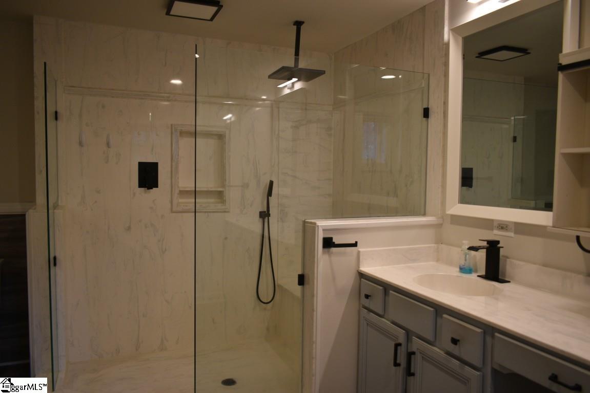 Peace & Quiet are abundant in this single level ranch home in the middle of 6. 6 acres. Watch the deer graze and play in the backyard, while you have coffee lounging in your screen porch. Summertime is great for gatherings around the pool, under the covered deck and around the firepit also. Inside the kitchen is updated with white cabinets, stainless steel appliances and subway tile backsplash. EVP flooring in every room as well as every room freshly painted. A new addition of a primary suite with 2 large walk-in closets, bath with walk in marble rainfall shower, and dual vanity was added. The kitchen was opened to the living room for the open concept to entertain. Bedroom #2 has a private half bath. Two more bedrooms and a full bath are on opposite end from the primary suite. Downstairs there’s a full unfinished basement with a garage and walk out door that is great for storage, workshop, keeping a boat and/or other outdoor toys. On the side road of the property there was previously an RV set up & a mobile home with separate address. The septic and waterline are still present for future use. Along with the cosmetic updates, mechanical and energy efficient updates were also added. So much can be enjoyed in this property that seems like an oasis but only 4 minutes from a grocery store, 10 minutes to exit 35 (I-85 south), 15 minutes to Fairview Rd in Simpsonville. So much potential for more. One owner is licensed Realtor in SC. Come see this home quickly before it’s gone!
