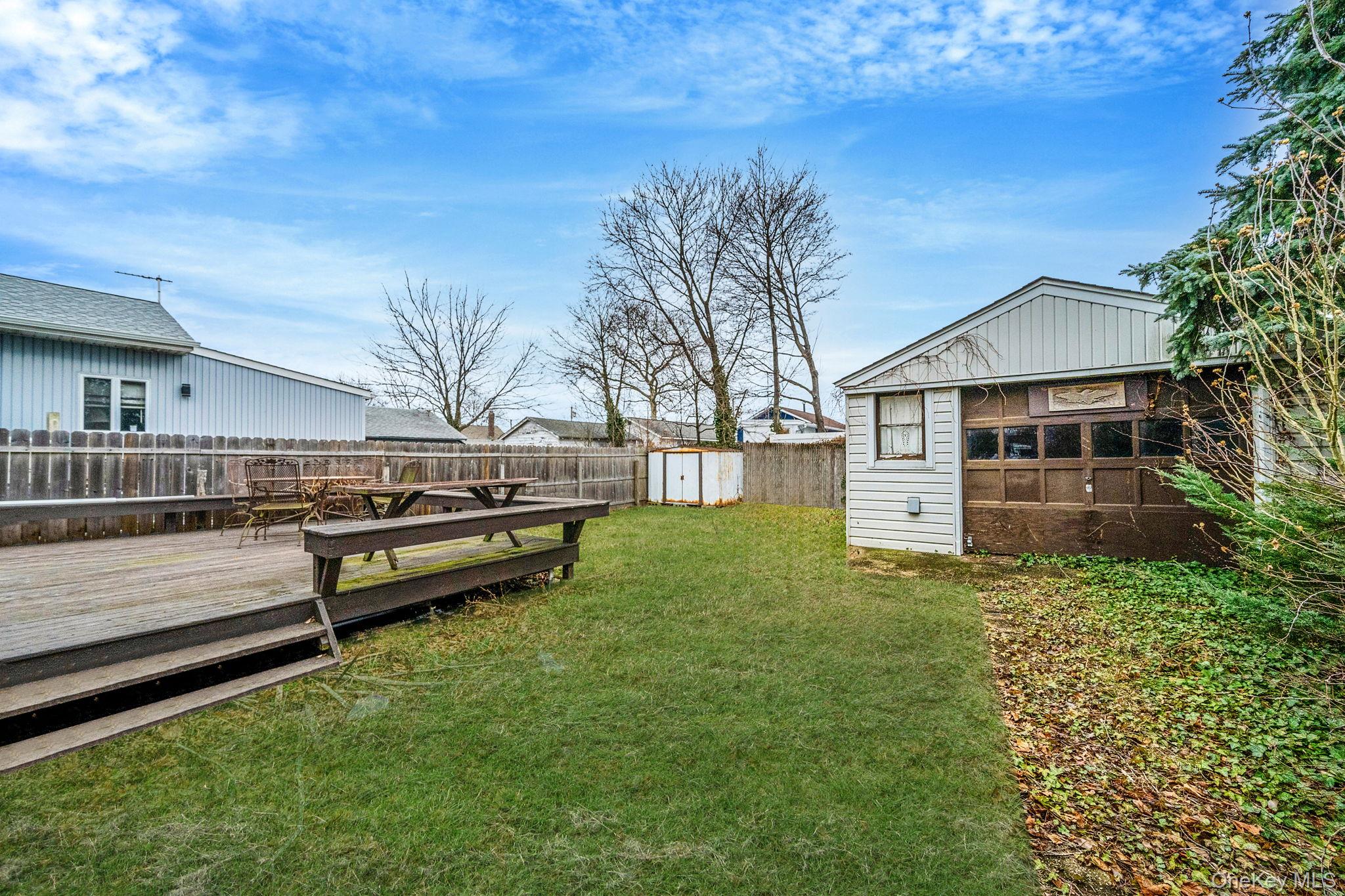 Welcome to 8 Eastern Concourse, Amityville, a hidden gem on the canal and a brilliant opportunity to make it your own. Located on a quiet street with the bulkhead directly across the road, this home enjoys calming views of open water while remaining close to amenities and easy highway access. An interlocking walkway leads to a charming front porch, perfect for morning coffee or watching the world go by. This functional one bedroom home offers tiled flooring throughout with a beautiful sloped wooden ceiling in the main living area which captures the loft area above. The fenced backyard features a deck ideal for outdoor dining or relaxing, and a completely sheeted-rocked detached 1. 5 garage with separate electrical panel offers parking, storage, or even a hobby space! A brand new electrical panel adds peace of mind as you personalize and plan for the future. A property with character, setting, and outstanding potential in a welcoming neighborhood is perfect for boat enthusiasts especially with the upcoming season. Located on a dead end street - come make this your own!