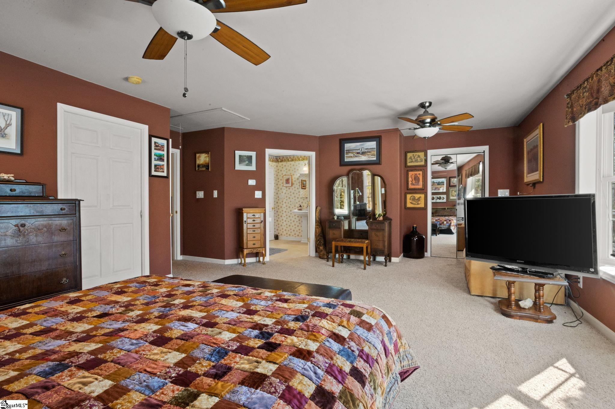 Set on 3. 55 waterfront acres, this one-level custom home offers exceptional space and versatility with two primary suites. Conveniently located near Highway 11, the home features 4 bedrooms, 3 bathrooms, and over 2, 700 square feet of living space. The spacious great room and eat-in kitchen both enjoy peaceful views of the reservoir, creating a perfect backdrop for everyday living and entertaining. The kitchen is well appointed with a pantry, large breakfast bar, and all appliances conveying, and it opens seamlessly to the dining area and great room—ideal for hosting family and friends. The original primary suite includes a full bath with a walk-in shower, multiple closets, and tranquil water views, while additional guest bedrooms share a hall bath. A second, oversized primary suite was added and offers excellent flexibility, featuring a full bathroom with a walk-in shower and bidet, multiple closets, and space suitable for a home office or kitchenette. Additional features include a walk-in crawl space that doubles as a workshop, an oversized garage with room for two vehicles plus a golf cart, space for a freezer and an additional refrigerator, ample storage, and two water heaters. The property sits on a reservoir lake where boating is not permitted, but a dock is allowed, and residents also enjoy access to a nearby neighborhood lake with a picnic area and boating limited to electric trolling motors. A handicapped lift may remain if desired.