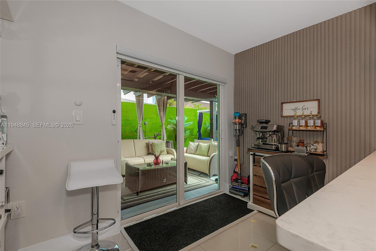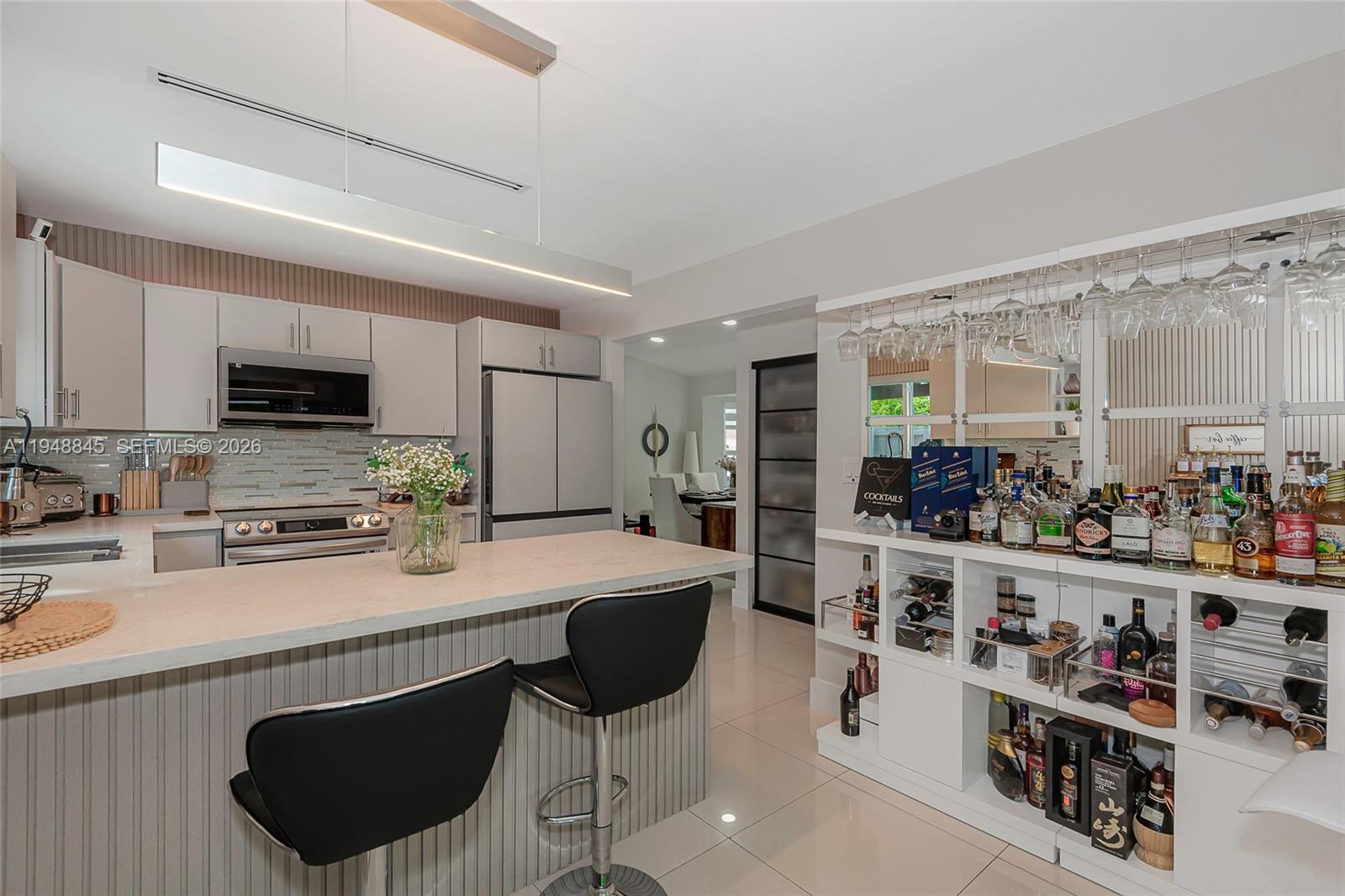 Solar panels, Jacuzzi, outdoor kitchen equipped with wine cooler and fridge. 2 beautiful pergolas with Tv that stay. New appliances in kitchen, tastefully redone cabinets, Porcelain tile throughout, home. Electric water heater new, Garage cabinets, Driveway with pavers. Bathrooms all updated. Storage shed, outdoor pool table that stays. LED lighting, external speakers and new gutters