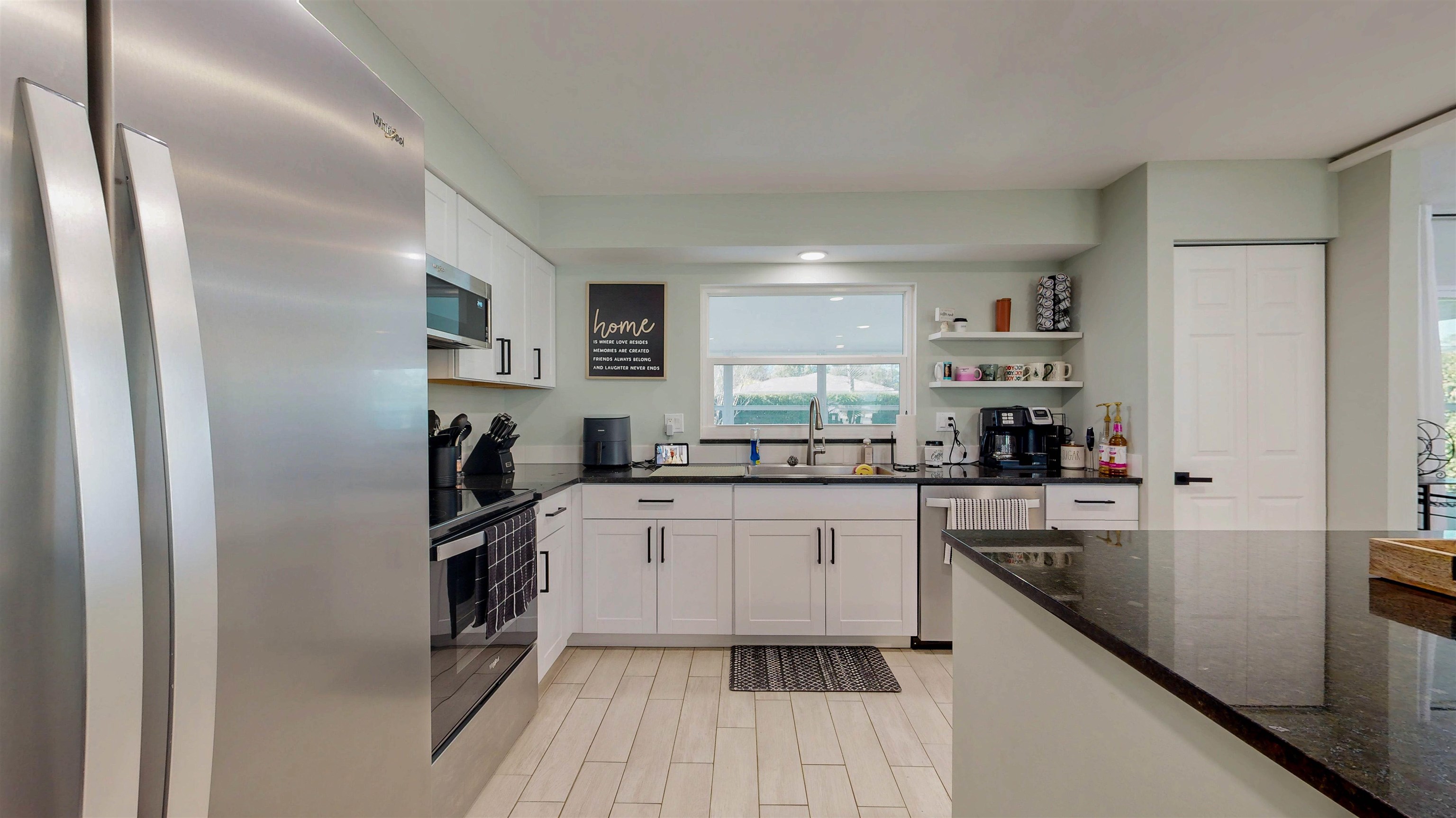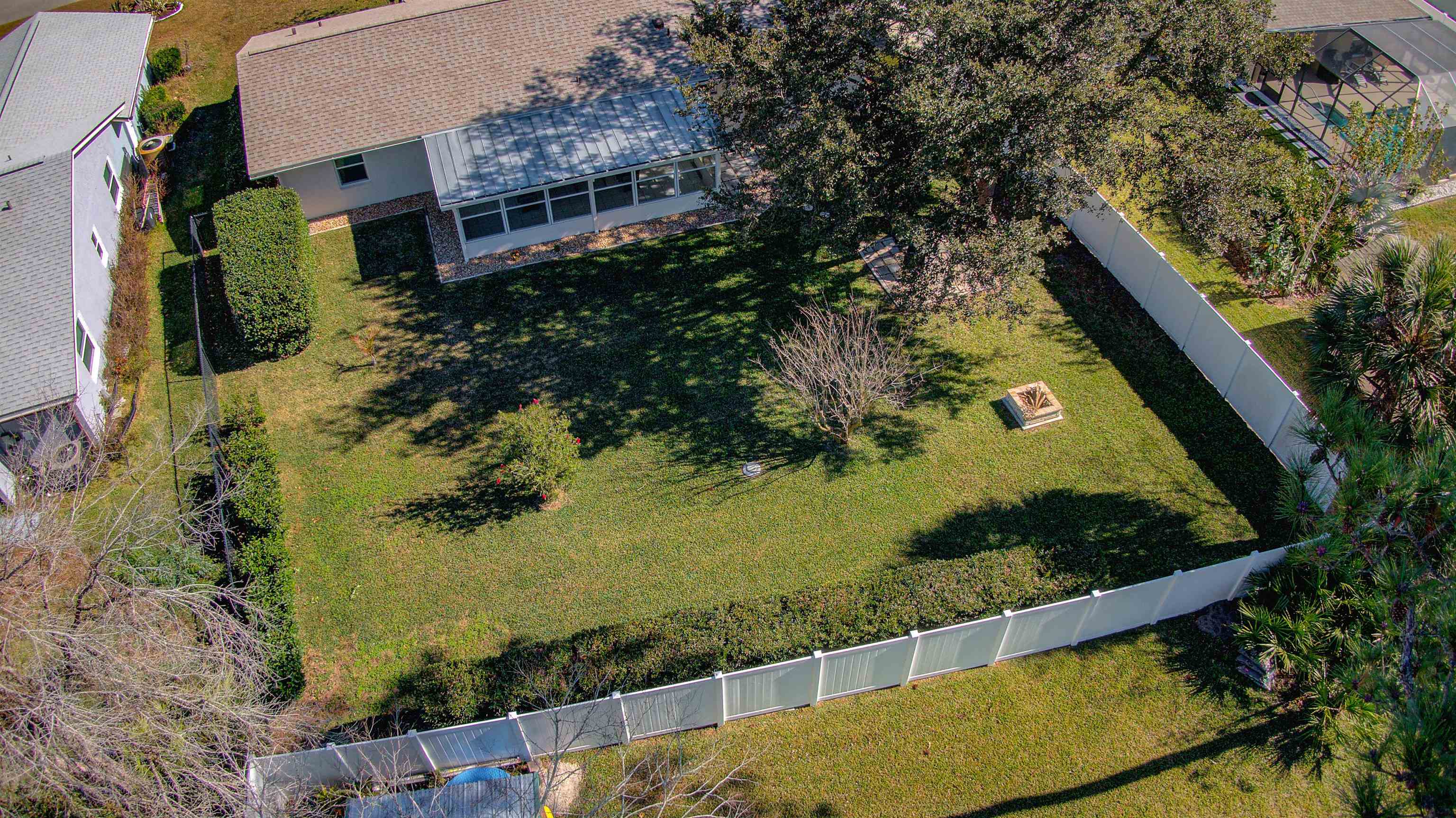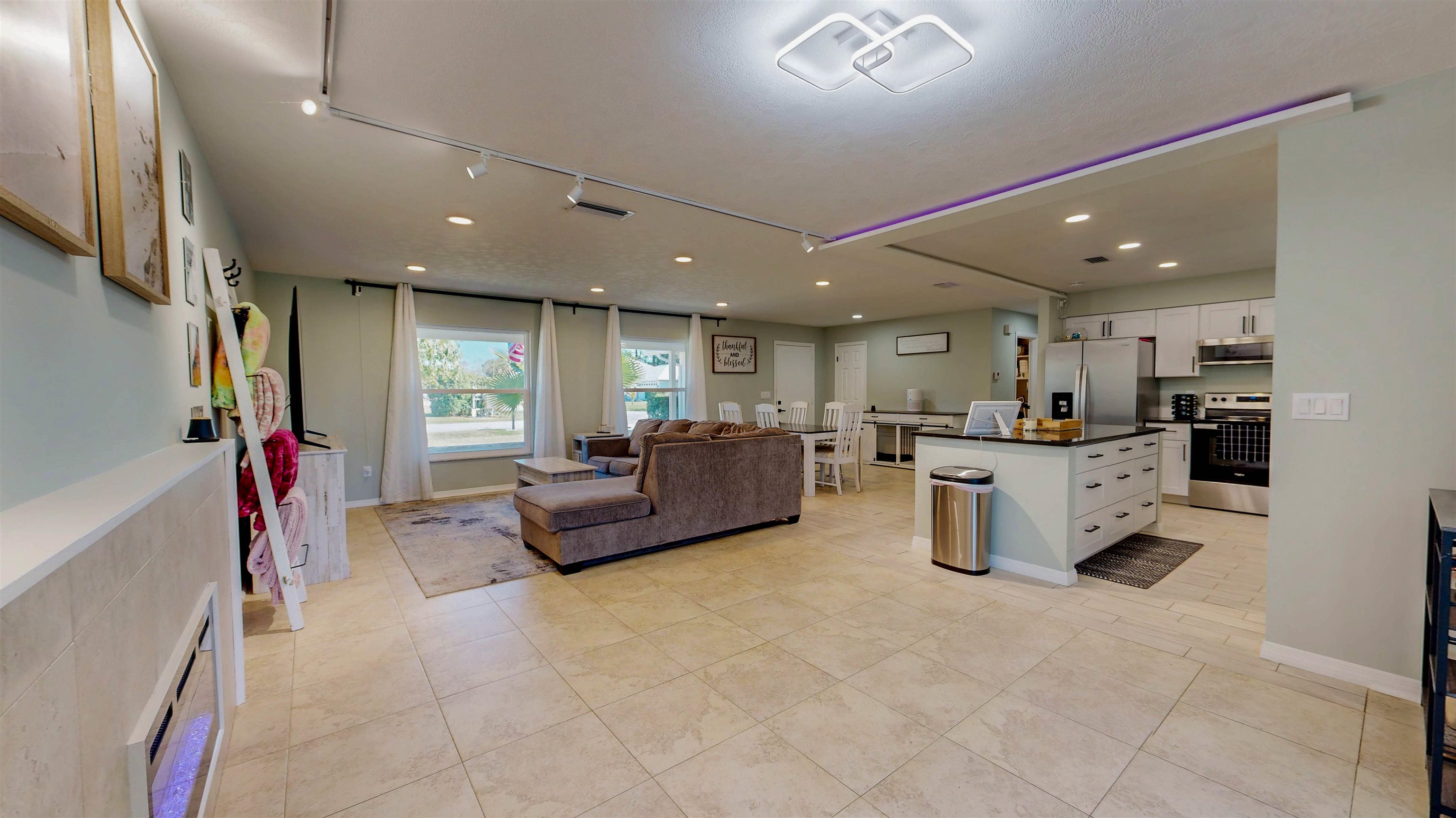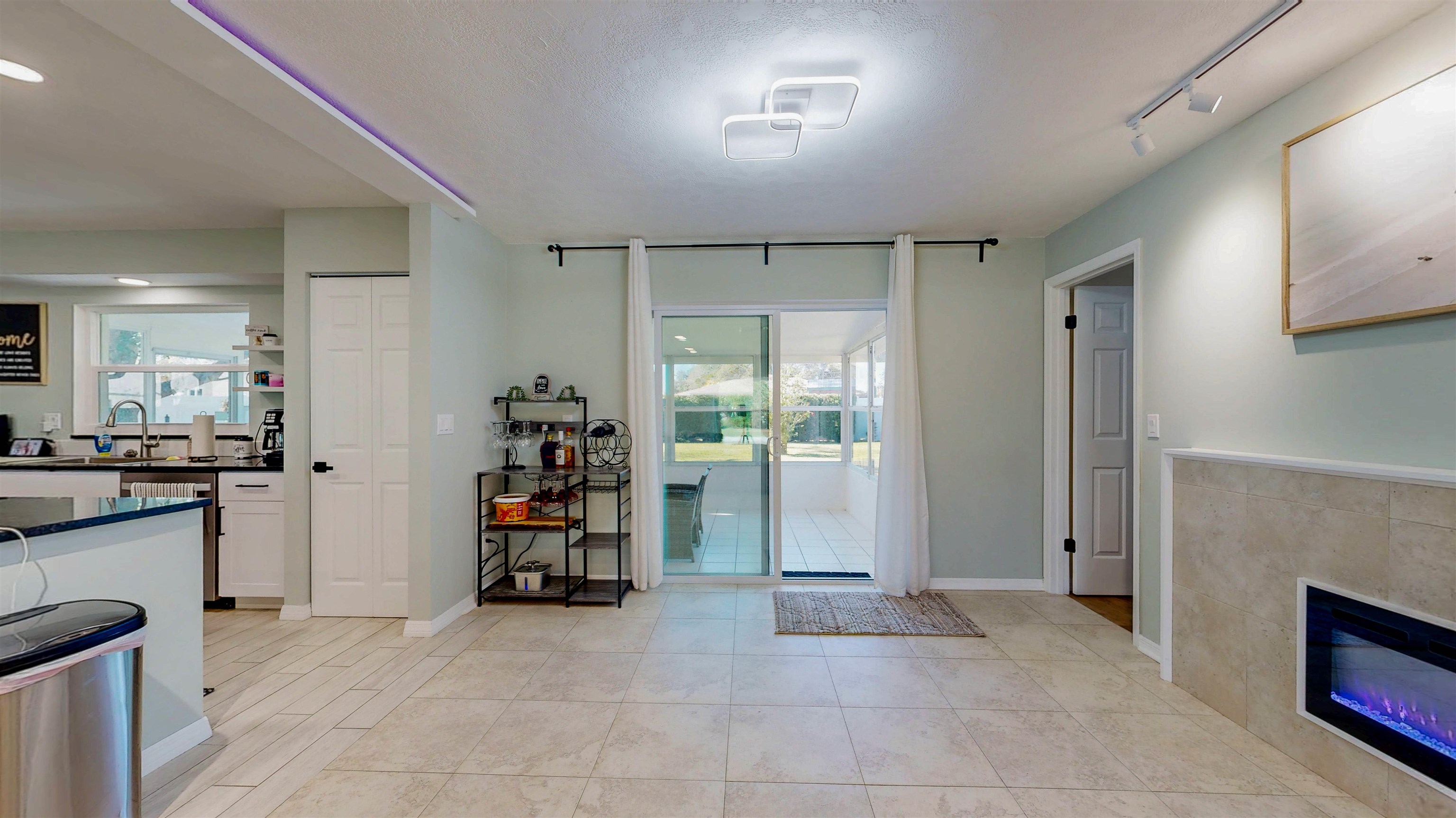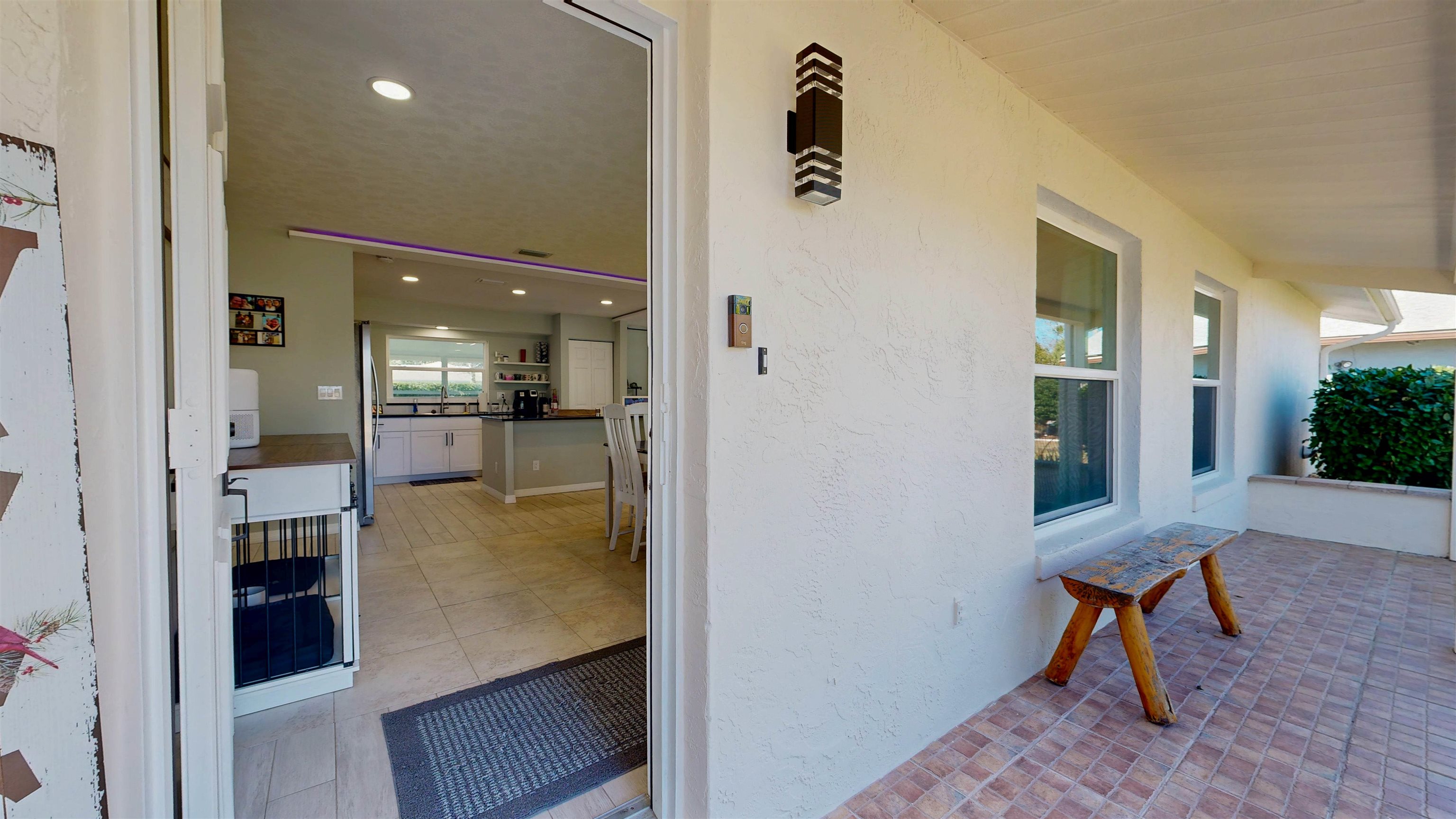 Welcome home to 142 Foster Lane, a beautifully remodeled concrete block residence offering modern comfort, quality construction, and true turnkey living just minutes from the beach. From the moment you arrive, you’ll notice the thoughtful upgrades and pride of ownership throughout. Step inside to an open-concept layout showcasing stunning tile flooring that flows seamlessly through the entire home, creating a polished, cohesive look that’s both stylish and durable. The fully renovated kitchen anchors the space with stainless steel appliances, a large center island, and breakfast bar—perfect for everyday living and entertaining alike. The main living area feels warm and inviting with a built-in electric fireplace and upgraded LED lighting that enhances the home’s bright, contemporary atmosphere. Fresh knockdown ceilings add a refined finish, while the split-bedroom layout offers privacy and functionality. The primary suite is a peaceful retreat with a spacious walk-in closet and a tastefully updated en-suite bath, while the guest bedroom is equally comfortable and well-appointed. Enjoy Florida living year-round in the expansive Florida room, ideal for relaxing, hosting guests, or creating your own private sanctuary. Outside, the oversized backyard offers exceptional privacy and is shaded by a stunning mature oak tree, complete with a fire pit for cool evenings under the stars. The covered front porch provides the perfect spot for morning coffee or unwinding at sunset. This home delivers peace of mind with major upgrades already completed, including a new roof in 2023 and hurricane impact windows and doors installed in 2024. Additional features include ceiling fans in the bedrooms, in-house laundry, and a utility sink in the garage for added convenience. Perfectly positioned just minutes from Jungle Hut Beach and close to Palm Coast’s major shopping, dining, and entertainment hubs, this location offers the best of coastal living and everyday convenience. With Holland Park, shopping centers, and main roadways all nearby, this home is ideally situated for an easy commute, weekend adventures, and everything in between. This is a true move-in ready, turnkey property with modern updates, solid block construction, and an unbeatable location. Don’t miss your chance to own a beautifully upgraded home near the beach