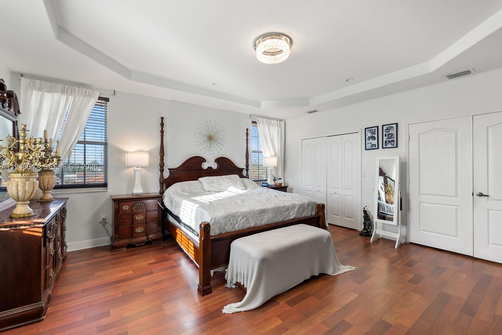 The primary suite is a true retreat, featuring his-and-hers private bathrooms and independent walk-in closets, offering ultimate comfort and functionality. All additional bedrooms are generously sized, each with access to a full bathroom—ideal for families or multi-generational living.