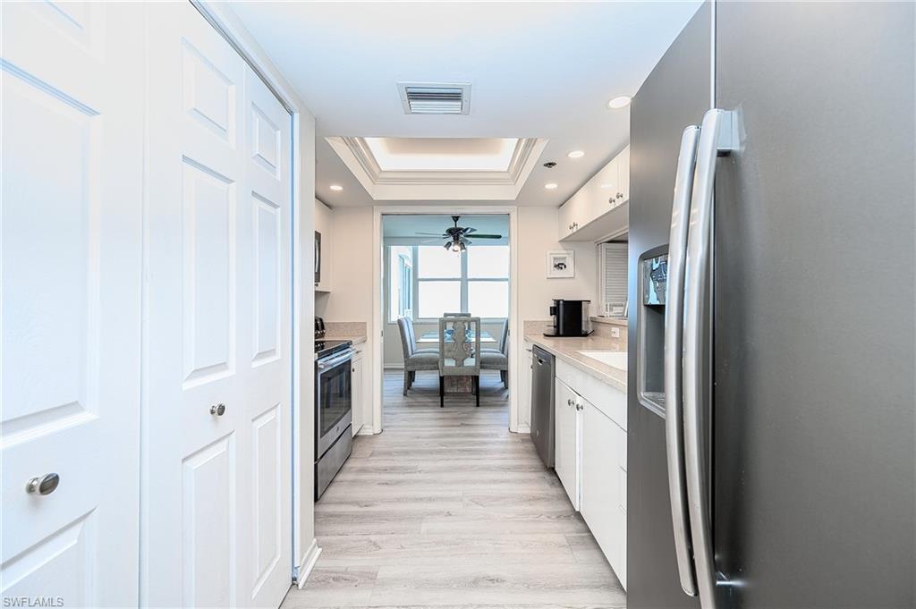 Condo1503 has also been renovated and remodeled and has 2 bedrooms plus a den with direct western views over the mangroves and the beautiful Gulf waters. The condo has a beautiful kitchen, new retractable window treatments, luxury vinyl flooring and numerous other features that add to the luxurious experience of living here. There is also a washer and dryer in the condo. The condo has been beautifully furnished so you can move right in and relax from day one.