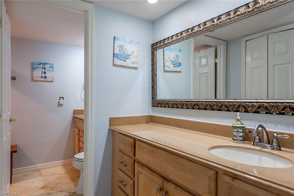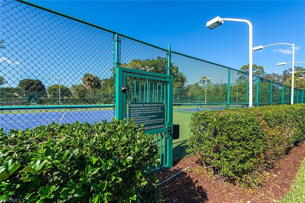 Experience relaxed coastal living in this updated Pinewoods condominium in the heart of North Naples. Offering approximately 1, 472 square feet, this two-bedroom, two-bath residence blends modern comfort with timeless appeal. The bright kitchen features a breakfast nook, generous pantry and dining area with a built-in bar. Enjoy marble flooring throughout, newer appliances and a new roof replaced about three years ago. The spacious living area opens to a glass-enclosed lanai overlooking a tranquil lake, ideal for morning coffee or evening sunsets. The primary suite includes a walk-in closet and lanai access, while the guest suite provides a separate retreat. Pinewoods residents enjoy two pools, a spa, and tennis and pickleball courts in a low-density, serene community. Ideal as a full-time residence or seasonal retreat, this home also offers strong rental potential. Minutes from beaches, fine dining and shopping, it captures the best of North Naples living.
