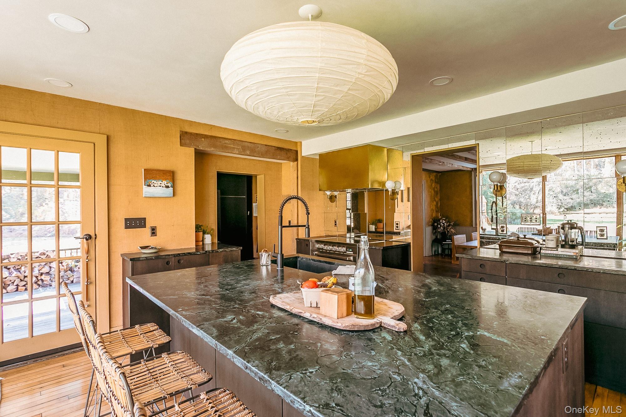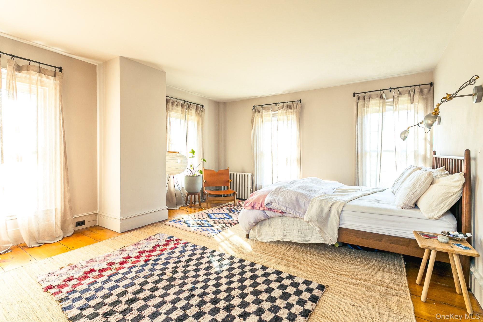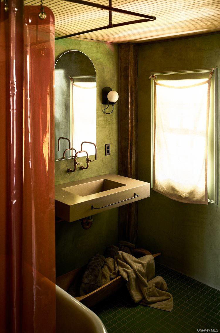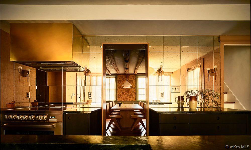 Perfectly sited on an historic River Road skirting the Hudson, the c. 1820 Garrett Sickles House was expertly treated to a four-year restoration completed in 2023. This well-proportioned center hall was reimagined in collaboration with famed interior designer Nick Spain, and the house has been impeccably renovated from stem to stern: boasting of timeless finishes, modern conveniences and a touch of Brutalism in its cast. Featured in the likes of Wallpaper* and Upstate House, this property drips with timeless cool: original details are found throughout, from lavishly wide floorboards and chestnut ceiling beams to original moldings and an early American fireplace. The first floor presents a newly-designed kitchen featuring a massive green soapstone island and striking floor-to-ceiling & wall-to-wall windows - creating a bucolic diorama with its natural setting of fields and trees. A professional grade French door refrigerator and separate butler’s pantry, Bosch dishwasher and oversized Verona stove make cooking and hosting next level. The dining room features a new wood-burning stove, foot-wide floorboards, beautiful wall coverings and dramatic lighting. The golden and earthy tones continue to the living room, where symmetrical design makes the working fireplace the focus and six-over-six windows allow the western sunset to bathe the space in natural light. Off the living room, the first floor bath nods to modernism with a custom concrete sink, green concrete-skimmed walls and imported handmade plumbing mixing with the original restored clawfoot tub. An adjacent home office sits on the southeast corner of the home with windows on both sides, making it the perfect place to focus and find inspiration. Upstairs, the color palette lightens. A guest bedroom with its own private staircase has two built-in beds, allowing guests autonomy and seclusion. The primary oversized bedroom holds large windows on three sides. Cross breezes keep the space cool in the summer, and the internal chimney warms the home on winter nights. A second bedroom adjoins the main bedroom, as does a custom bathroom featuring Waterworks fixtures, a deep soaking tub, a double sink and floor to ceiling handmade Spanish tiles. Outside, the original cedar facade of the home was hand restored and finished. An inviting porch on the front of the house and a larger one on the back makes for the perfect setting to read a great book or share in conversation with friends. The Garrett Sickles House is a true, move in-ready oasis featuring new household elements: two newly rebuilt & refined chimneys, roof, 1500 g concrete septic tank, leech field, plumbing, oil tank, 400amp electric system (ready for your EV), appliances, Generac backup power system, and custom Marvin Signature Ultimate windows. And the Stuyvesant location is equidistant from the center of bustling Hudson and charismatic Kinderhook. There is never a loss of things to do at the Garrett Sickles house. Warren Street in Hudson is a short drive and features a number of highly-regarded restaurants, art galleries and clothing stores. Bartlett house, Coopers Daughter, Art Omi, Kinderhook Farms, The Jack Shainman School, Klocke Estate and dozens of other attractions are all within the immediate area, ensuring that weekend getaways are always entertaining. The home is also available fully and partially furnished - pricing option available