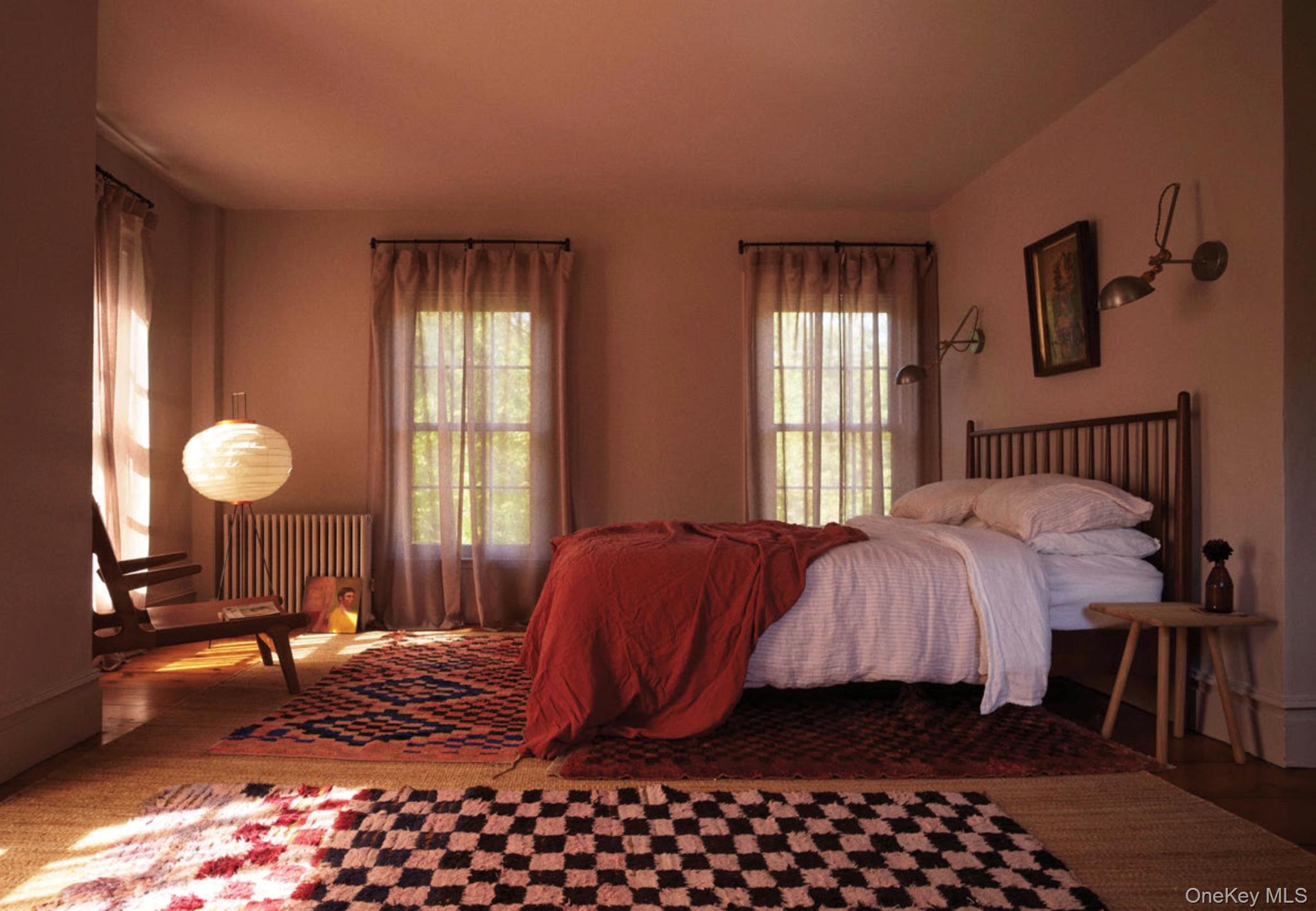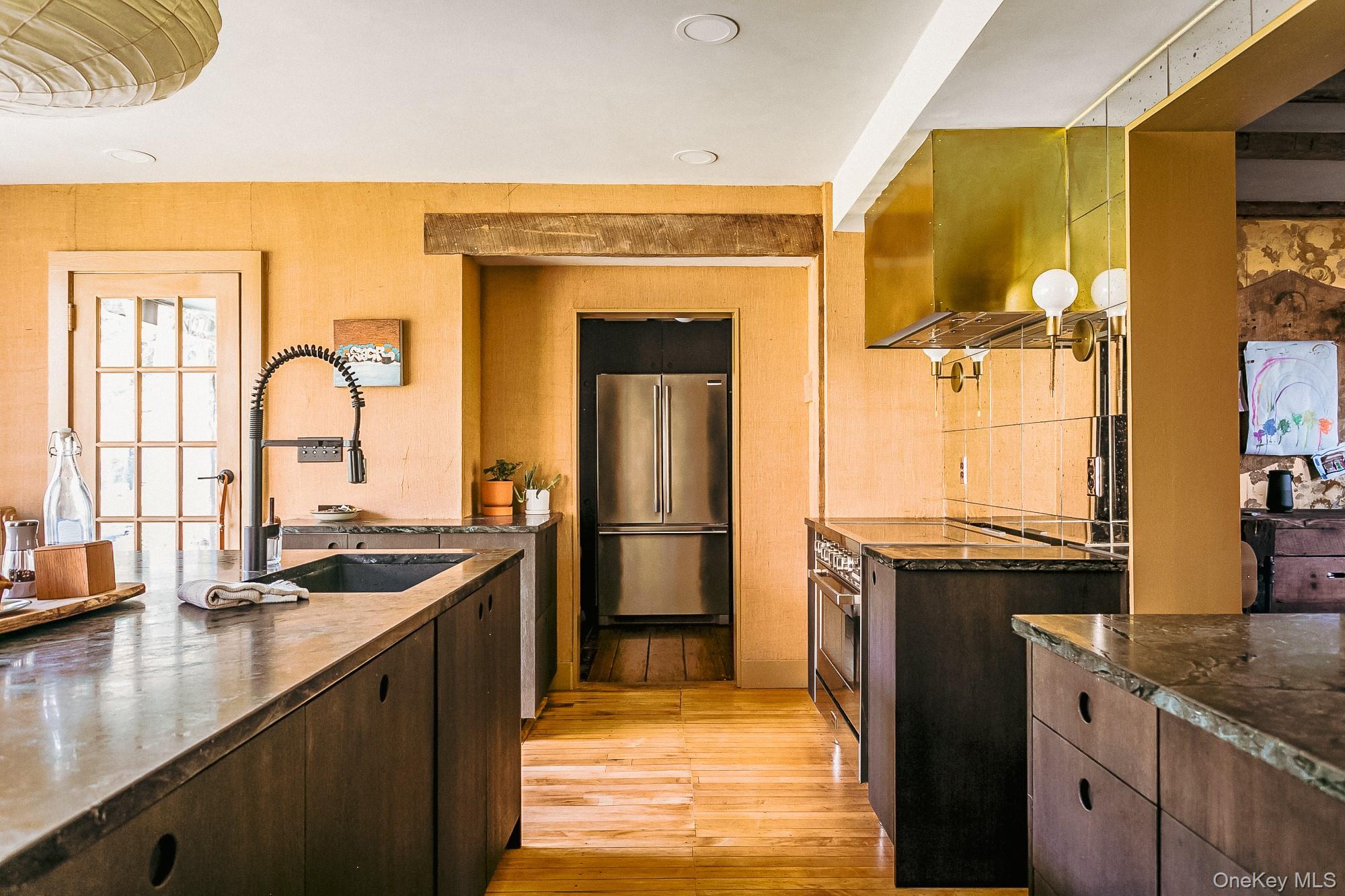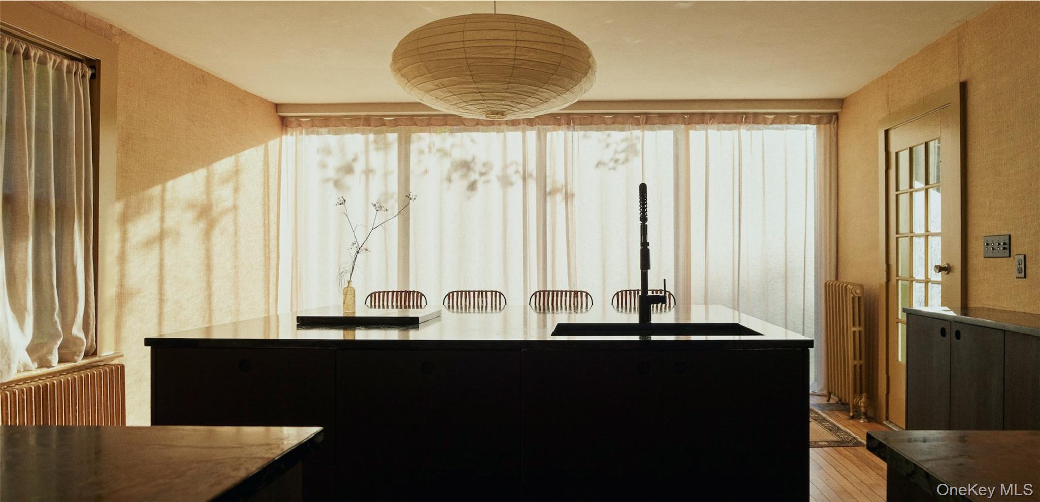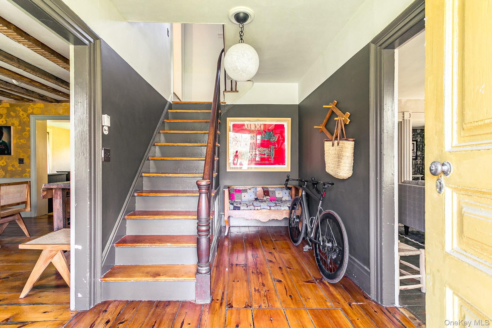 Perfectly sited on an historic River Road skirting the Hudson, the c. 1820 Garrett Sickles House was expertly treated to a four-year restoration completed in 2023. This well-proportioned center hall was reimagined in collaboration with famed interior designer Nick Spain, and the house has been impeccably renovated from stem to stern: boasting of timeless finishes, modern conveniences and a touch of Brutalism in its cast. Featured in the likes of Wallpaper* and Upstate House, this property drips with timeless cool: original details are found throughout, from lavishly wide floorboards and chestnut ceiling beams to original moldings and an early American fireplace. The first floor presents a newly-designed kitchen featuring a massive green soapstone island and striking floor-to-ceiling & wall-to-wall windows - creating a bucolic diorama with its natural setting of fields and trees. A professional grade French door refrigerator and separate butler’s pantry, Bosch dishwasher and oversized Verona stove make cooking and hosting next level. The dining room features a new wood-burning stove, foot-wide floorboards, beautiful wall coverings and dramatic lighting. The golden and earthy tones continue to the living room, where symmetrical design makes the working fireplace the focus and six-over-six windows allow the western sunset to bathe the space in natural light. Off the living room, the first floor bath nods to modernism with a custom concrete sink, green concrete-skimmed walls and imported handmade plumbing mixing with the original restored clawfoot tub. An adjacent home office sits on the southeast corner of the home with windows on both sides, making it the perfect place to focus and find inspiration. Upstairs, the color palette lightens. A guest bedroom with its own private staircase has two built-in beds, allowing guests autonomy and seclusion. The primary oversized bedroom holds large windows on three sides. Cross breezes keep the space cool in the summer, and the internal chimney warms the home on winter nights. A second bedroom adjoins the main bedroom, as does a custom bathroom featuring Waterworks fixtures, a deep soaking tub, a double sink and floor to ceiling handmade Spanish tiles. Outside, the original cedar facade of the home was hand restored and finished. An inviting porch on the front of the house and a larger one on the back makes for the perfect setting to read a great book or share in conversation with friends. The Garrett Sickles House is a true, move in-ready oasis featuring new household elements: two newly rebuilt & refined chimneys, roof, 1500 g concrete septic tank, leech field, plumbing, oil tank, 400amp electric system (ready for your EV), appliances, Generac backup power system, and custom Marvin Signature Ultimate windows. And the Stuyvesant location is equidistant from the center of bustling Hudson and charismatic Kinderhook. There is never a loss of things to do at the Garrett Sickles house. Warren Street in Hudson is a short drive and features a number of highly-regarded restaurants, art galleries and clothing stores. Bartlett house, Coopers Daughter, Art Omi, Kinderhook Farms, The Jack Shainman School, Klocke Estate and dozens of other attractions are all within the immediate area, ensuring that weekend getaways are always entertaining. The home is also available fully and partially furnished - pricing option available