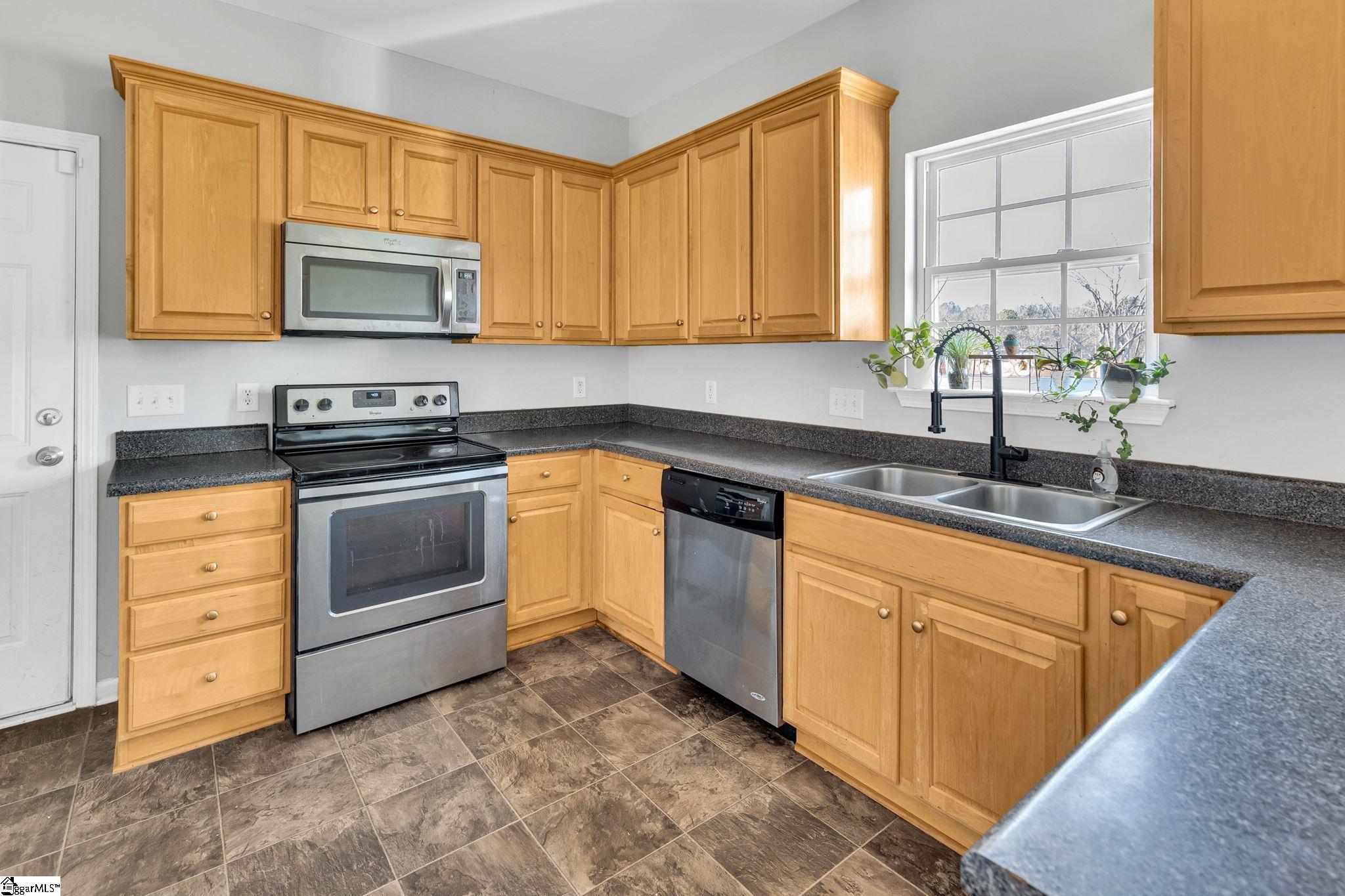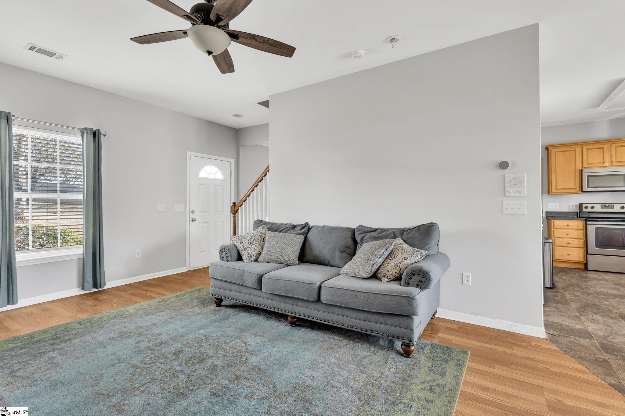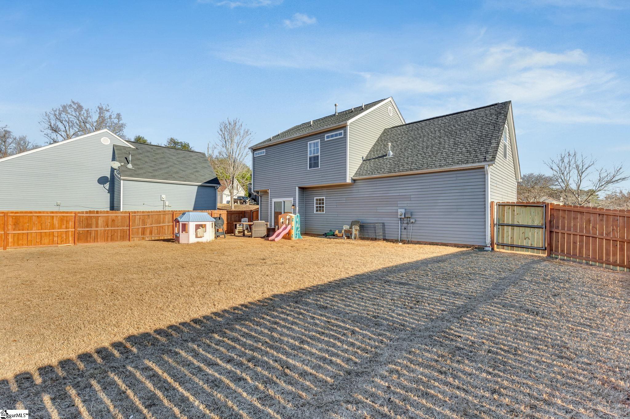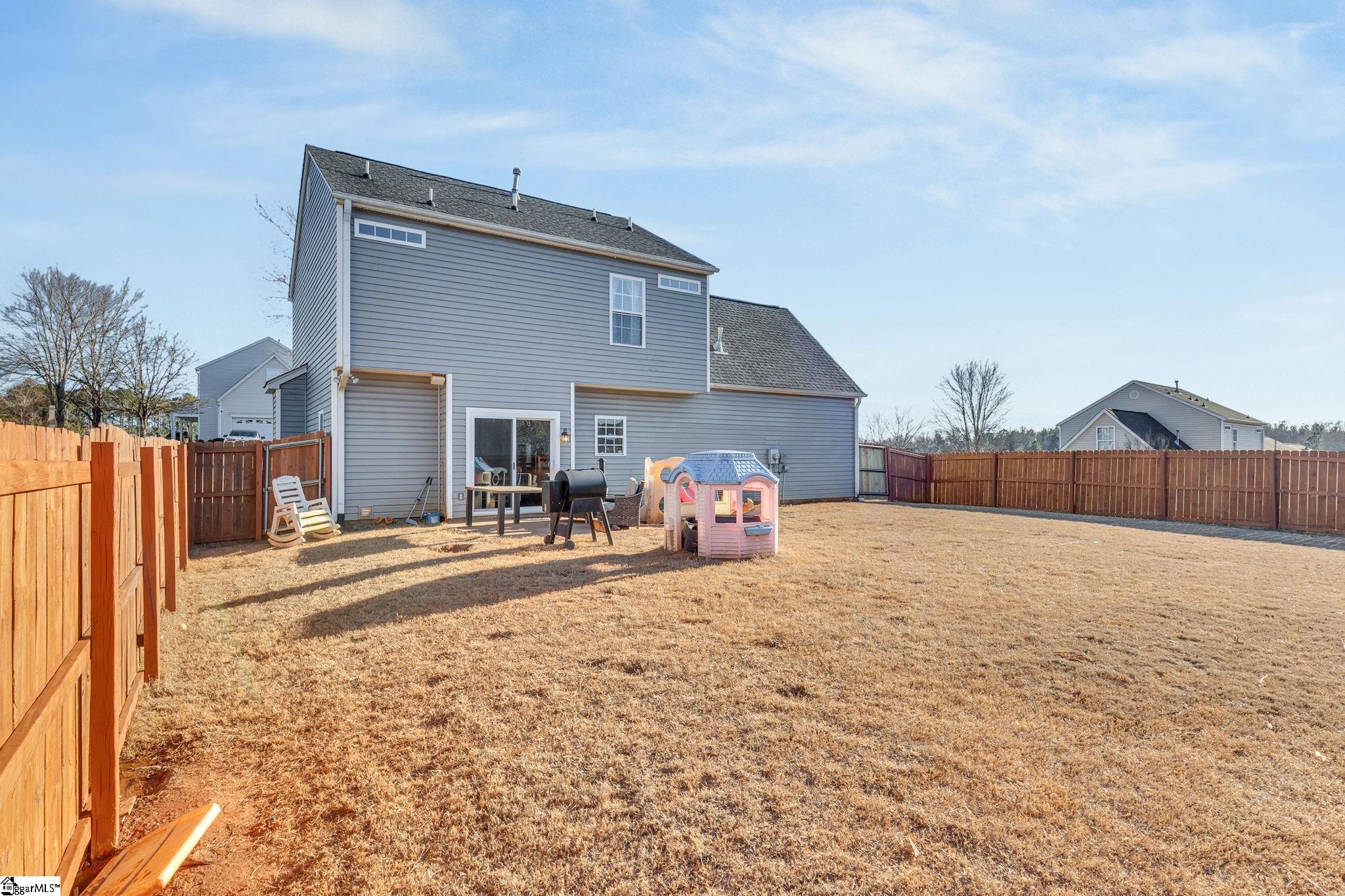 Welcome home to this well-maintained 3 bedroom plus bonus room residence offering 2 full baths and 1 half bath, perfectly designed for comfort and convenience. Major updates provide peace of mind, including a newer HVAC system, roof, and hot water heater. Enjoy everyday living and entertaining with a gas log fireplace, an intercom system, and built-in speakers throughout the home for seamless music and communication. The bathrooms have been refreshed with new light fixtures and mirrors, adding a modern touch. Step outside to a fenced backyard, ideal for pets, play, or relaxing evenings. Ideally located with quick access to I-85 and I-26, and just minutes from abundant shopping and dining. Target is approximately 5 minutes away! Community amenities include a pool and playground, conveniently accessible via the neighborhood walking trail and shared with The Oaks at Rock Springs. This home offers the perfect blend of updates, amenities, and location. Don’t miss it!