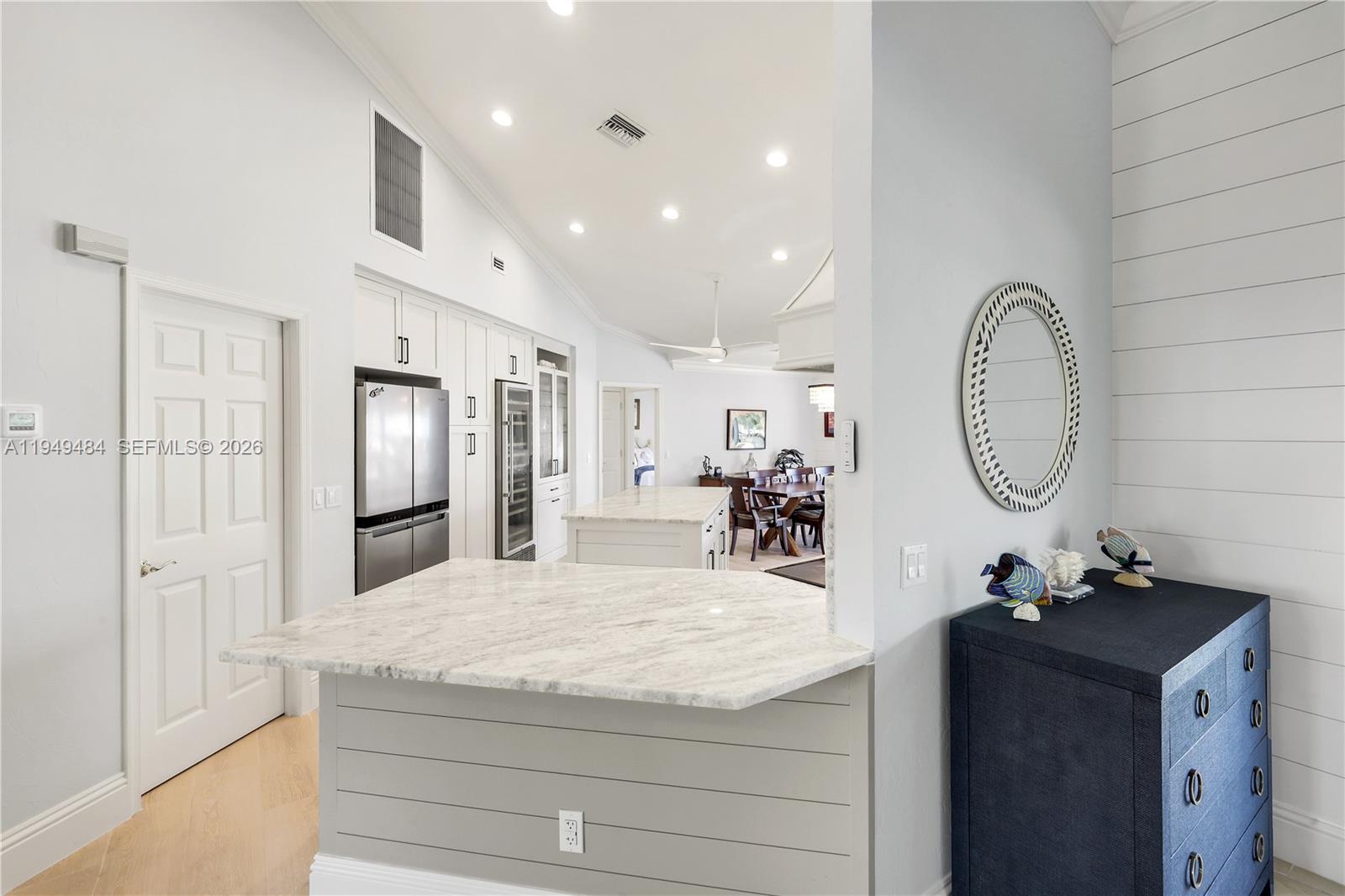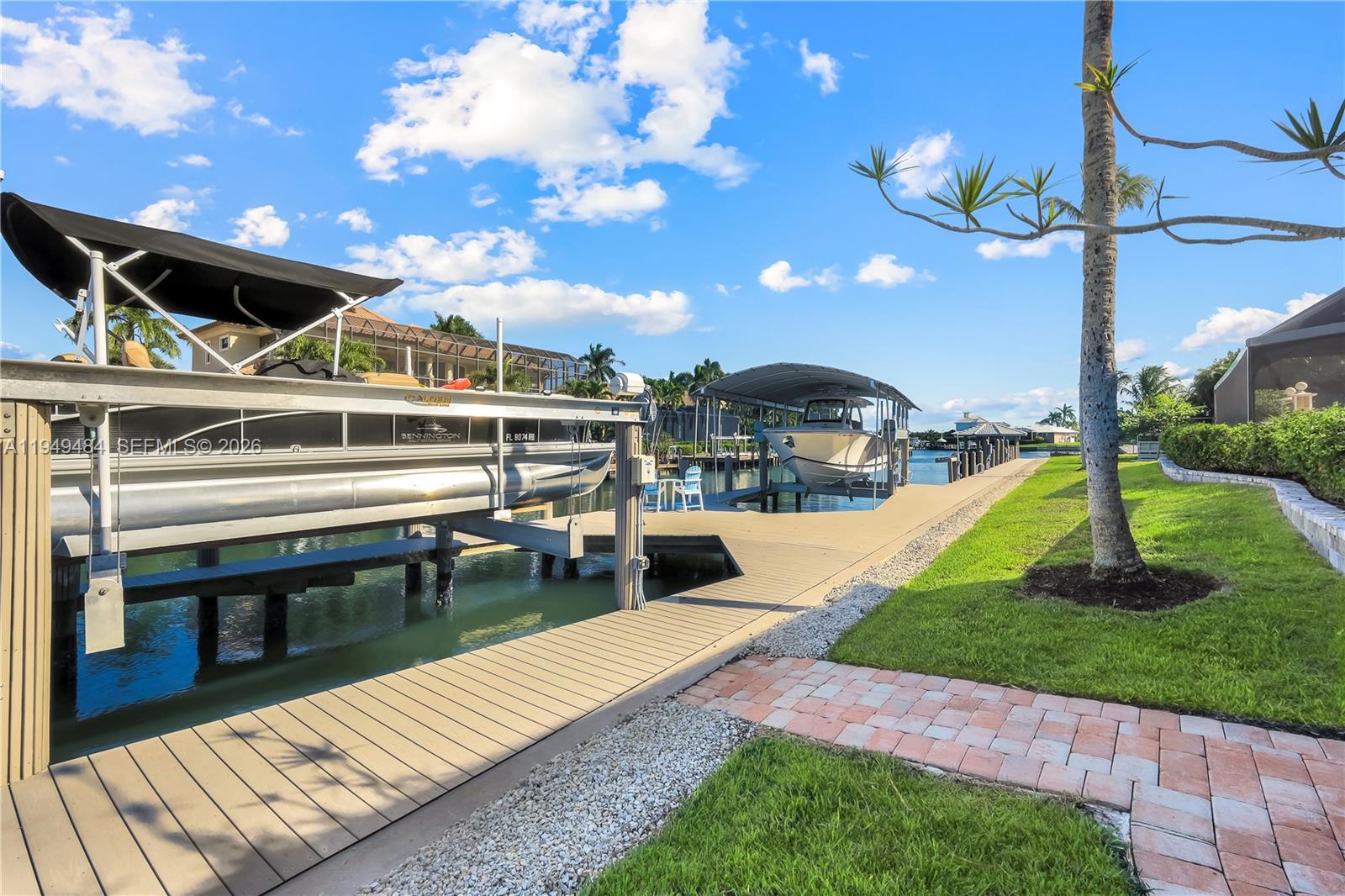 Experience premier waterfront living with this distinguished 5-bedroom, 4-bath residence, strategically situated on nearly half an acre with direct Gulf of Mexico access. This home is a boater's dream, featuring two advanced boat lifts—a 20, 000 lb and a 27, 000 lb lift, the latter protected by a canopy to preserve your vessel's condition. The property boasts an impressive 276 feet of seawall, complete with a private gazebo for enjoying stunning sunsets and bay views. The recent remodel has transformed this luxurious abode, seamlessly blending contemporary elegance with comfort. High-end finishes and thoughtful design elements are showcased throughout, including new plank flooring and a beautifully remodeled kitchen, equipped with a large wine cooler. The expansive backyard offers numerous opportunities for relaxation, from the glider swing to dining while surrounded by nature's beauty and fruit trees. The home has an added wheelchair lift in the third-car garage opening into the master bedroom. Venture outside to your private oasis, where a spectacular, heated pool with a spa offers the ultimate retreat for relaxation or entertaining. The meticulously landscaped grounds enhance the seamless connection between indoor and outdoor living spaces. There is so much potential on this property! Conveniently located near shopping centers, grocery stores, the beach, and easy island egress, this rare gem offers a harmonious blend of luxury, convenience, and natural beauty.