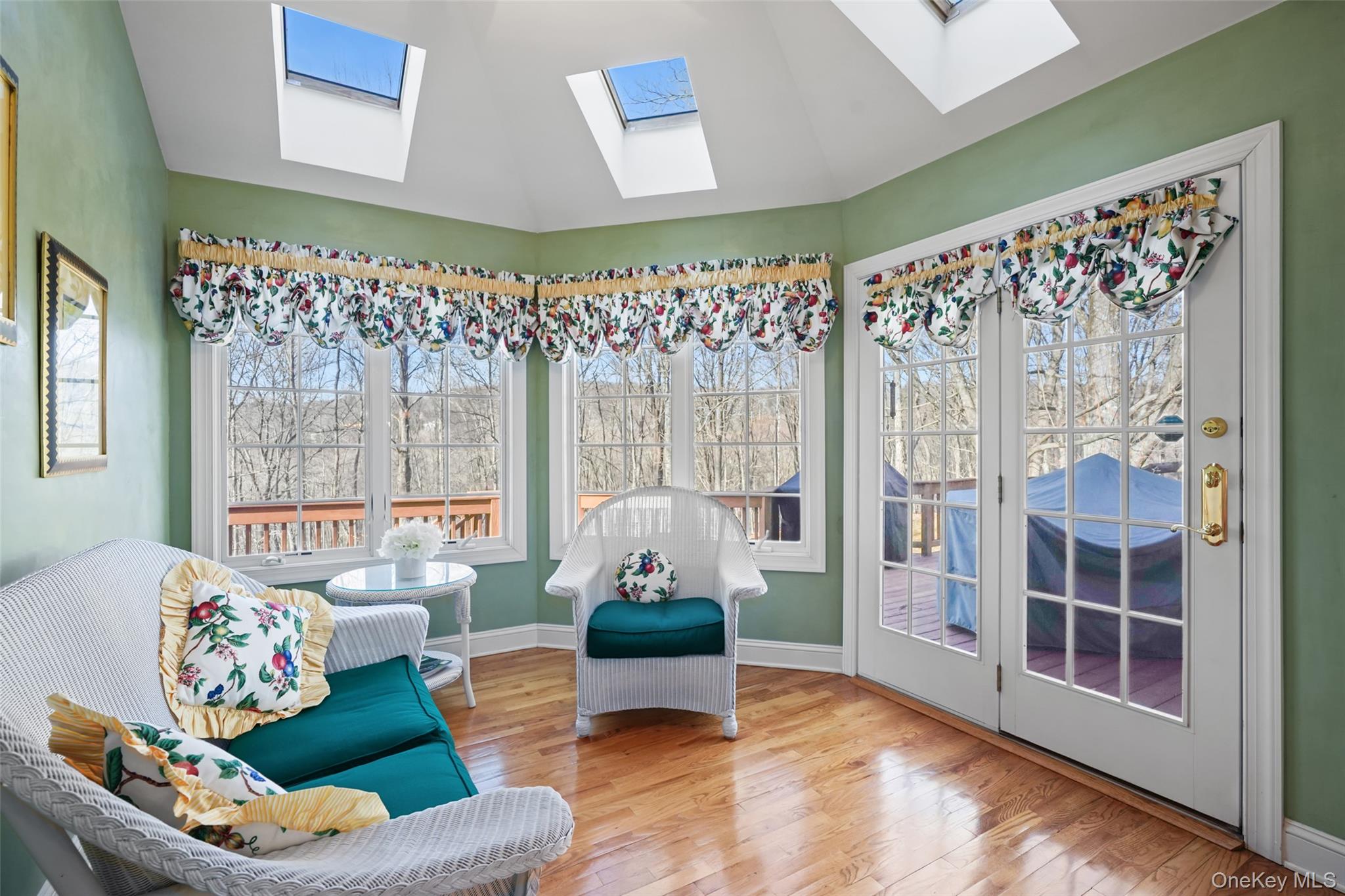 Set on a beautiful lot at the end of a quiet cul-de-sac, this exceptional residence offers a rare blend of privacy, space, and breathtaking sunset views. The expansive property provides ample room for outdoor living and the potential to add a pool, creating a true resort-like setting at home. An oversized deck and patio with fire pit invite effortless entertaining or peaceful relaxation while enjoying the surrounding natural beauty. Inside, the home is thoughtfully designed for both refined living and everyday comfort. Sunlight fills the space through skylights throughout the house. An all-masonry fireplace and chimney add timeless charm and warmth, anchoring the main living areas. The morning room offers a serene spot to start the day, surrounded by light and views of the private backyard. The finished walk-out lower level adds exceptional versatility, featuring a kitchenette, full bath, bedroom, and a large living or play area, ideal for guests, extended family, or a flexible use as a home office, gym, or media space. Additional unfinished lower level space and an oversized garage provide generous storage options. Practical luxury is seamlessly integrated with a whole-house automatic generator powered by a buried 450 gal. propane tank, ensuring peace of mind in any season. All windows and skylights have invisible film to dramatically reduce heat flow and minimize heating/cooling costs, as well as block 99% of UV to significantly reduce fading of furniture. New garage doors, and new roof installed in October 2023 further adds lasting value and confidence in the home's condition. Perfectly located, this home offers an easy commute to New York City while remaining close to shopping, top-rated schools, and a vibrant selection of restaurants. Enhancing the lifestyle even further, are the development's premier amenities, including a heated pool with lifeguard, tennis courts, pickleball court, and playground. Together, the home and community amenities create an unparalleled living experience, where luxurious features, convenience, and resort-style comforts come together to make every day feel like a getaway, all year long. This is rare opportunity to own a luxurious, well-appointed home that delivers privacy, comfort, and connectivity in an exceptional setting.