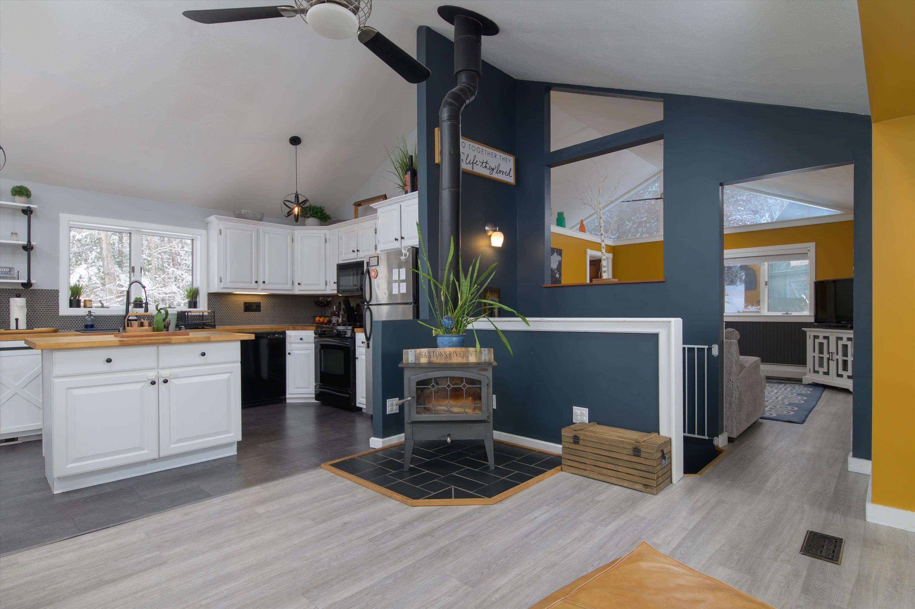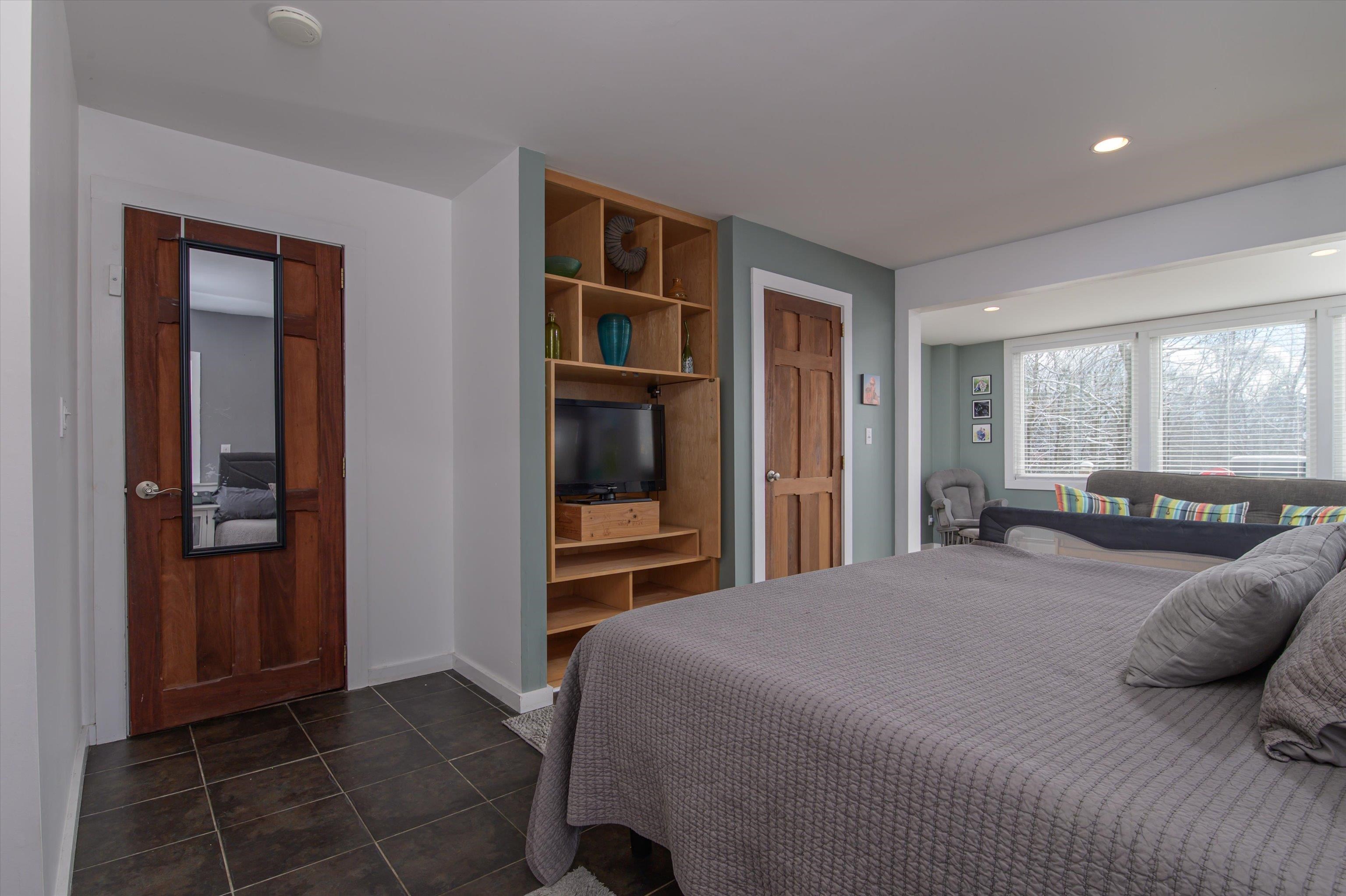 Begin your journey by crossing a classic covered bridge and traveling along a quiet country road, leading you to this secluded hilltop retreat. Nestled on 37 acres of pristine woodlands with trails, the property offers a striking combination of natural beauty and privacy. The residence seamlessly blends contemporary design with country charm. A welcoming screened porch opens into a spacious, open-concept living, dining, and kitchen area that is filled with natural light, thanks to an abundance of windows showcasing scenic, ever-changing views. Inside, the home is further elevated by high ceilings, updated kitchen, custom mahogany doors and spacious bathroom with a soaking tub. The lower level features a generously sized master bedroom, complete with office space and direct access to a captivating hot tub and patio area. Additional amenities include a full bath with laundry, a cozy bedroom, and a utility room. The spacious, heated, two-car garage offers ample work area and storage space on the second floor. The property enjoys a convenient location within easy reach of Putney, Walpole, Keene, and Interstate 91, making it an ideal retreat with accessibility to nearby towns.