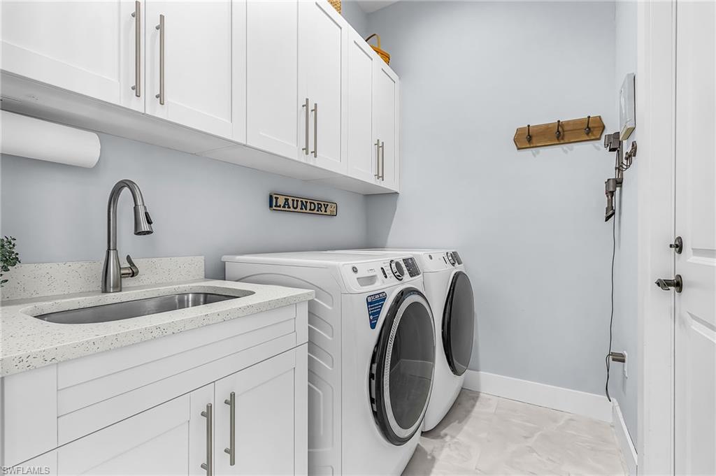 Featuring impact windows and doors, a whole-house reverse osmosis system, fenced and roofed mechanical area for pool and reverse osmosis equipment, extra-height RV or boat carport with 50-amp power pedestal and reverse osmosis water supply, Google Nest doorbell and security cameras with integrated lighting, and an oversized garage with R-30 ceiling insulation and upgraded exterior garage door insulation.