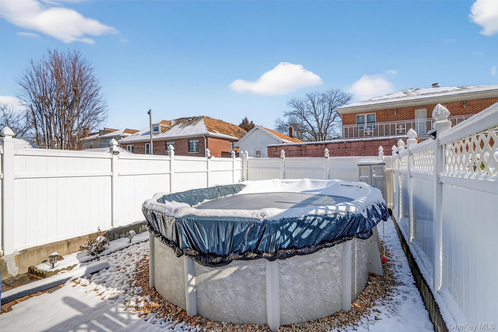 BRICK semi detached single family home in Pelham Gardens featuring 3 bedrooms, 2. 5 baths with a finished basement, pool, patio, garage, hardwood floors, natural gas and driveway. Roof is approximately 5 years young and boiler/hot water heater approximately 3 years old. Close to transportation and shops.