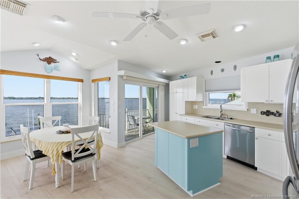 Waterfront living at its best! This fully furnished 2BD (potential 3), 3BA home offers 45 ft of direct Intracoastal frontage with a brand-new 90 ft dock featuring deep-water access, composite decking, and a 24, 000 lb boat lift—perfect for serious boaters. Two nearby inlets provide quick access to the open ocean. Enjoy sweeping water views and unforgettable sunsets from your backyard. Inside, you’ll find new LVP flooring, a new standing seam metal roof, SS appliances, and partial impact glass. The lower level is configured as a private guest suite with kitchenette and can easily convert to a 3rd bedroom. A golf cart pad and 2 covered parking spots adds everyday convenience. Ideal as a full-time residence, vacation getaway, or rental. Life on Nettles Island feels like a permanent vacation, with resort-style amenities including 2 heated pools, tennis, pickleball, miniature golf, on-island grocery store, riverside restaurant, and private beach club—everything you need, right at home.
