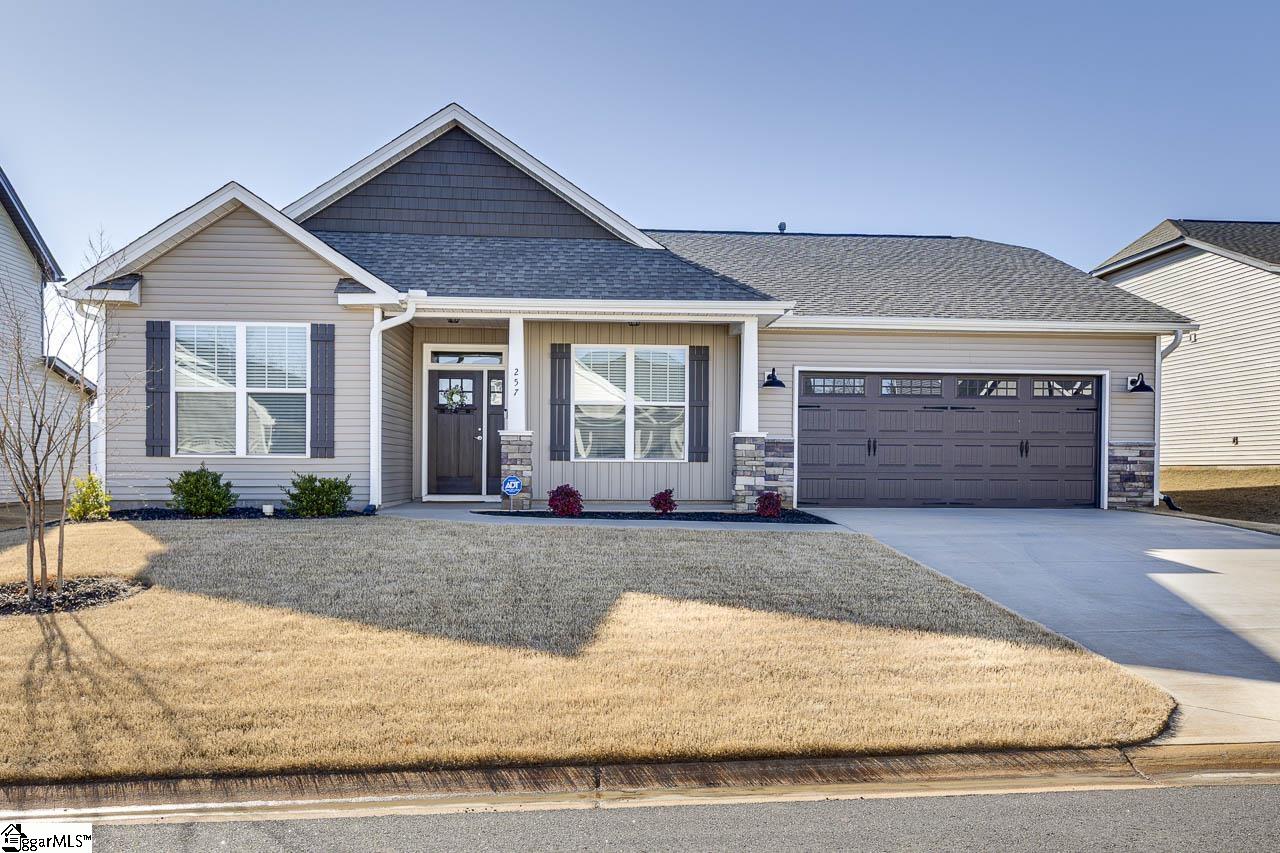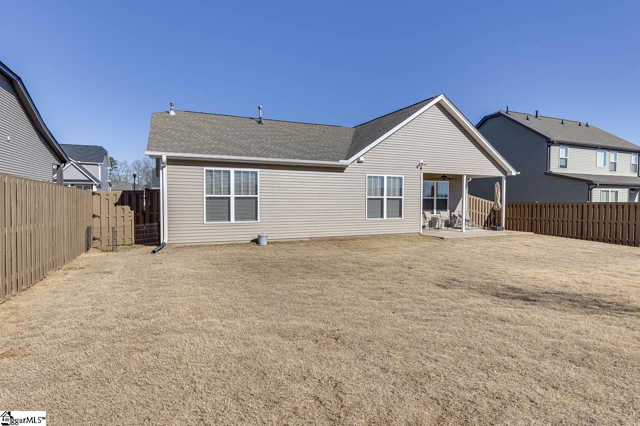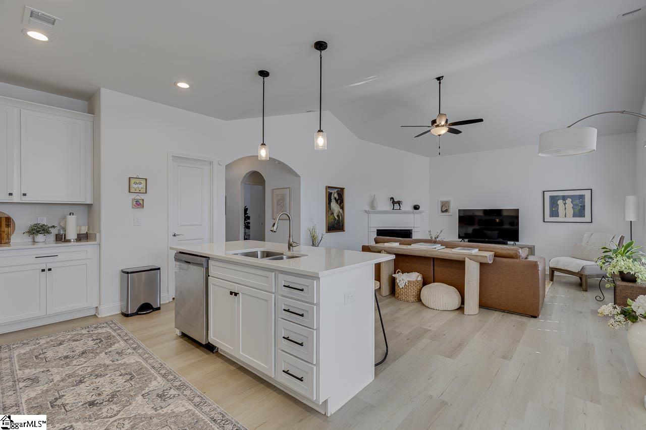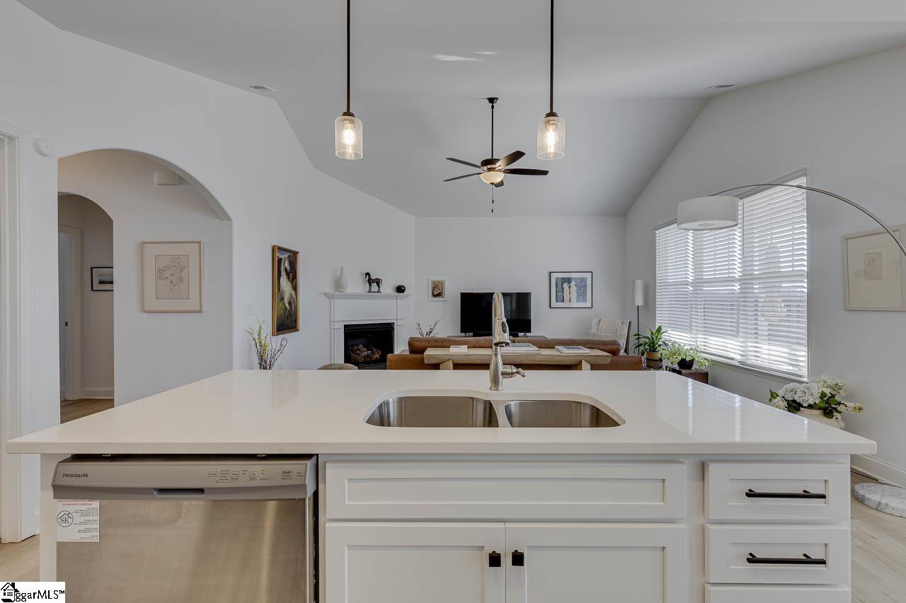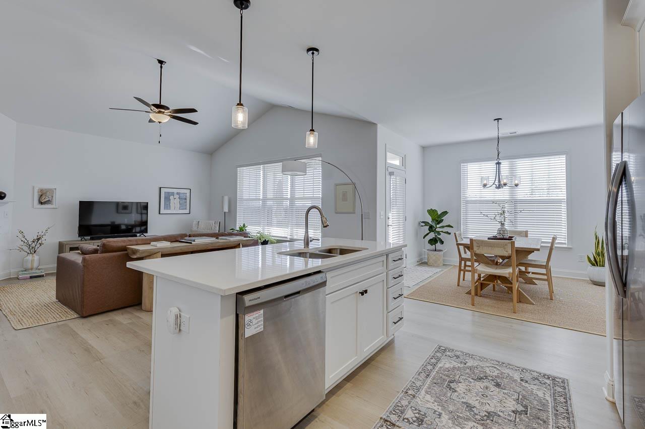 With 1, 580 square feet this home has clean lines, thoughtful design, and a neutral palette defines this three bedroom, two bath home with a two car attached garage, set in a convenient up-and-coming area near I-85 and Lakeside Park. Step inside to a bright, welcoming foyer that opens into a spacious family room where a cathedral ceiling and fireplace create a relaxed gathering space for evenings at home or casual entertaining. Light ash-colored luxury vinyl flooring flows throughout the main living areas, making each room feel fresh. The open sightlines between the living room, kitchen, and dining area make everyday routines feel natural, while thoughtful separation makes each space still feel distinct. The kitchen serves as the heart of the home with quartz countertops, soft close cabinetry, a generous island, and modern light fixtures that add a refined, contemporary edge. Just beyond, the covered back patio invites morning coffee, weekend grilling, and outdoor downtime without leaving home. The primary suite is the perfect place to unwind; featuring a walk-in closet and a well-appointed ensuite bath with double sink vanity, soaker tub, and walk-in shower. The split bedroom layout places the additional two bedrooms and second full bath on the opposite side of the home, creating flexibility for added living space, guests, or work-from-home needs. The laundry room sits conveniently off the garage and doubles as a functional mudroom, while a utility sink in the garage adds practical everyday convenience. Move-in ready and thoughtfully designed, this home feels both comfortable and connected. Don't miss out on your chance to tour this charming abode. Schedule your showing today!
