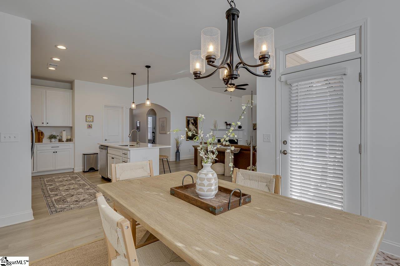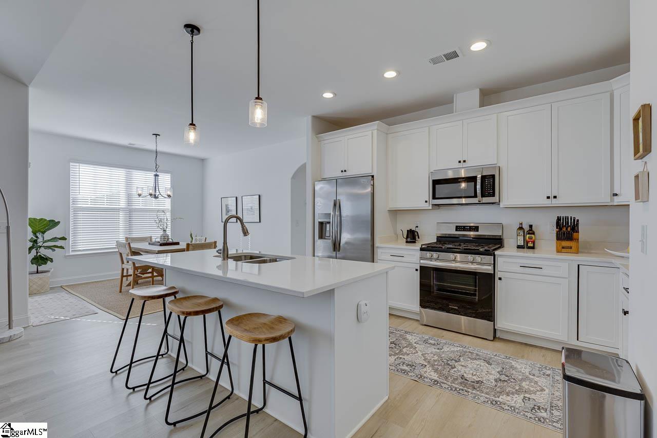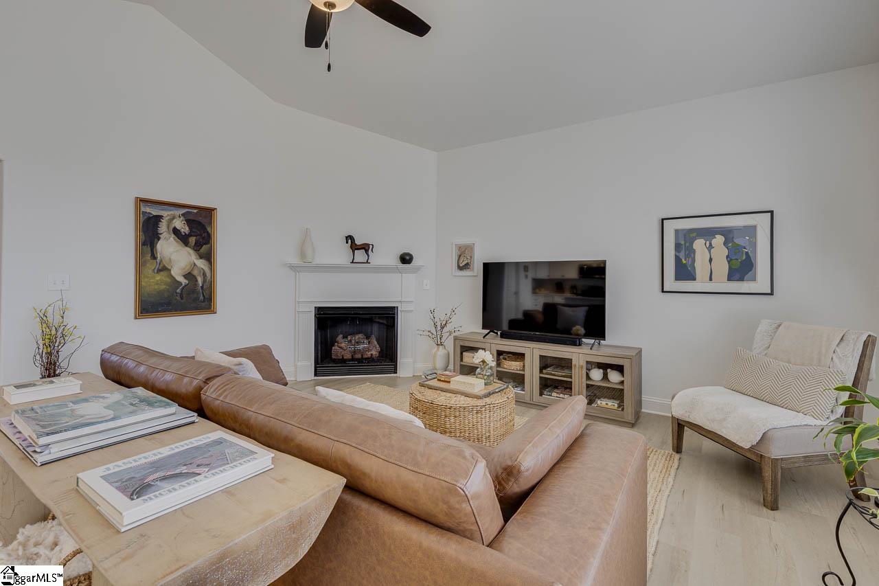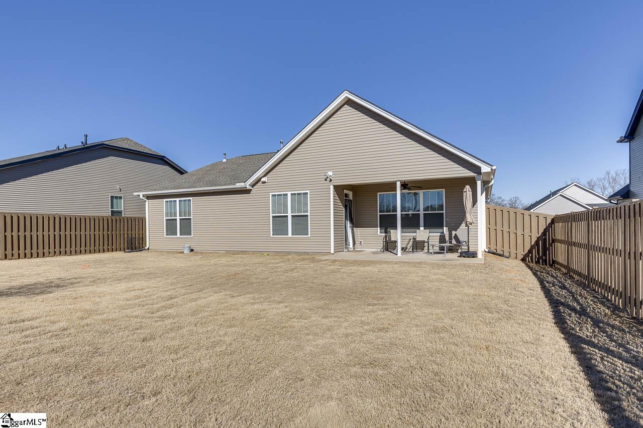 With 1, 580 square feet this home has clean lines, thoughtful design, and a neutral palette defines this three bedroom, two bath home with a two car attached garage, set in a convenient up-and-coming area near I-85 and Lakeside Park. Step inside to a bright, welcoming foyer that opens into a spacious family room where a cathedral ceiling and fireplace create a relaxed gathering space for evenings at home or casual entertaining. Light ash-colored luxury vinyl flooring flows throughout the main living areas, making each room feel fresh. The open sightlines between the living room, kitchen, and dining area make everyday routines feel natural, while thoughtful separation makes each space still feel distinct. The kitchen serves as the heart of the home with quartz countertops, soft close cabinetry, a generous island, and modern light fixtures that add a refined, contemporary edge. Just beyond, the covered back patio invites morning coffee, weekend grilling, and outdoor downtime without leaving home. The primary suite is the perfect place to unwind; featuring a walk-in closet and a well-appointed ensuite bath with double sink vanity, soaker tub, and walk-in shower. The split bedroom layout places the additional two bedrooms and second full bath on the opposite side of the home, creating flexibility for added living space, guests, or work-from-home needs. The laundry room sits conveniently off the garage and doubles as a functional mudroom, while a utility sink in the garage adds practical everyday convenience. Move-in ready and thoughtfully designed, this home feels both comfortable and connected. Don't miss out on your chance to tour this charming abode. Schedule your showing today!
