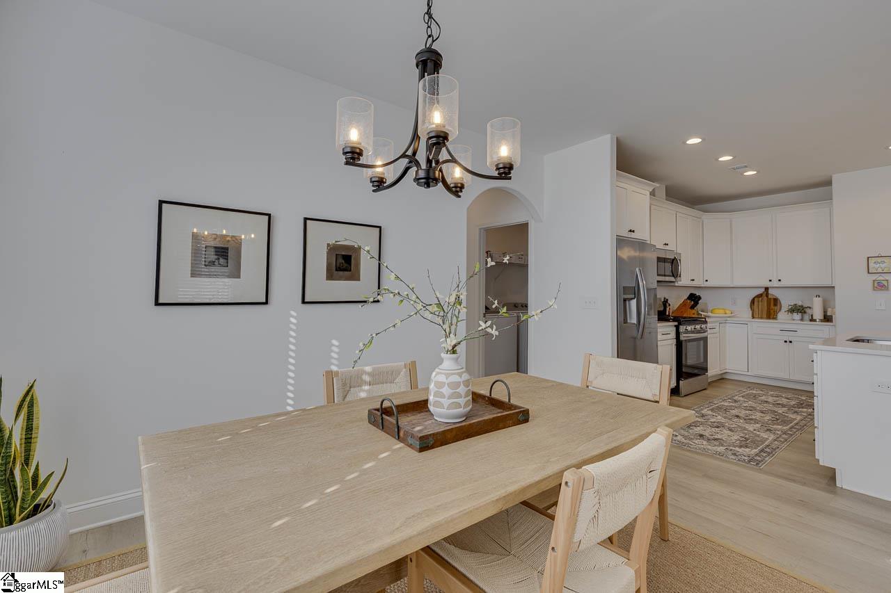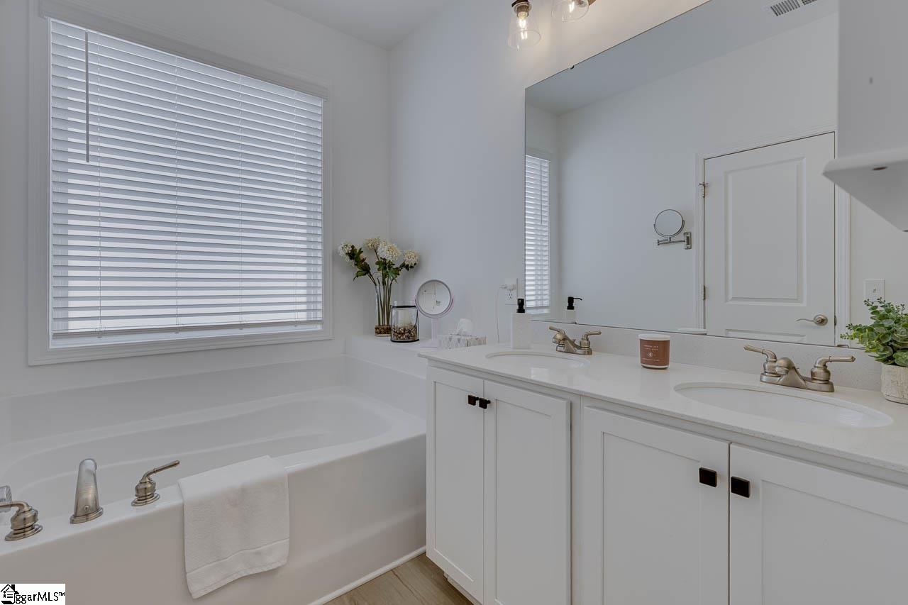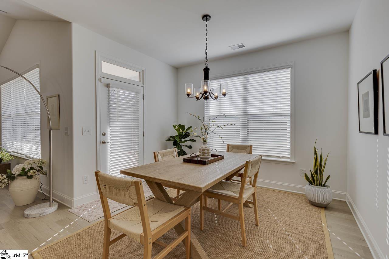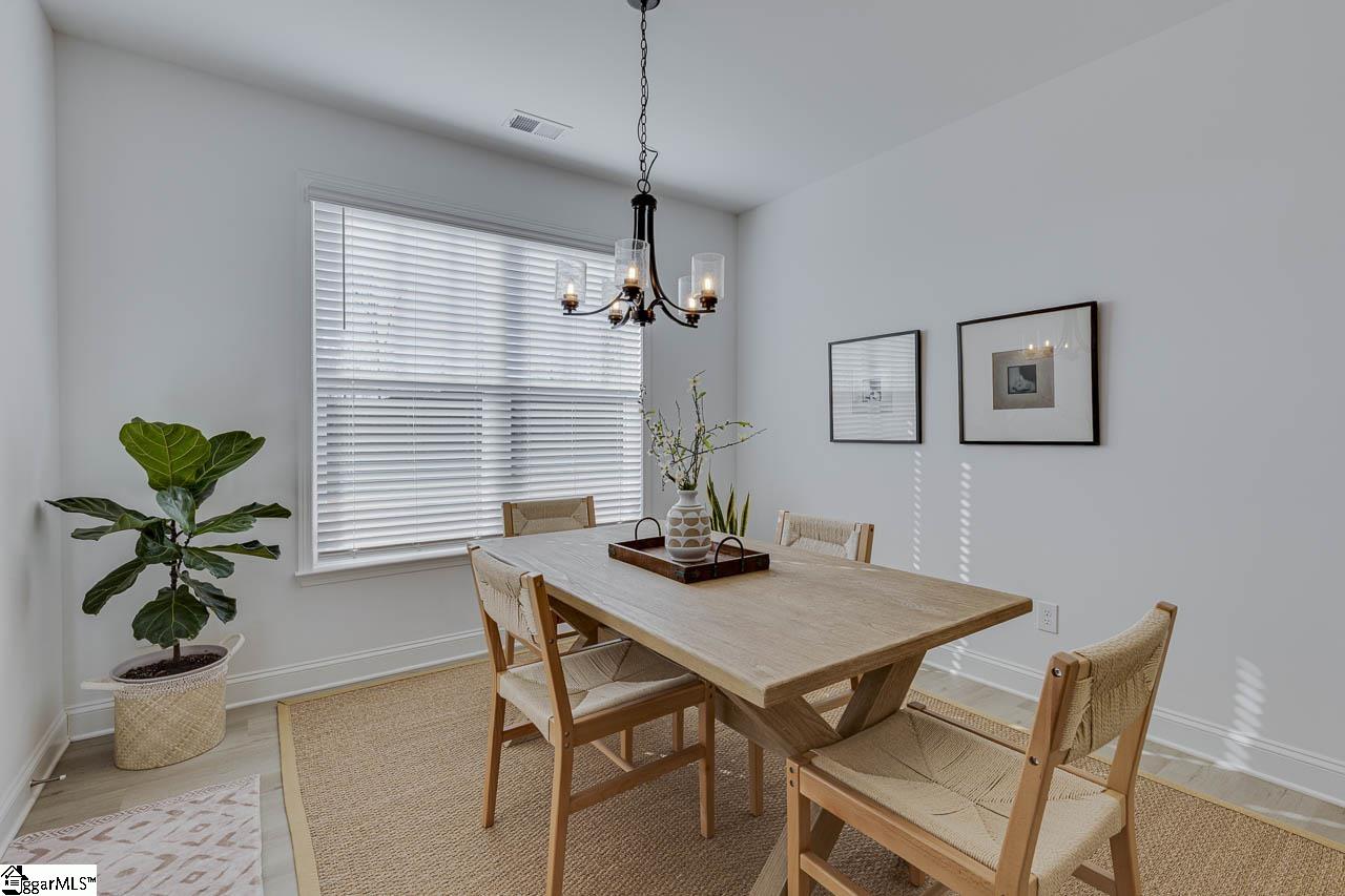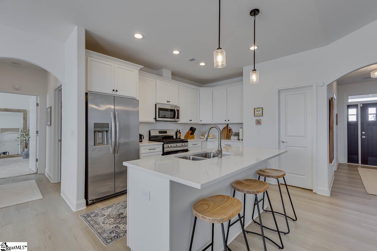 With 1, 580 square feet this home has clean lines, thoughtful design, and a neutral palette defines this three bedroom, two bath home with a two car attached garage, set in a convenient up-and-coming area near I-85 and Lakeside Park. Step inside to a bright, welcoming foyer that opens into a spacious family room where a cathedral ceiling and fireplace create a relaxed gathering space for evenings at home or casual entertaining. Light ash-colored luxury vinyl flooring flows throughout the main living areas, making each room feel fresh. The open sightlines between the living room, kitchen, and dining area make everyday routines feel natural, while thoughtful separation makes each space still feel distinct. The kitchen serves as the heart of the home with quartz countertops, soft close cabinetry, a generous island, and modern light fixtures that add a refined, contemporary edge. Just beyond, the covered back patio invites morning coffee, weekend grilling, and outdoor downtime without leaving home. The primary suite is the perfect place to unwind; featuring a walk-in closet and a well-appointed ensuite bath with double sink vanity, soaker tub, and walk-in shower. The split bedroom layout places the additional two bedrooms and second full bath on the opposite side of the home, creating flexibility for added living space, guests, or work-from-home needs. The laundry room sits conveniently off the garage and doubles as a functional mudroom, while a utility sink in the garage adds practical everyday convenience. Move-in ready and thoughtfully designed, this home feels both comfortable and connected. Don't miss out on your chance to tour this charming abode. Schedule your showing today!