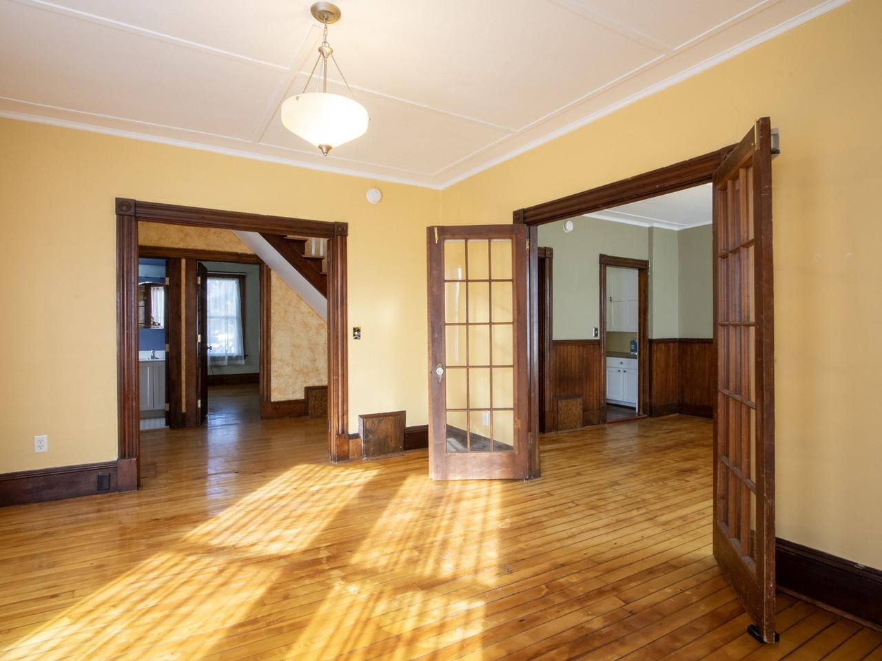There is no other condo on the market like this one. This beautiful historic property was converted into condos, so you get the homey feel of a house, and all the historic details that come along with an early 20th century home. With the perks of shared maintenance of a condo! Set on a prominent corner lot in Burlington's New North End, you are so close to many amenities, including a bus stop in front of the property. The yard provides lots of sunny space for recreation or gardening. Situated on two floors, it functions like a townhouse with a formal front porch and entry and casual side entry with mudroom space. The wide galley kitchen and walk-through pantry provide lots of space for multiple people to prepare and cook meals together. There is a formal dining room and formal living room with gorgeous lighting, or use the spaces in whatever way best suits your needs - office, playroom, etc. The historic details throughout add so much charm - wood French doors, wainscoting, a grand staircase, and hardwood flooring. The kitchen has more modern updates for optimal function. One bedroom is located on the first floor directly next to the half bath, and the primary bedroom is on the second floor, across from full bathroom which also houses the stacked laundry. Each unit has dedicated storage space in the basement, and of course the garage provides even more storage and/or space for your car. Nearby amenities include the Burlington Bike Path and local beaches, Ethan Allen Park, Shopping Center, and all the local shops and eateries the New North End has to offer. Downtown Burlington is nearby, for even more activities and shopping options. Come check out this unique property and be prepared to fall in love.