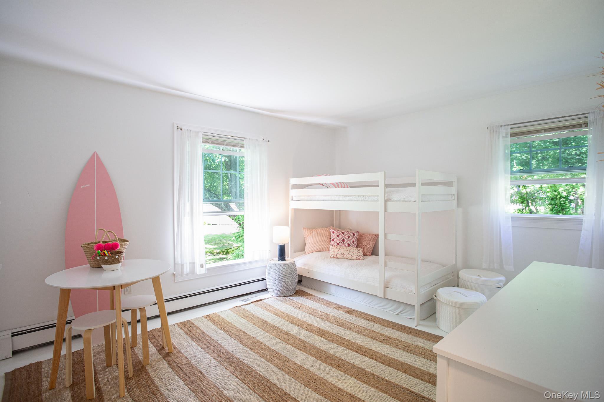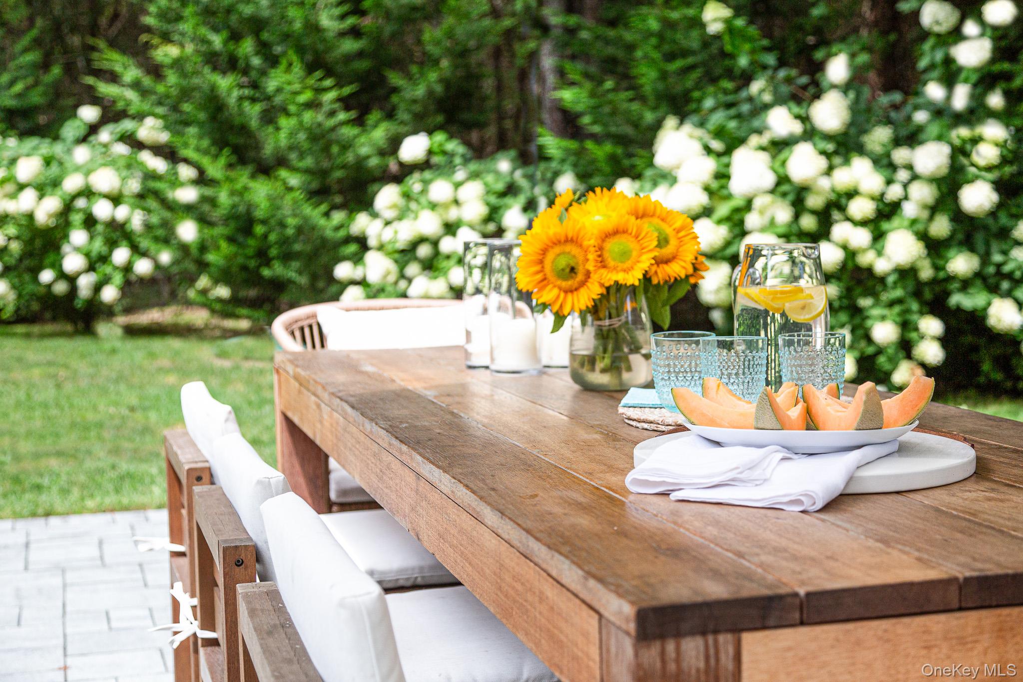 Discover the ultimate summer retreat, nestled south of Montauk Highway in Westhampton. This charming residence boasts nearly 1, 400 square feet of stylish living space set on an expansive 0. 79-acre lot, surrounded by nature preserve for the utmost privacy. Meticulously updated with clean lines and modern amenities, the interior features a flowing floor plan anchored by an open kitchen equipped with stainless steel appliances, including an electric range, double oven, dishwasher, and an oversized refrigerator with a convenient freezer drawer. The residence comprises three bedrooms and 2 baths, highlighted by an ensuite second-floor master retreat with a King bed and dedicated home office space. Additional desk space is available in the upstairs loft. The two additional bedrooms include a queen bed and a bunk room, catering to all your accommodation needs. Step outside to the private oasis featuring a fenced, heated, saltwater pool with a welcoming patio surround. The upper patio, off the back of the home, offers a serene spot to unwind and entertain with Weber grill and dining table for 10. Enjoy the convenience of high-speed internet, a Tesla charging station, and the beauty of well-maintained gardens with irrigation throughout. Conveniently located just 2. 6 miles from Main Street's vibrant shops and restaurants, this residence also comes with coveted beach rights to Rogers, Jetty 4, and all town of Southampton beaches. Make this your summer haven in 2026. Available June $12K, July $25K, August - LD $30K or the full season at $68K! Let's make a deal! [[Rental Registration # RP230323]]