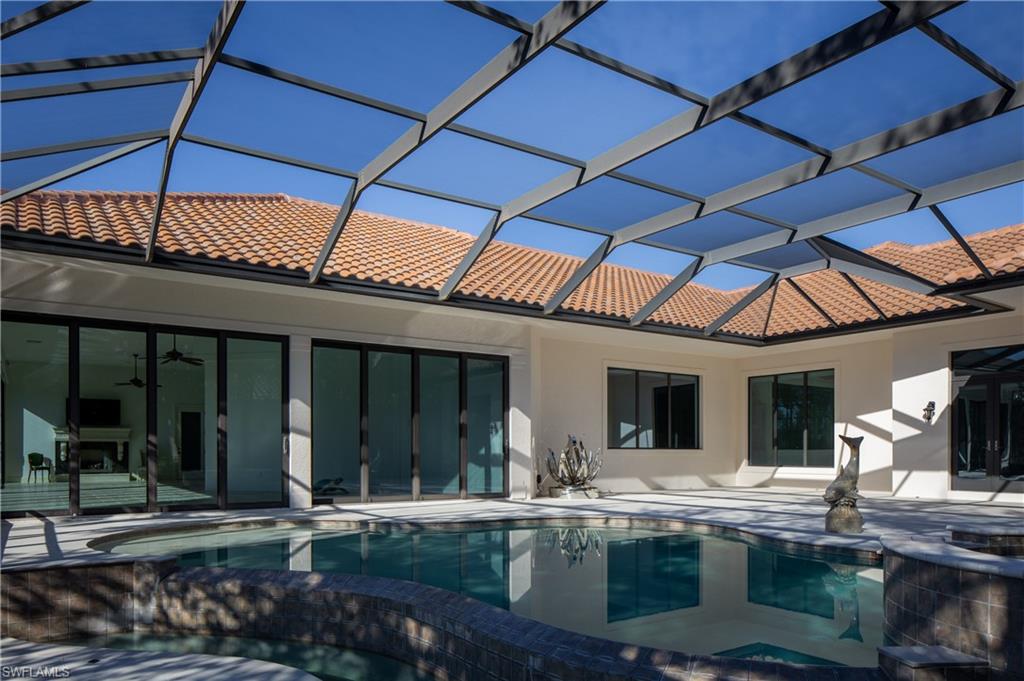 Architecturally stunning custom 5BR+Den/5+BA/3-car estate by Robert D’Angeleo, set on a tranquil lot with serene natural surroundings and breathtaking western sunset views. This exceptional residence has just undergone significant updates including new landscaping and fountain, new flooring, cabinetry, pool deck, driveways, spray foam insulation, and fresh interior and exterior paint, enhancing both style and functionality. The one-of-a-kind enclosed lanai provides year-round living space with gas fireplace, summer kitchen, and glass walls that open to a screened lanai. The chef’s kitchen features an expansive island, high-end appliances, and walk-in pantry with dual counters. Exquisite custom millwork, dramatic ceilings, travertine tile, and plank wood flooring elevate every space. Five bedrooms plus private study; four guest suites with ensuite baths and walk-in closets. Luxurious primary suite is a private wing with spa bath and custom closets. Resort-style pool and spa with outdoor TV and surround sound complete this entertainer’s dream. Located in prestigious West Bay Club with private full-service beach club, dining, fitness, tennis, pickleball, river park exercise trails, kayaking, boat launch/storage and optional golf.