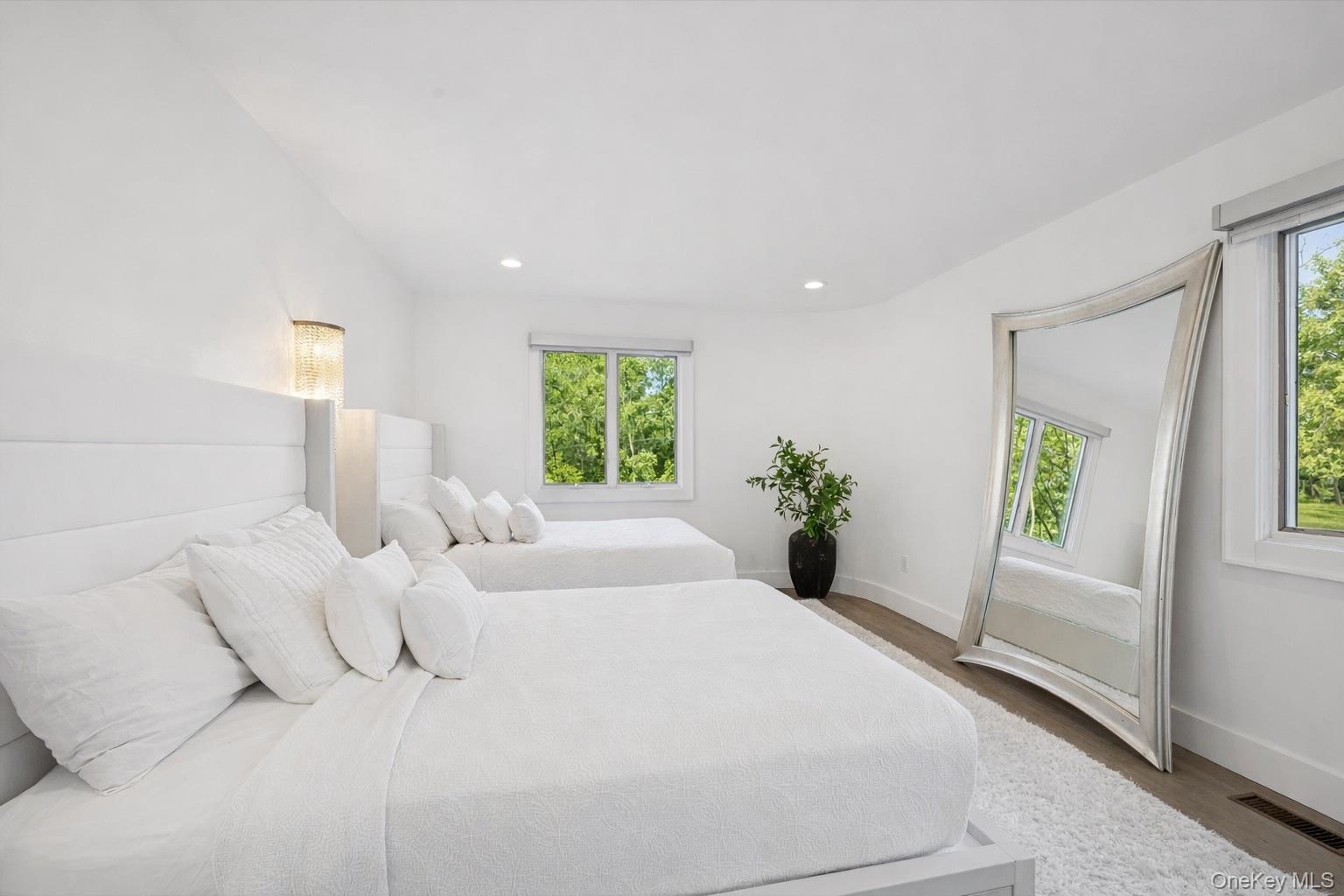 RENOVATED QUOGUE VILLAGE RENTAL - SUMMER PERFECTION Set just shy of an acre at the end of a quiet Quogue cul-de-sac, this bright, fully renovated four-bedroom, three-bath home offers effortless Hamptons living. A dramatic great room with 12-foot ceilings, skylights, and floor-to-ceiling windows fills the space with natural light and opens to an expansive deck and 20'x40' heated pool. The sleek kitchen features custom cabinetry, quartzite counters, and Thermador, Viking, and Bosch appliances, plus counter seating and a glass dining area. The airy interiors include grey oak floors, Restoration Hardware furnishings, and a cozy wood-burning fireplace. Outdoor amenities abound - multiple dining and lounge spaces, a fire pit patio, outdoor table tennis, and a half basketball court. The primary suite offers a king bed, spa bath, and deck access; three guest bedrooms (one of them en-suite) complete the layout. Just two miles to Quogue Village Beach and close to the Quogue Wildlife Refuge, this is the ideal summer rental. Available February-April ($5k/mo); May ($17k); June ($20k); July 16-31 ($20k); September 8-30 ($17k).