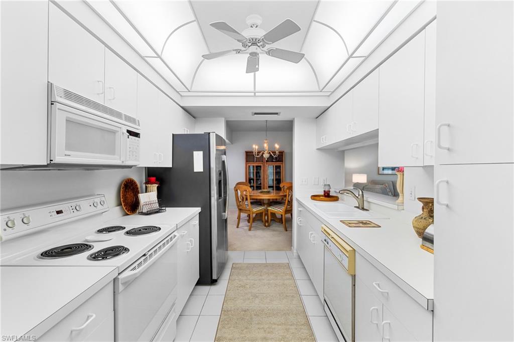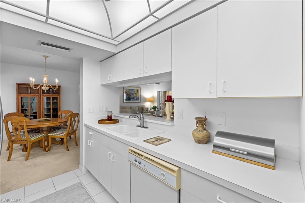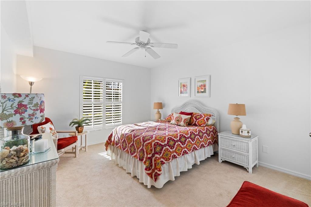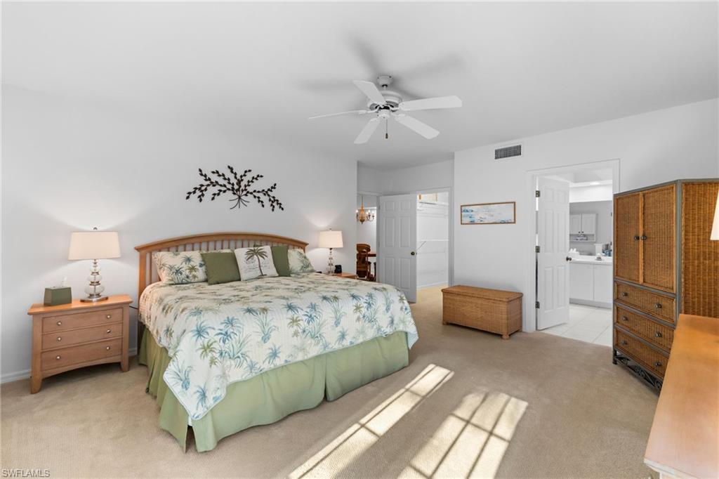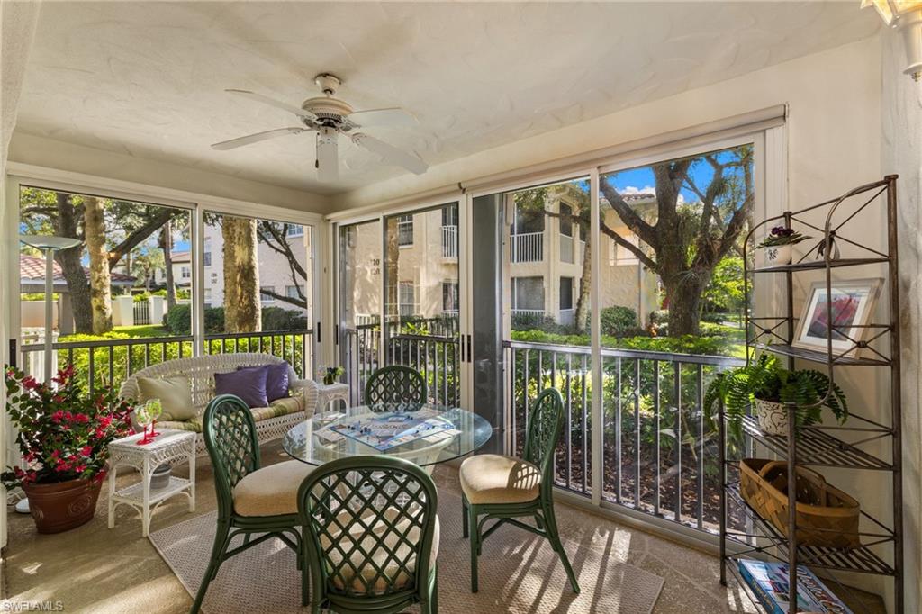 First-floor, no-stairs condo in charming Tuscany at The Vineyards—a tranquil enclave nestled among mature landscaping. Enjoy a glass-enclosed lanai with peaceful views and glimpses of the lake. This 2-bedroom + den, 2-bath home offers a spacious split-bedroom floor plan with excellent privacy for guests and flexible living. The den is currently used as a guest space and also works beautifully as an office or hobby room. Storage is exceptional with two walk-in closets plus a foyer storage closet. Freshly painted with newer carpet (recently cleaned) and sold furnished/turnkey—your Naples getaway is ready to enjoy. Convenient carport parking nearby, with plenty of guest parking available.