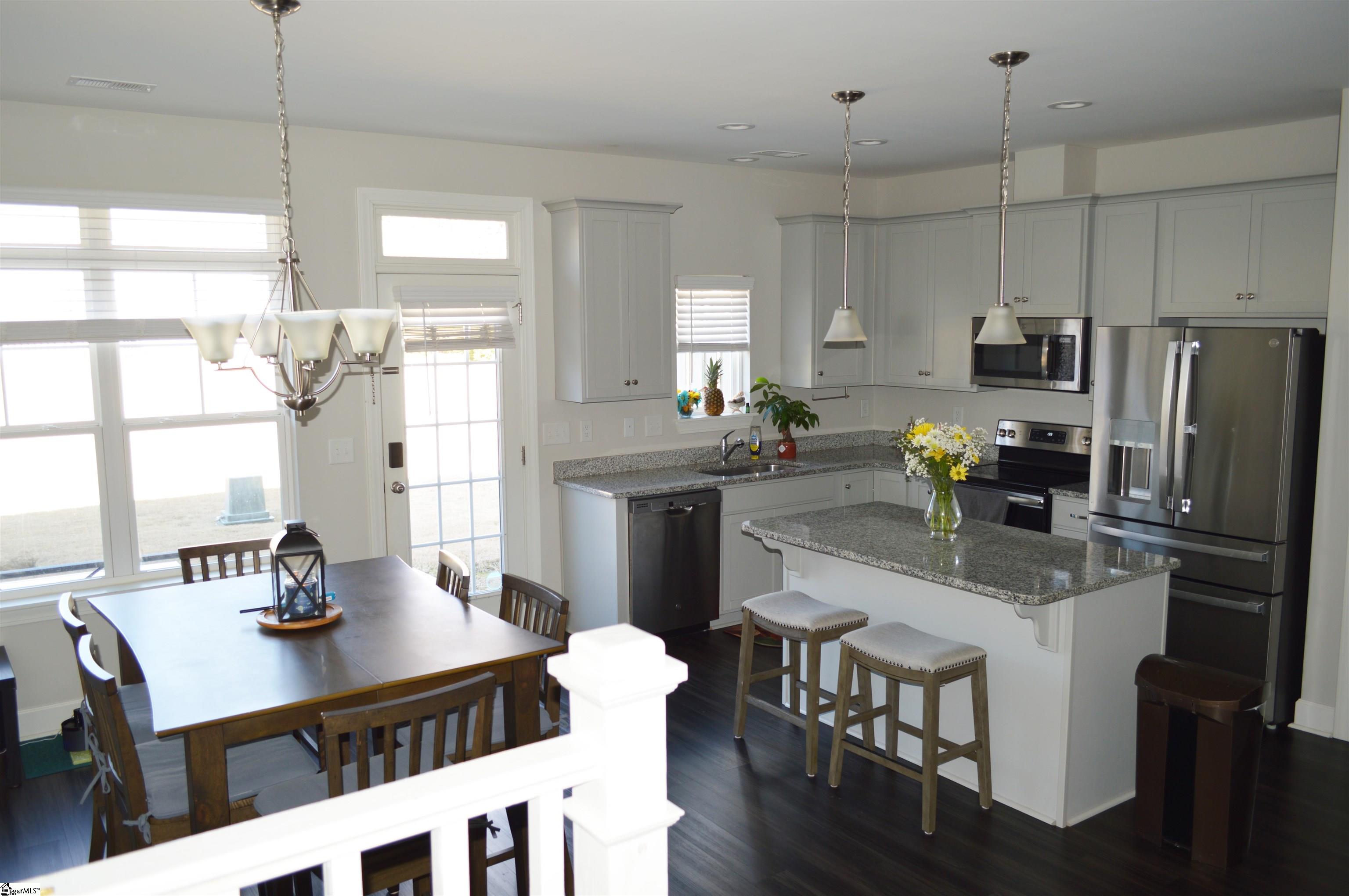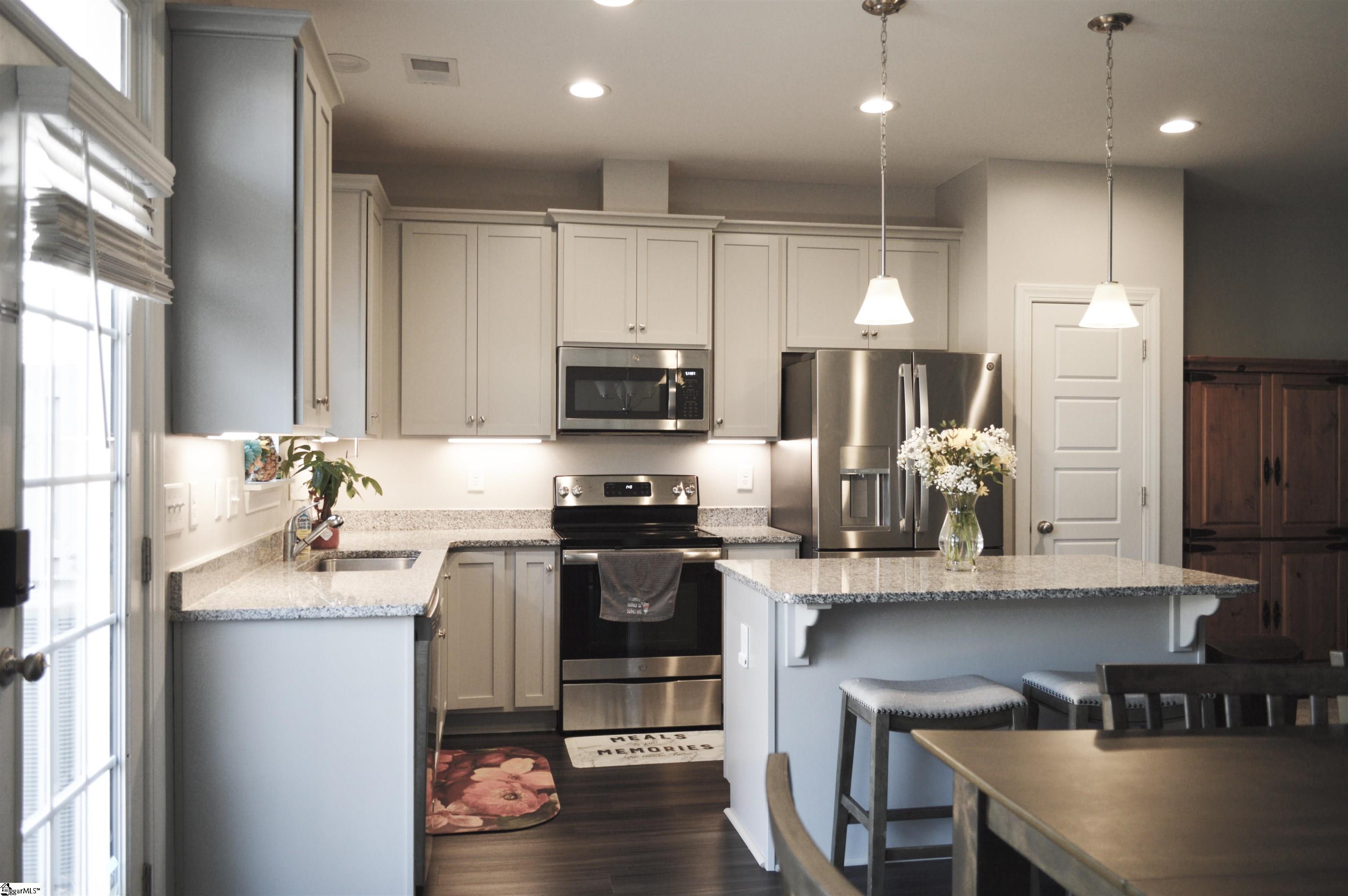 Dreams do come true! Welcome to the Townes at Eastside. This beautifully maintained townhome at 121 Bluet Lane is one of the last built in the community and one of only four offering an additional 250 sq ft of open living space. Featuring 3 bedrooms, 2. 5 baths, and a one-car garage with space for 2 cars in the drive, this home backs to a peaceful grassed-in courtyard and offers 1, 775 sq ft of move-in-ready living space with fresh paint and brand-new carpet throughout. The main level boasts a spacious foyer, half bath, ample storage, and an open-concept layout with dedicated living and dining areas. The kitchen features granite countertops, shaker-style cabinetry, pendant lighting, and a large island—perfect for everyday living and entertaining. Upstairs, the master suite features beautiful tray ceilings, a large walk-in closet, and an en-suite bath with dual vanities, a glass-enclosed shower, AND a soaking tub. Two additional bedrooms are generous in size, share a full bath, and offer spacious closet space. The walk-in laundry room on the second floor provides added convenience. HOA-maintained exterior, lawn care, roof, and siding allow for low-maintenance living. Conveniently located just 15 minutes from downtown Greenville and 10 minutes from Greer, with easy access to shopping, dining, and major commuter routes, this home offers comfort, space, and location in a quiet, walkable community.