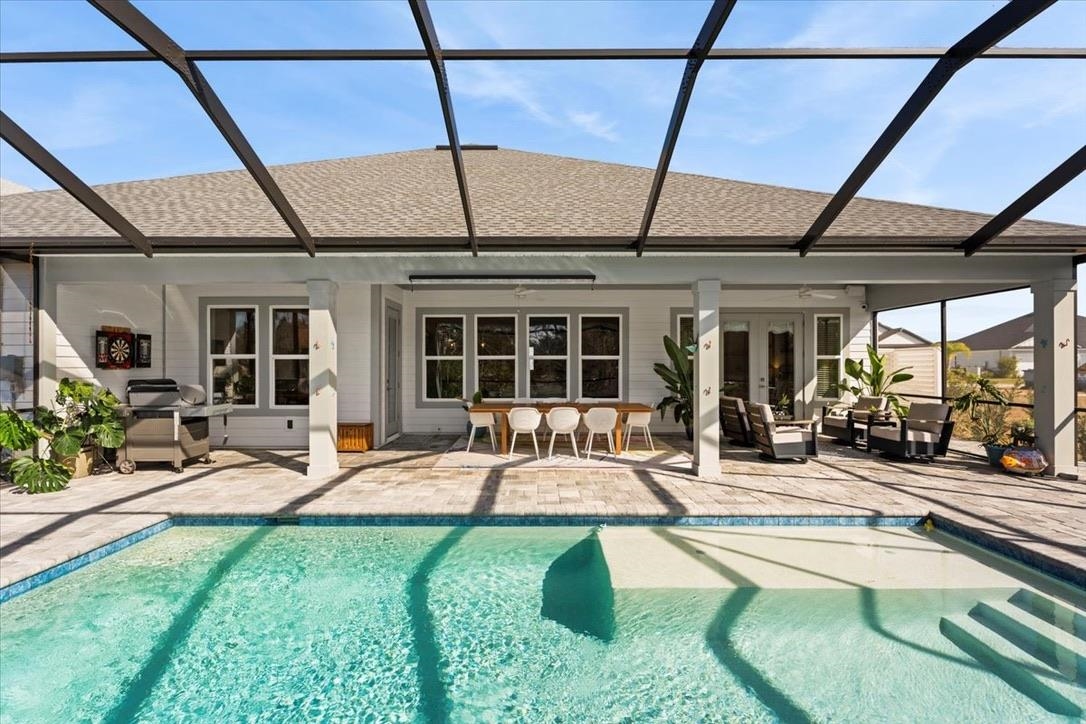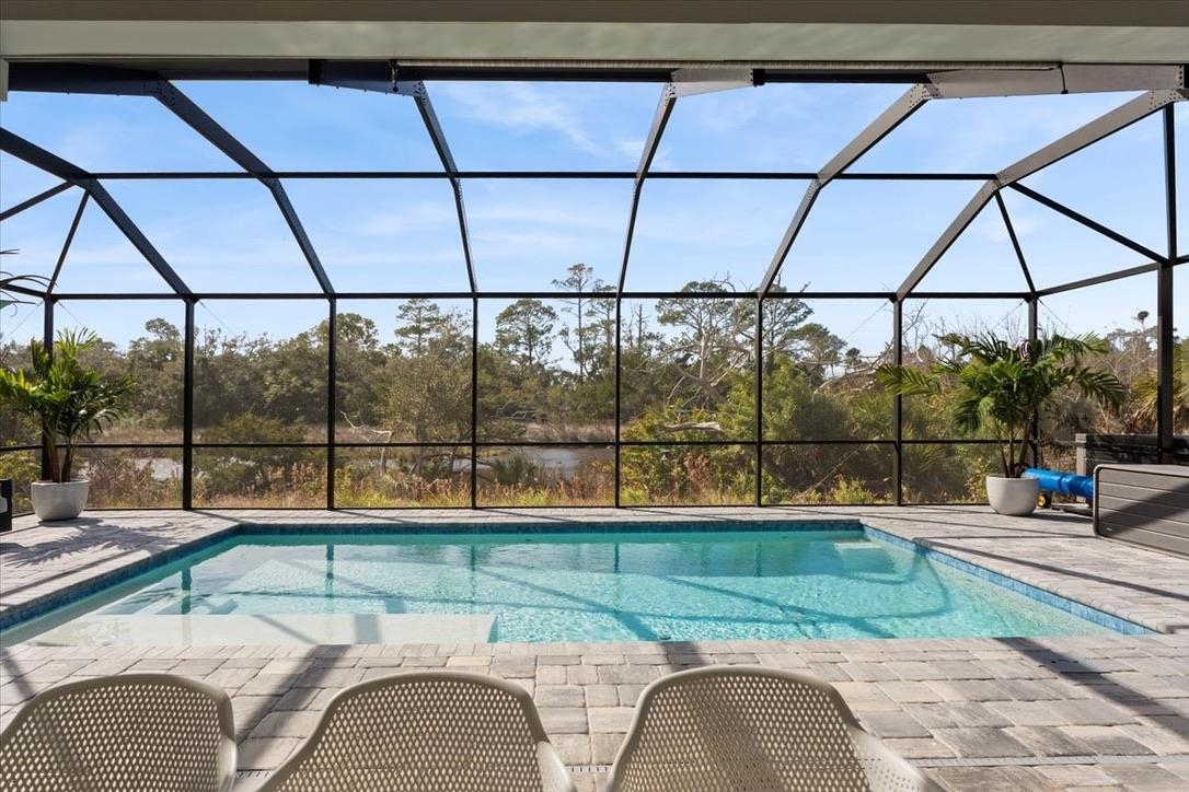 Stylish pool home on one of the most scenic lots in the highly desirable Madeira community. MasterCraft's acclaimed Ella plan offers over 3, 100 sq. ft. all on one level with space for everyone including 3 bedrooms, 2. 5 bathrooms, a teen retreat, a huge flex room (currently being used as a 4th bedroom), a private pocket office and even a spacious laundry room that doubles as a hobby workshop. Inviting coastal chic interior with wood-look plank tile, designer fixtures, and a kitchen intended for easy entertaining, boasting a deep walk-in pantry with 2nd refrigerator. Make the most of the Florida outdoors with your own screened and heated inground pool adjacent to an extended lanai with grilling area, plus a separate paver patio and an outdoor shower as well. The oversized estate lot is a nature lovers' paradise overlooking a serene marsh and wooded preserve visited by an abundant variety of migratory shorebirds. Quality construction features 2"x6" exterior walls with James Hardie siding, attractive Craftsman architectural elements, an expansive covered entry porch, 10' ceilings, 8' solid-core interior doors and smart home technology. In addition, the Madeira Residents Club offers a clubhouse, fitness center, and swimming pool with lap lanes. Madeira is a gated intracoastal front community unique for its lush natural environment, including over 600 acres of marsh wetlands, a tidal creek, numerous lakes and preserved natural areas, all just 3 miles north of historic downtown St. Augustine and only 4 miles from the beach!