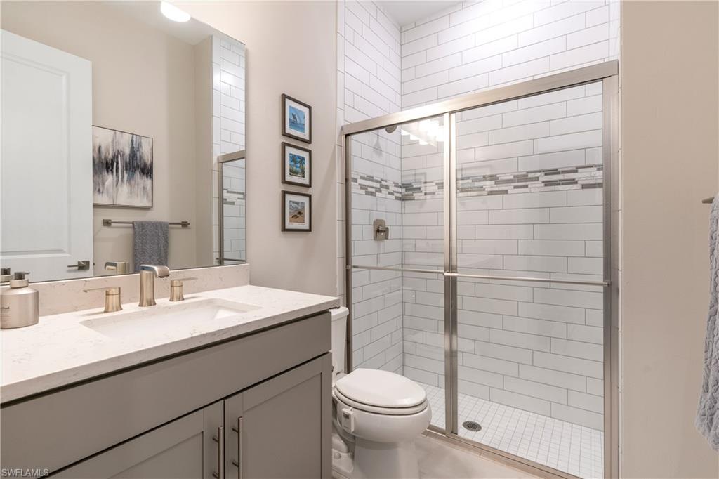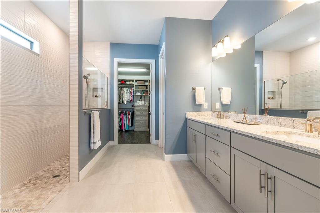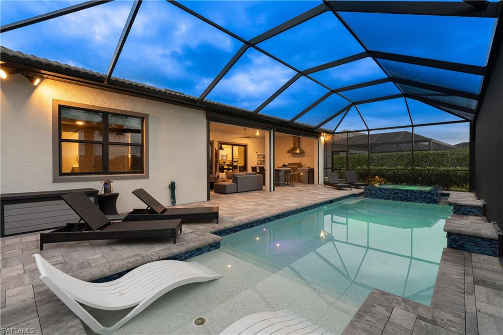 This exceptional Stonewater floorplan offers 3, 848 square feet of impeccably curated living space, featuring 4 bedrooms plus a den, 4 bathrooms, an expansive loft, and a 3-car garage, all thoughtfully designed with countless upgrades throughout. Perfectly positioned on the 4th hole of a private 72-par, 18-hole Rees Jones–designed golf course, the home captures breathtaking water and fairway views that define refined Florida living. A true resort-style sanctuary, the outdoor living space showcases a spectacular pool and spa with cascading water features and a sun shelf, all enclosed within a picture-screen pool cage that preserves unobstructed views. The extended pool deck is ideal for both relaxation and entertaining, complete with a fully equipped summer kitchen and bar, along with automatic storm shutters and shades for effortless comfort and peace of mind. At the heart of the home, the expansive great room is crowned by coffered ceilings and framed by walls of sliding glass doors that seamlessly connect indoor and outdoor living. Hurricane-impact windows and doors throughout—including a striking custom glass double-door entry—blend architectural elegance with security. Oversized vertical brushed tile flooring flows through the main living areas, creating a sophisticated, cohesive aesthetic. The chef’s kitchen is both stunning and functional, featuring stainless steel appliances, crisp white cabinetry with sleek hardware, a custom designer backsplash, oversized sink, curated pendant lighting, and a fully customized pantry organizer—perfect for entertaining and everyday luxury. The primary suite serves as a serene retreat, enhanced by a tray ceiling and tranquil views overlooking the pool and golf course. The spa-inspired primary bath boasts a grand walk-in shower wrapped in upgraded tile and illuminated by natural light, while the expansive walk-in closet is outfitted with custom organization, offering boutique-style storage. The main level also includes two guest bedrooms and two additional baths, along with a den off the great room—ideal for a home office or library. Upstairs, elevated living continues with a grand loft, perfect for a game room, fitness studio, or creative space, enhanced by upgraded padding and plush carpeting. An additional bedroom, full bathroom, and bonus storage space complete the upper level. Located within an amenity-rich, no CDD, natural gas community, residents enjoy a state-of-the-art fitness center, two clubhouses with dining, a resort-style heated pool, and an active social calendar. Recreational offerings include tennis, pickleball, bocce, and more. Ideally situated central to premier shopping, dining, and Naples’ renowned beaches, this extraordinary residence delivers luxury, lifestyle, and location—offering the very best of Florida living.