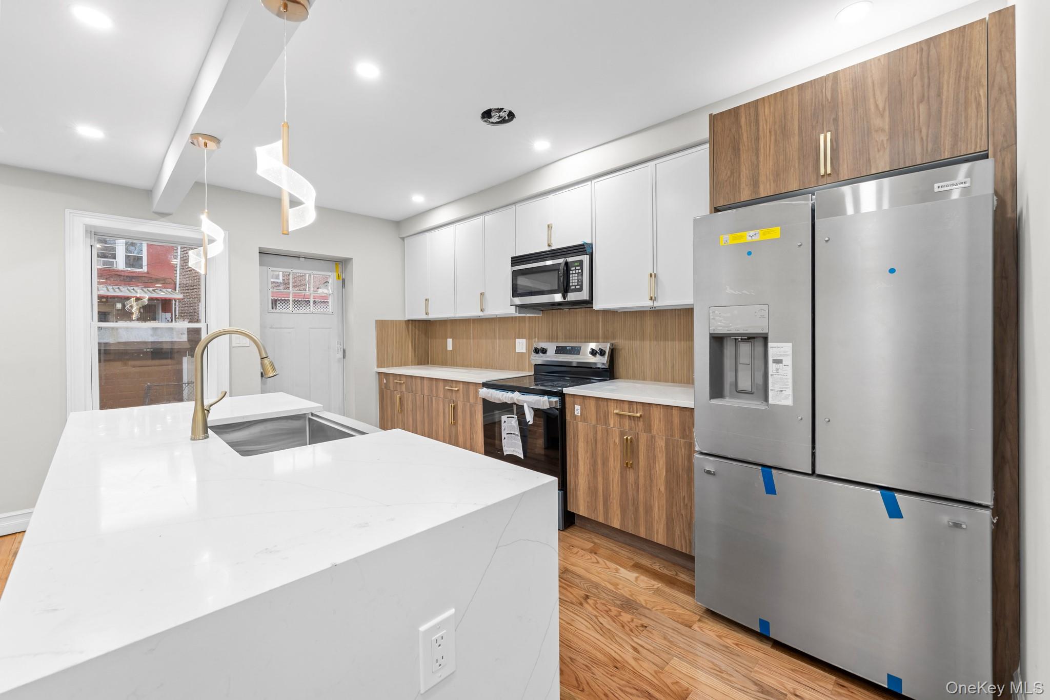 Space, style & modern luxury come together at 179-18 Selover Road! A Meticulously renovated, turn key move in ready 100% 20x40 built brick tudor that spans 2, 400 sq/ft of living space. Tucked away on a beautiful tree lined street of Saint Albans/ Springfield Gardens section of Queens. Featuring a driveway, garage, and is the perfect opportunity for buyers looking for space. Open the door and enter an expansive sun drenched formal living area that is equipped with a brick wood burning fireplace and provides great space for entertaining. The formal dining area overlooks the stunning kitchen any chef will love. Kitchen features floor to ceiling custom cabinetry, adorned with a full fleet of stainless steel appliances, equipped with island for bar stool seating, and leads out into lush rear yard. 1/2 bath on first floor for your guest. Up a flight of stairs 3 king sized bedrooms awaits you, each equipped with ample closet space. The primary suite is equipped with a private en suite with Spa-like finishes. Down the hall a fully tiled bathroom is equipped with state of the art wall & floor tiles and is shared between the 2 additional bedrooms. The high ceiling full finished basement has both interior and exterior access and can easily be used as the perfect in-law suite, media den, storage space, guest quarters or additional recreational space. Renovations include brand new select wide oak wood flooring, recessed lighting, energy efficient central AC Units. Brand new electrical, heating and plumbing systems throughout. 179-18 Selover Road is conveniently located with close proximity to major transportation which makes commuting a breeze. Just off Merrick Blvd, Baisley Blvd, Farmers Blvd. Short blocks to schools, shopping centers, restaurants, cafes, parks and many other vibrant neighborhood amenities.