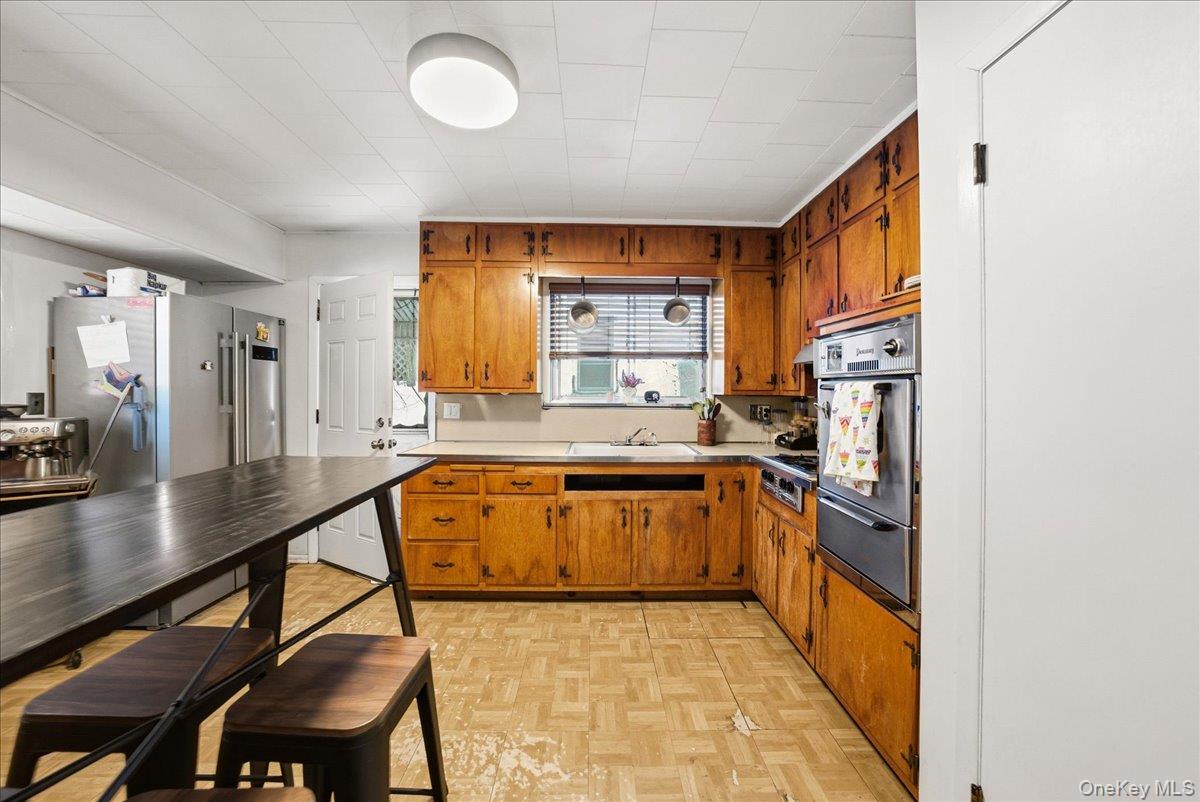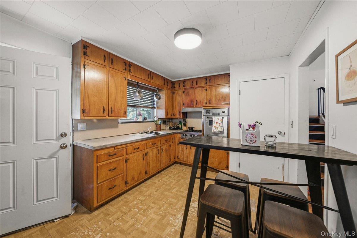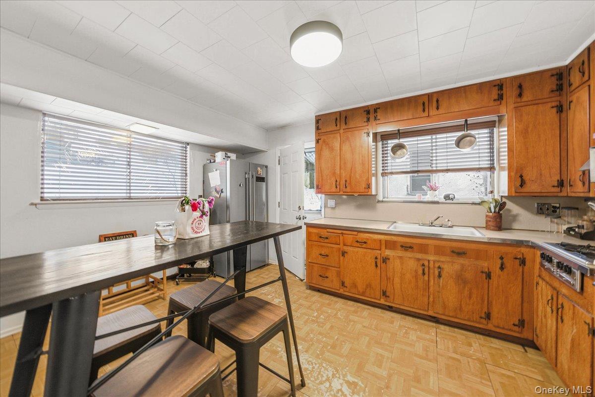 Tucked away on a quiet dead-end street in sought-after Northwest Yonkers, this inviting split-level home offers space, comfort, and endless potential. The front door opens to a bright living and dining room combination highlighted by cathedral ceilings, beautiful hardwood floors, and an abundance of natural light—ideal for both everyday living and entertaining. The eat-in kitchen provides easy access to the outdoors, perfect for enjoying indoor-outdoor living. The upper level features three nicely sized bedrooms, a full bathroom, and ample closet space throughout. The partially finished basement boasts a spacious family room with soaring 14-foot ceilings and sliding glass doors that lead to a private back patio and tranquil backyard, creating a perfect setting for relaxation or gatherings. The lower level also includes a laundry room, generous storage, and endless possibilities for customization. Additional highlights include a two-car driveway, a new boiler installed less than one year ago, and municipal water and sewer. Property taxes listed do not reflect any STAR exemption(s). Conveniently located near schools, parks, shopping, dining, and transportation, this home presents a wonderful opportunity to own in one of Yonkers’ most desirable neighborhoods.