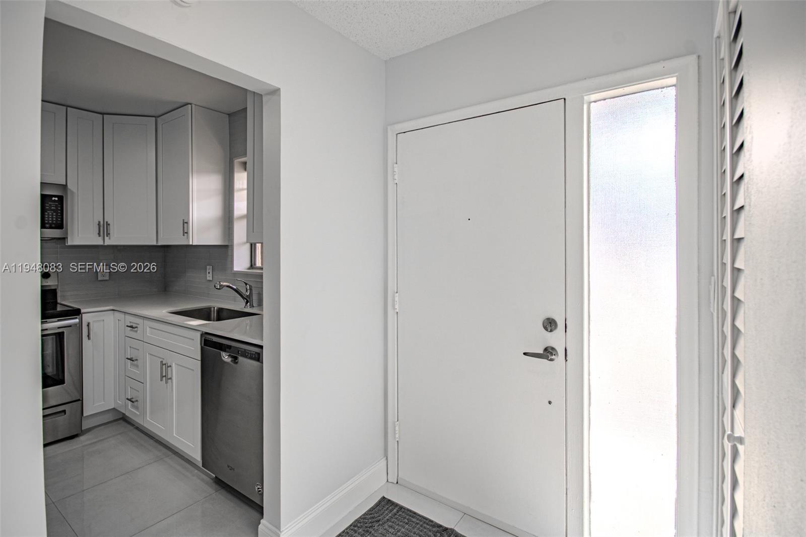 Cozy remodelled first floor apartment with 1 bedroom and 1. 5 bathrooms, modern white porcelain in all the areas, new: kitchen cabinets, quartz countertops, and backsplash, new bathroom, new doors, just painted, enclosed patio with beautiful garden view which can be used as an office, spacious master bedroom, very friendly peaceful community, many amenities, excellent club house (weekly bingo), nice pool area, the gym is very well equipped, low association fee, close to restaurants, shopping centers and 10 minutes from Sawgrass Mall, the unit has a storage room in the laundry area, this is a 55+ community, no minors of 18 years old can live in this condominium. Easy to see!