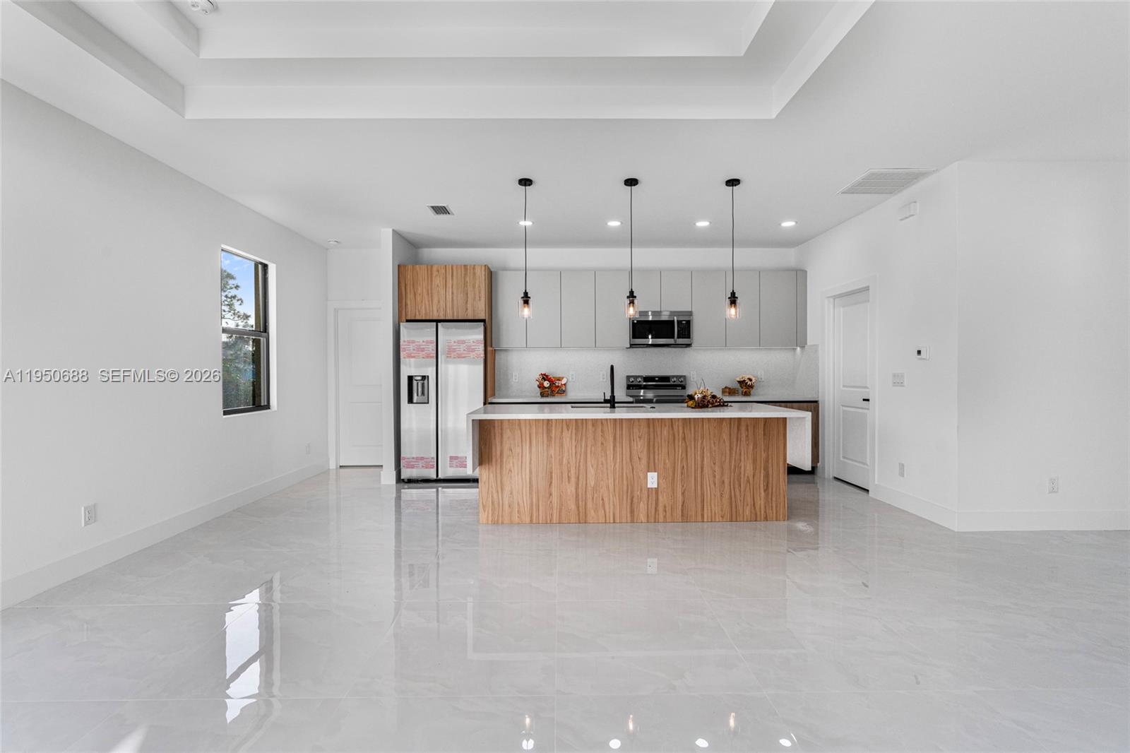 New construction home situated on a desirable corner lot in Lehigh Acres, Florida. This beautifully designed residence features 3 spacious bedrooms and 2 modern bathrooms, blending comfort, style, and functionality. The open-concept layout showcases elegant porcelain flooring, sleek quartz countertops, and a chef-inspired kitchen equipped with stainless steel appliances, contemporary fixtures, stylish cabinetry, and under-cabinet lighting, ideal for both everyday living and entertaining. The primary suite includes a thoughtfully designed built-in master closet offering ample storage and organization. Additional highlights include a built-in laundry closet, modern lighting fixtures, and updated faucets throughout. Conveniently located near shopping, dining, and essential amenities. Don’t miss this exceptional opportunity.