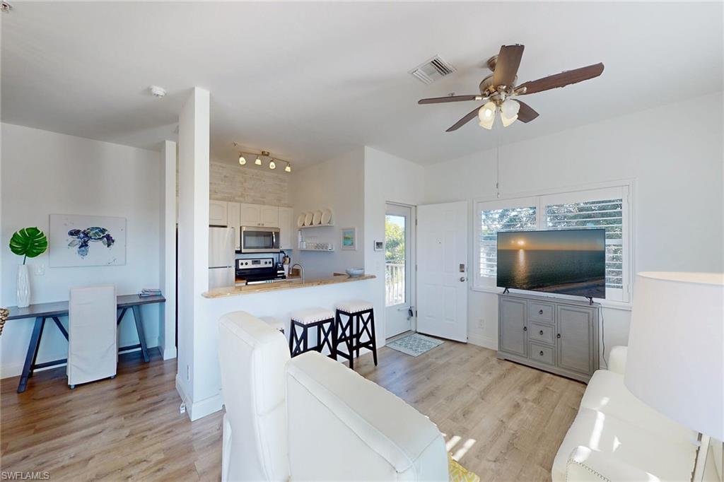 Arrive by boat and step into effortless island living with a deeded boat slip, lift, and direct Gulf access at this rarely available oversized one-bedroom waterfront residence in the heart of Olde Marco. Encompassing 905 square feet, this top-floor retreat offers exceptional privacy with no surrounding units and breathtaking southwest-facing water views. Thoughtfully offered furnished for immediate enjoyment, the residence also includes an assigned carport for added convenience. The impeccably maintained, well-managed association has recently completed substantial enhancements, including a new roof in late 2024 and an elegant cobblestone drive. A truly exceptional opportunity to own a private, low-density waterfront sanctuary in one of Marco Island’s most sought-after and historic enclaves.