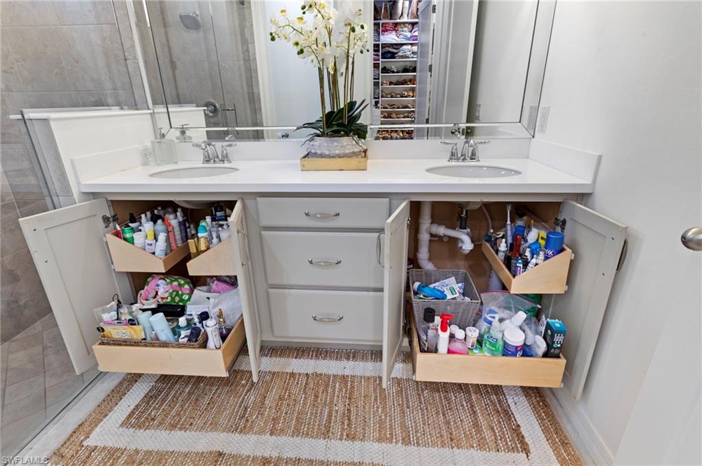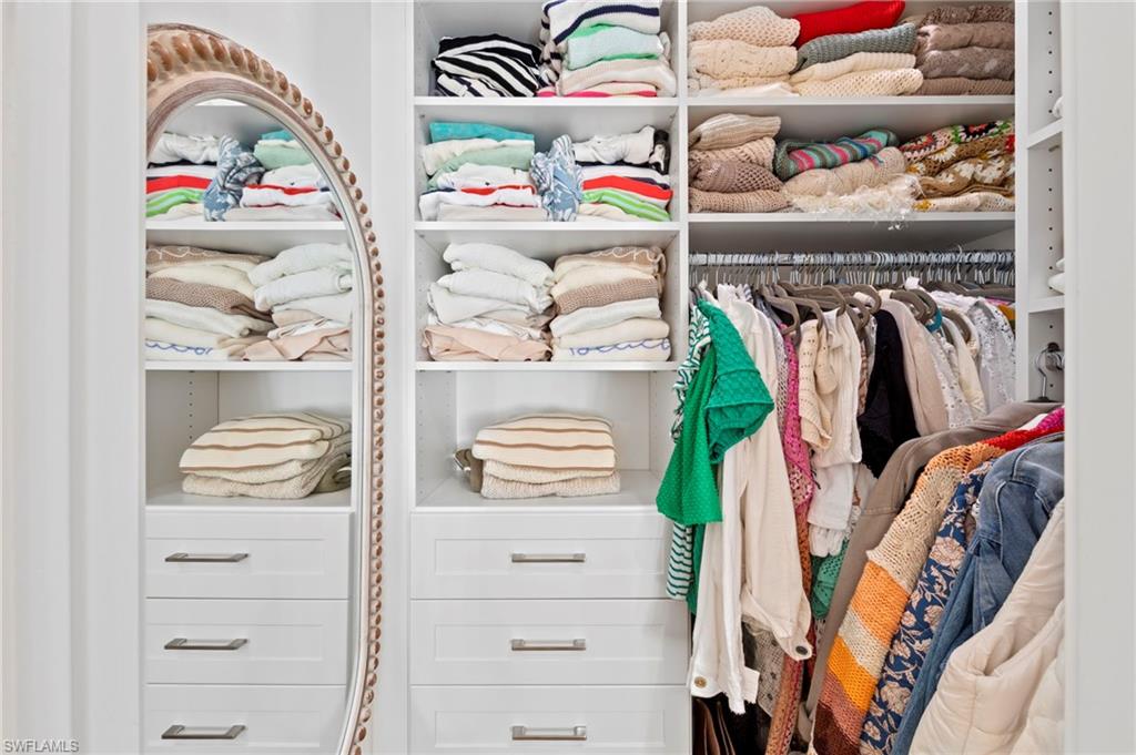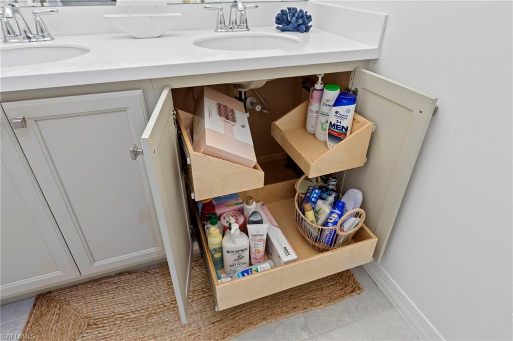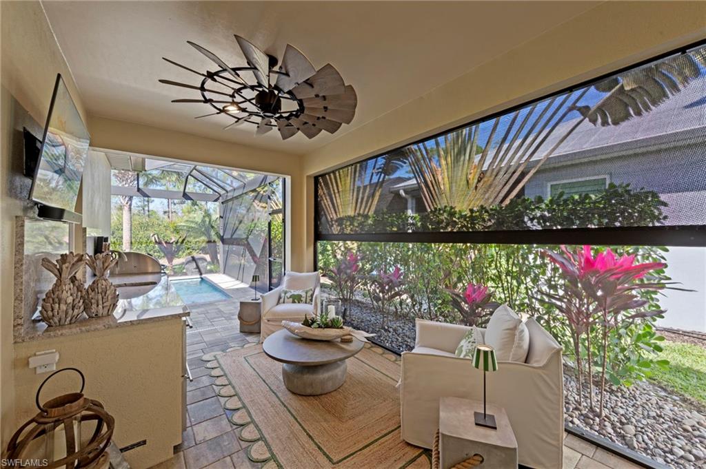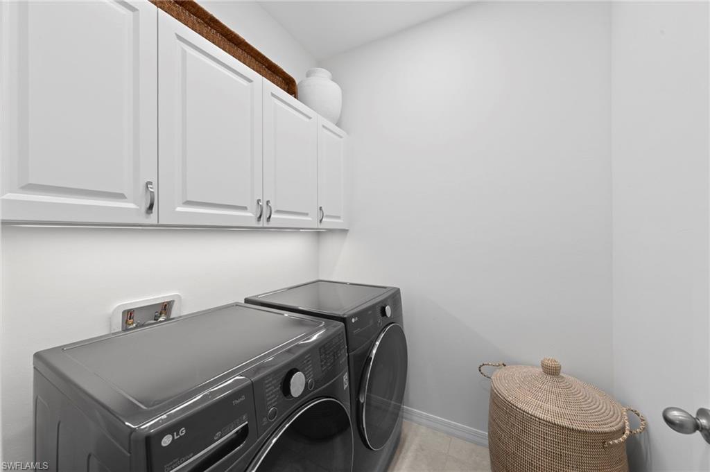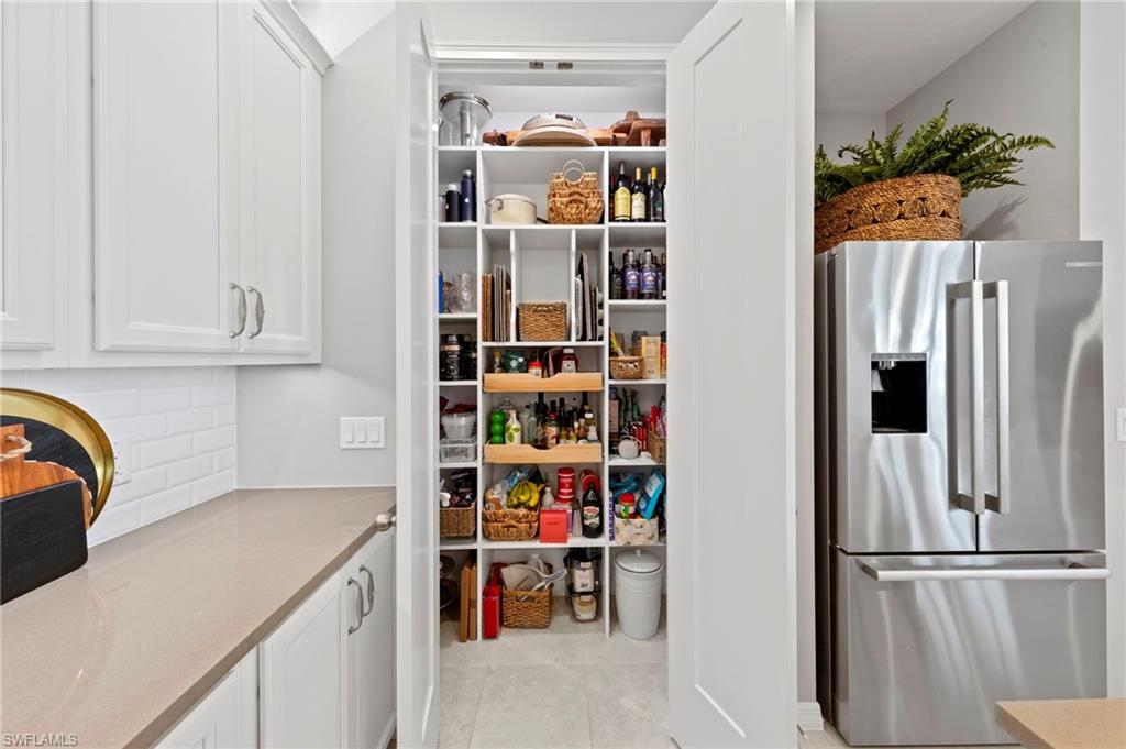 This is a truly special home featuring EXTENSIVE CUSTOM DETAILS throughout, thoughtfully designed to combine luxury, comfort & functionality. Perfectly situated on an UPGRADED PRESERVE VIEW cul-de-sac lot w/lush landscaping, LANDSCAPE LIGHTING & lake-fed automatic IRRIGATION. Offering 3 beds & 2 full baths the home welcomes you w/an inviting entry highlighted by an IMPACT GLASS DOOR w/keypad entry, exterior SECURITY CAMERA, VIDEO DOORBELL, PLANTATION SHUTTERS, CUSTOM CLOSET SHELVES, custom lighting & TILE FLOORS. The open great room impresses w/TRAY CEILING, CROWN MOLDING, recessed lighting, CEILING FAN, plantation shutters & IMPACT sliding glass doors opening to the lanai. The dining area features a custom chandelier & striking SHIPLAP wall. The open kitchen is beautifully appointed w/upgraded cabinetry, custom ROLL-OUT SHELVES, QUARTZ counter, TILE BACKSPLASH, CABINET LIGHTING, CUSTOM PANTRY & large island w/breakfast bar & PENDANT LIGHTS. High-end BOSCH APPLIANCES include a self-cleaning CONVECTION RANGE, WARMING DRAWER, MICROWAVE DRAWER & EXTERIOR-VENTED RANGE HOOD. The primary suite is a serene retreat w/shiplap feature wall, tray ceiling w/crown molding, AUTOMATED WINDOW BLINDS, upgraded SISAL CARPET, TV mount w/raised outlets & a spacious CUSTOM WALK-IN CLOSET w/can lighting & FULL LENGTH LIGHTED MIRROR. The luxurious primary bath offers a double-sink quartz vanity w/custom roll-out shelves, BEVELED MIRROR, tile floor, large tiled shower w/FRAMELESS GLASS ENCLOSURE & private water closet. Additional living spaces include a secondary bedroom w/custom walk-in closet, versatile den/THIRD BEDROOM w/QUEEN MURPHY BED, stylish hall bath w/frameless glass tub/shower & laundry room w/LAUNDRY CABINETS, washer, dryer & under-cabinet lighting. Outdoor living is exceptional w/HEATED SALTWATER POOL/SPA featuring a SUN SHELF, BUBBLERS, colored lights & AUTOFILL. The extended paver lanai is enclosed w/a NO-SEE-UM SCREEN PICTURE FRAME CAGE, electric HURRICANE SCREEN SHUTTER, ceiling fan, CAGE SCREEN LIGHTS, TV mount, OUTDOOR SHOWER & security camera. An impressive OUTDOOR KITCHEN completes the space w/GAS GRILL, REFRIGERATOR DRAWERS, ICE MAKER, sink & GRANITE COUNTER/BACKSPLASH. The oversized two-car garage is fully equipped w/an EPOXY FLOOR, INSULATED GARAGE DOOR, AC MINI-SPLIT, AUTOMATED CEILING STORAGE RACKS, GARAGE STORAGE CABINET/SLAT WALL, INSULATED ATTIC w/PULL-DOWN STAIRS, & portable GENERATOR w/dedicated exterior outlet. Enhanced by SMART HOME AUTOMATION & DIMMER SWITCHES throughout, this home is located in a guard-gated community w/LOW HOA FEES that includes lawn/landscape maintenance. RESORT STYLE AMENITIES including a lakefront clubhouse w/NEW KITCHEN, NEW TIKI BAR, fitness center, lifestyle director, water sports, tennis, PICKLEBALL, walking trails, DOG PARKS & more. This exceptional home offers luxury, technology & an unmatched lifestyle—a rare opportunity to own a truly special property in a premier waterfront community.