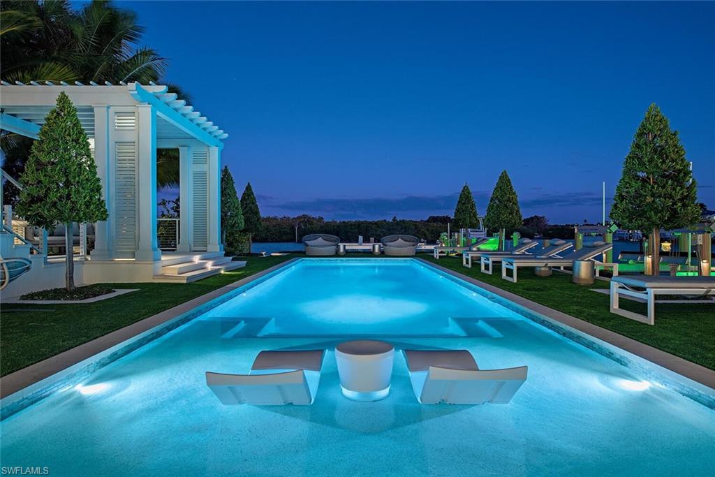 A rare and inspiring waterfront offering on Gordon Drive, showcasing wide, sweeping vistas across Champney Bay. Impeccably designed by Stofft Cooney Architects and built to exacting standards in 2023 by the highly acclaimed Williams Group, this exceptional residence delivers an unparalleled combination of scale, craftsmanship, and setting. The home features six bedrooms, eight baths, and more than 9, 000 square feet of air-conditioned living space, complemented by an extraordinary amount of garage capacity accommodating up to eight vehicles, 120 feet of water frontage, and approximately 185 feet of shoreline. The main living level sits at 18’ FEMA elevation, creating a distinctive blend of expansive water views, enhanced privacy, and peace of mind. Interior highlights include a chef’s kitchen centered around a custom Lacanche gas range, framed by Ruffino custom cabinetry, a dedicated service area, wine niche, and bar area ideally situated for entertaining. Rich, 12" ultra-wide-plank Legno Bastone bespoke wood flooring flows throughout the living spaces, reinforcing the home’s warm yet refined aesthetic. The outdoor environment is nothing short of awe-inspiring, offering true five-star resort-style amenities. Covered outdoor living includes a fully equipped kitchen, dining, seating, and a fireplace enclosed with automatic roll-down shutters and screens. The pool complex features an upper level heated spa, large pool with sun shelf, and a generous artificial-turf lawn with custom gazebo and outdoor shower. Newly completed dockage includes 3 lifts and rivals that of a private marina, with accommodations for two 50-plus-foot vessels, an additional 20-plus-foot boat, and a dual jet-ski platform lift. Elevation of home provides unique ability to have multiple significant vessels without obstructing bay views from the living spaces. Port Royal Associate membership eligibility completes this truly exceptional waterfront offering.
