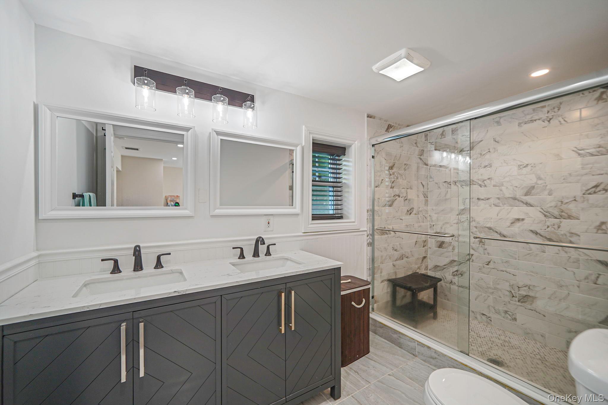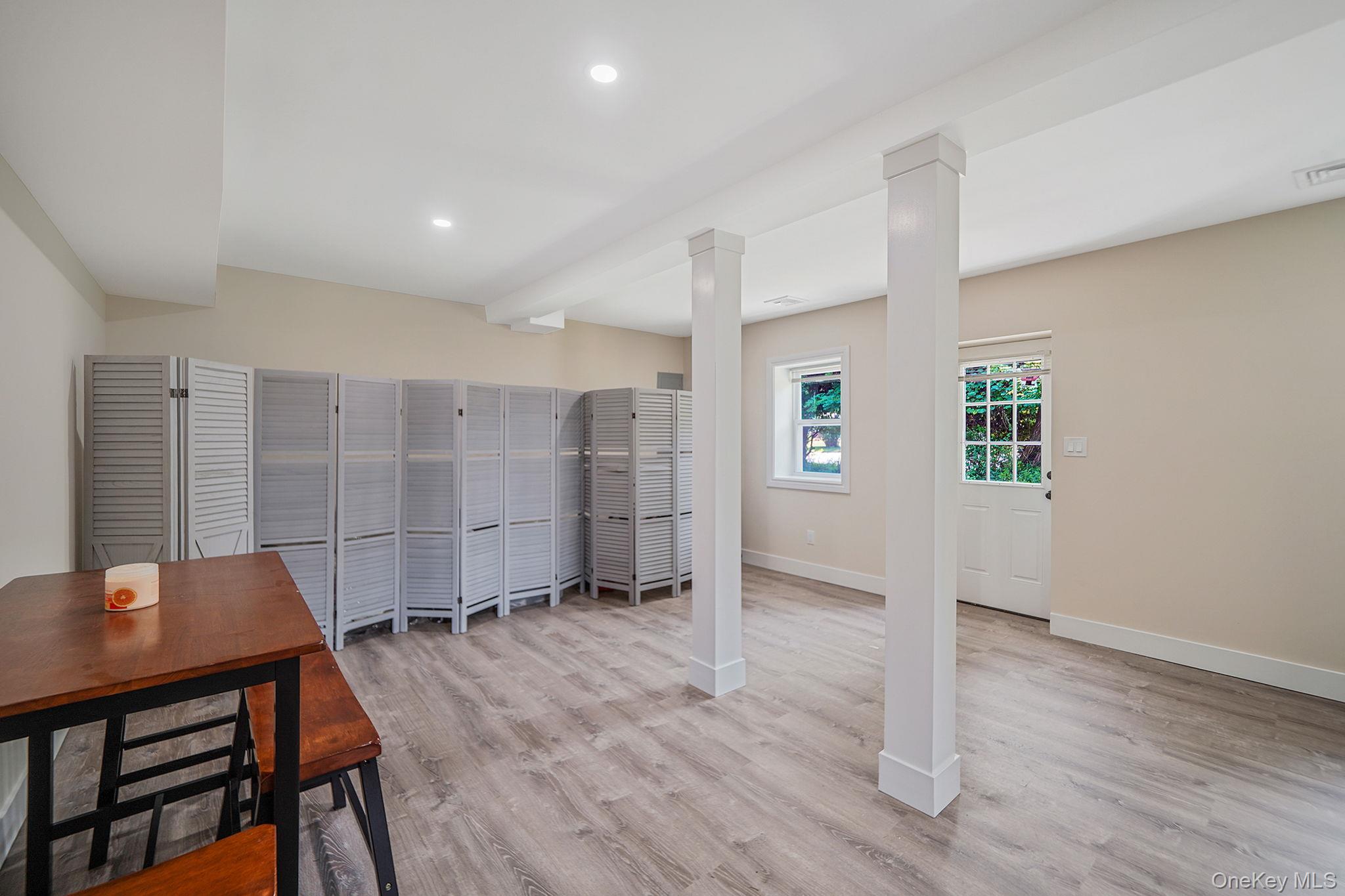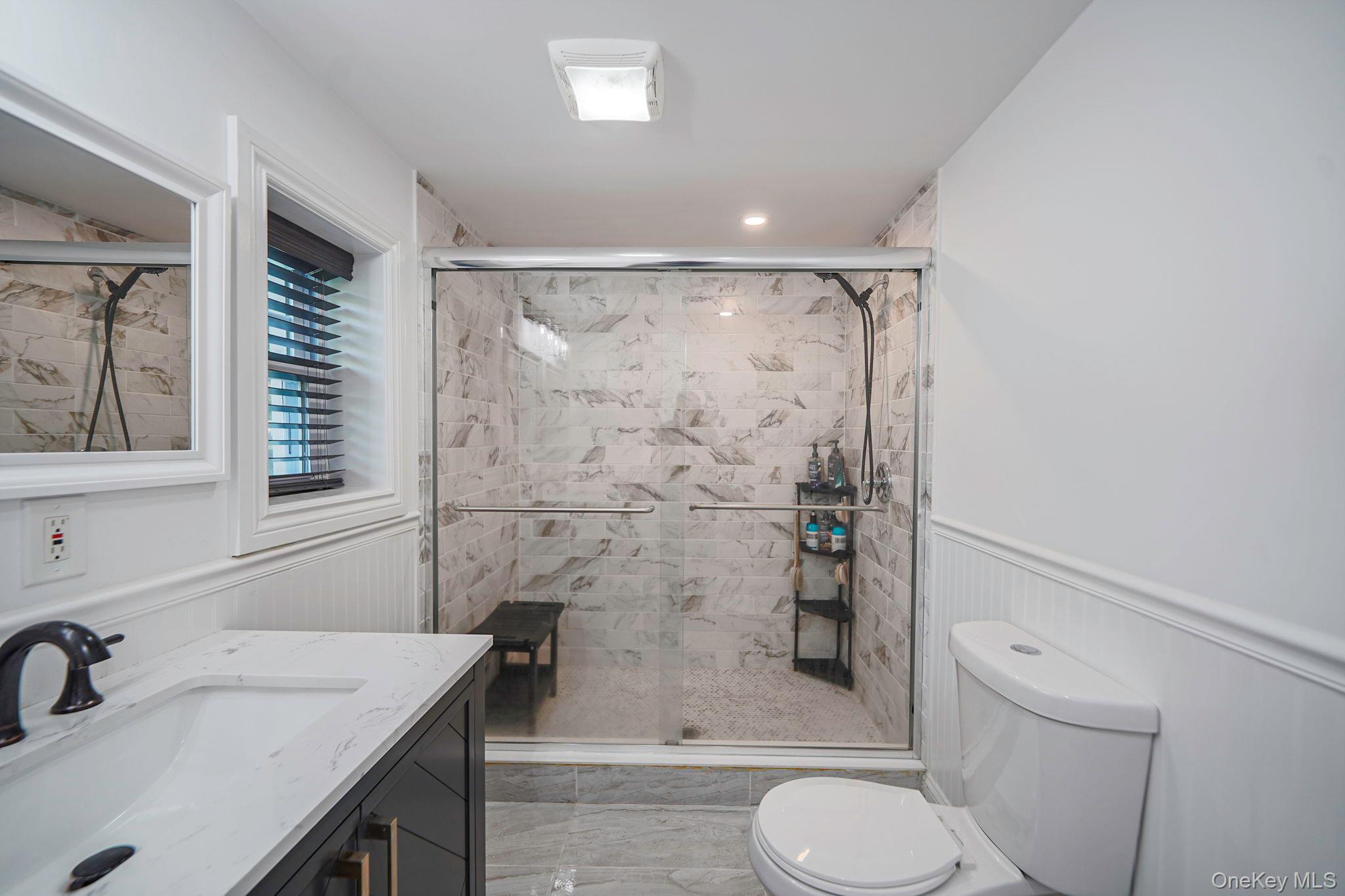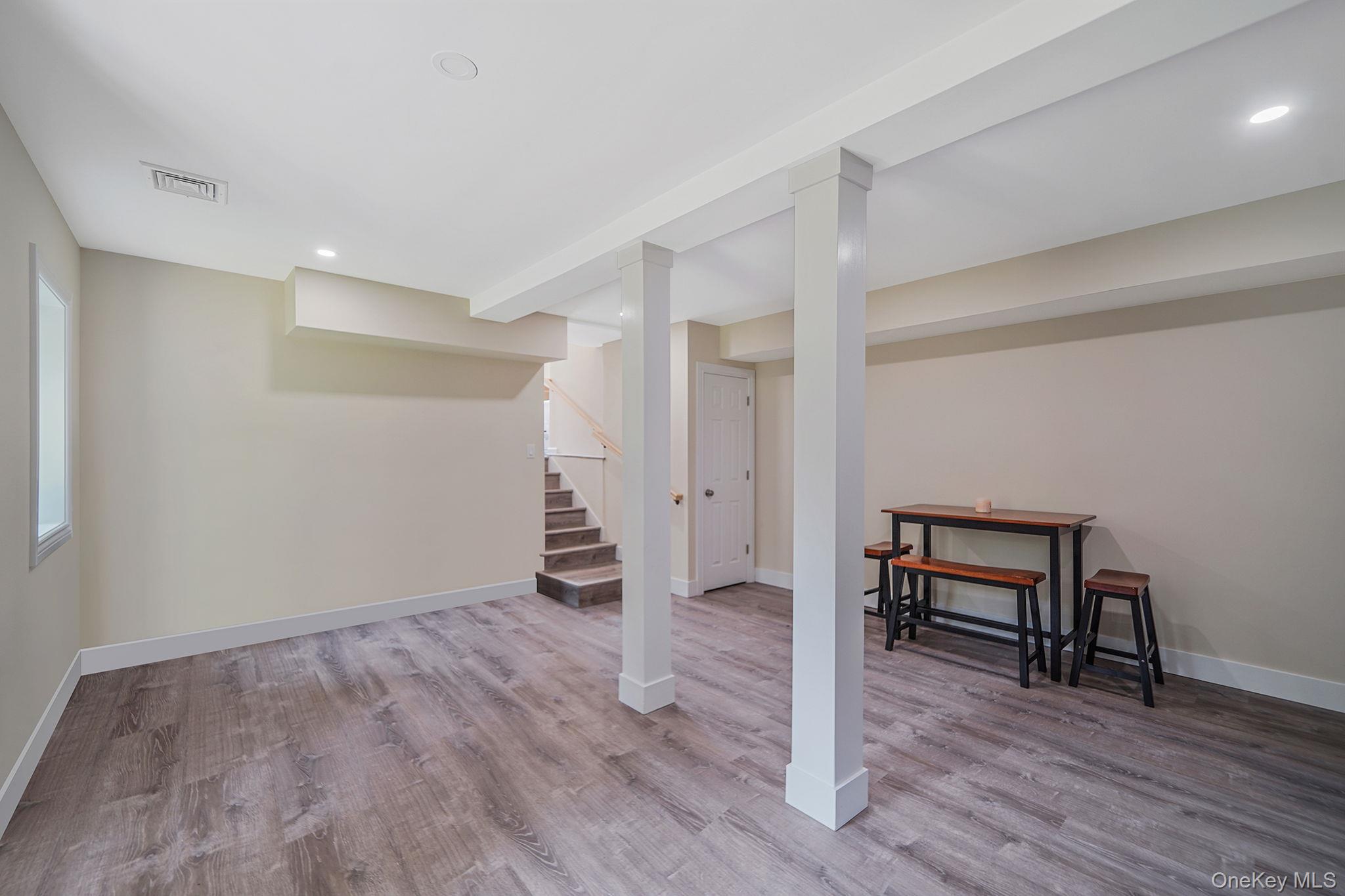 Location, location! Nestled in a highly desirable beachside community, this sun-drenched and fully updated 3-bedroom, 2-bath split ranch offers the perfect blend of coastal charm and modern luxury—with private access to the water just a stones throw away. Make this your year round or weekend getaway. Step inside to an open-concept main level featuring soaring ceilings, gleaming hardwood floors, and a spacious living and dining area. The beautifully renovated eat-in kitchen is a showstopper, with crisp white cabinetry, quartz countertops, a glass tile backsplash, stainless steel appliances, and a stunning center island with seating—ideal for entertaining. Custom blinds and recessed lighting add a refined touch throughout. Both bathrooms have been thoughtfully updated with modern ceramic tile and high-end finishes. The lower level offers a den with sliding doors to the outside and a full bath—perfect for guests, a home office, or extended living space. An additional third bedroom or entertainment area awaits on the lowest level, providing flexible space for gatherings, game nights. All of this, located just minutes from award-winning wineries, top-rated restaurants, and outlet shopping. This beachside beauty won’t last—don’t miss your chance to own a piece of paradise on Long Island’s North Shore!